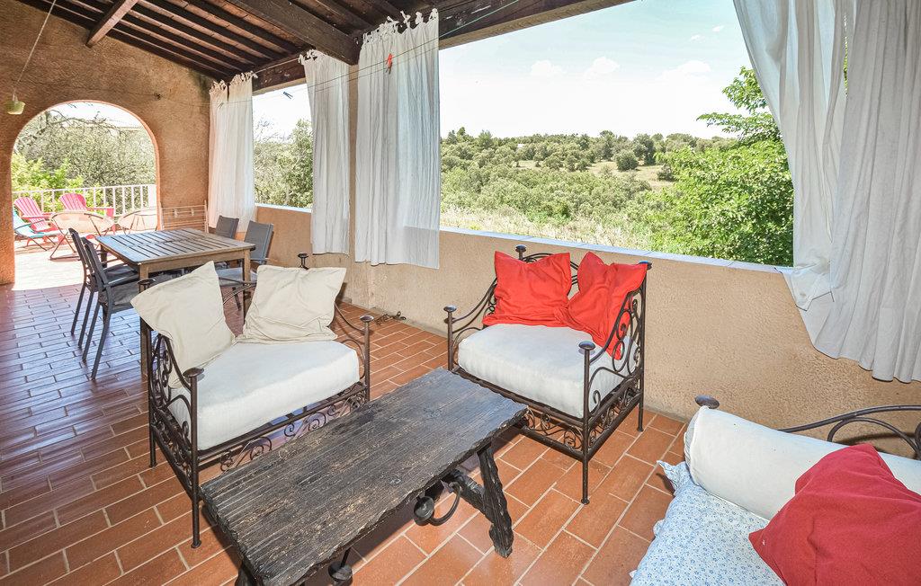 Das große Ferienhaus mit provenzalischem Dekor verfügt über einen großen Garten, ideal für Momente der Entspannung mit Familie oder Freunden. Sie können die Ruhe auf einer großen, sonnigen Terrasse genießen, die einen herrlichen Blick auf die Uzège bietet. Die andere geschützte Terrasse ist perfekt für eine Pause bei heißem Wetter.