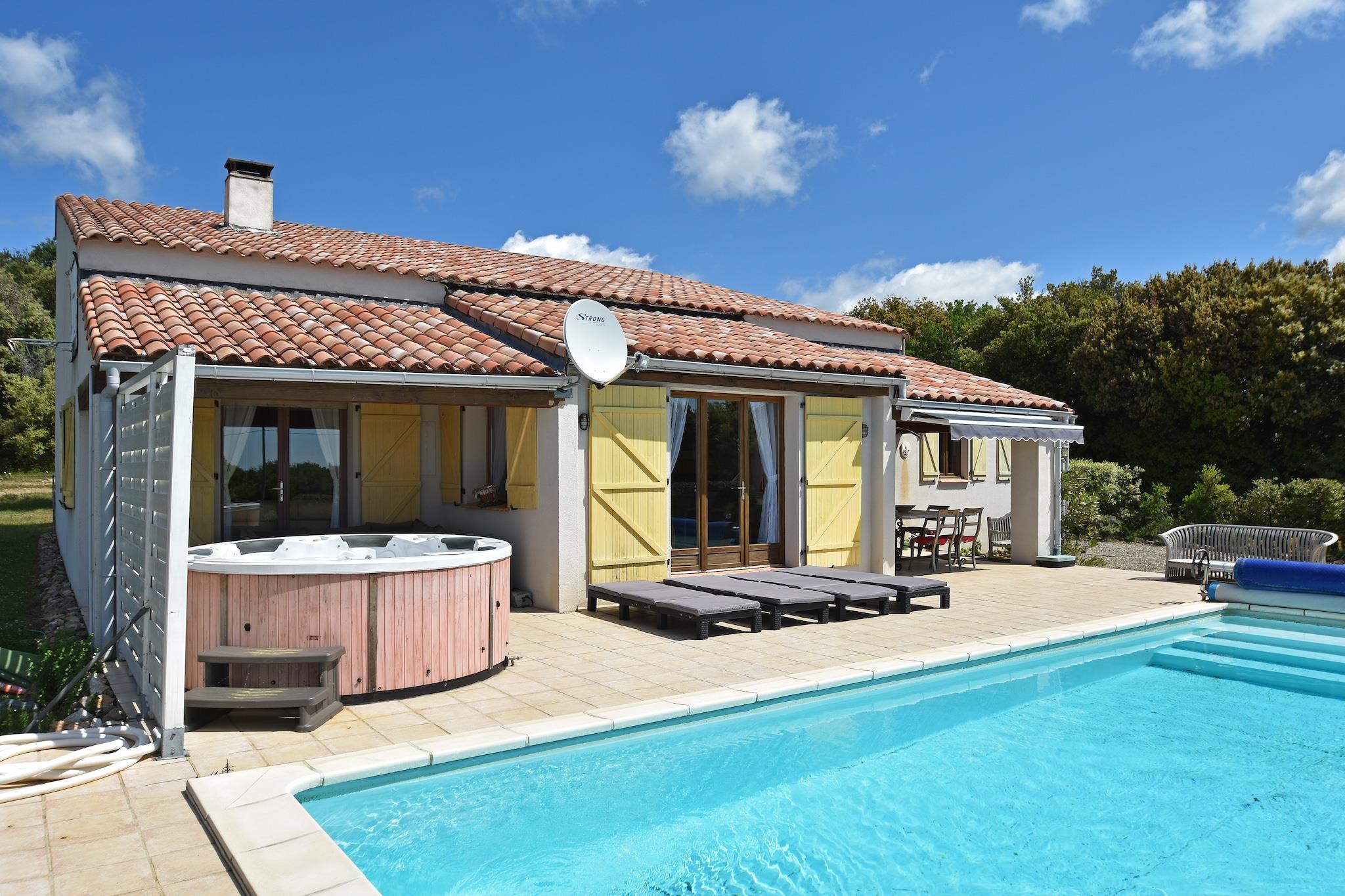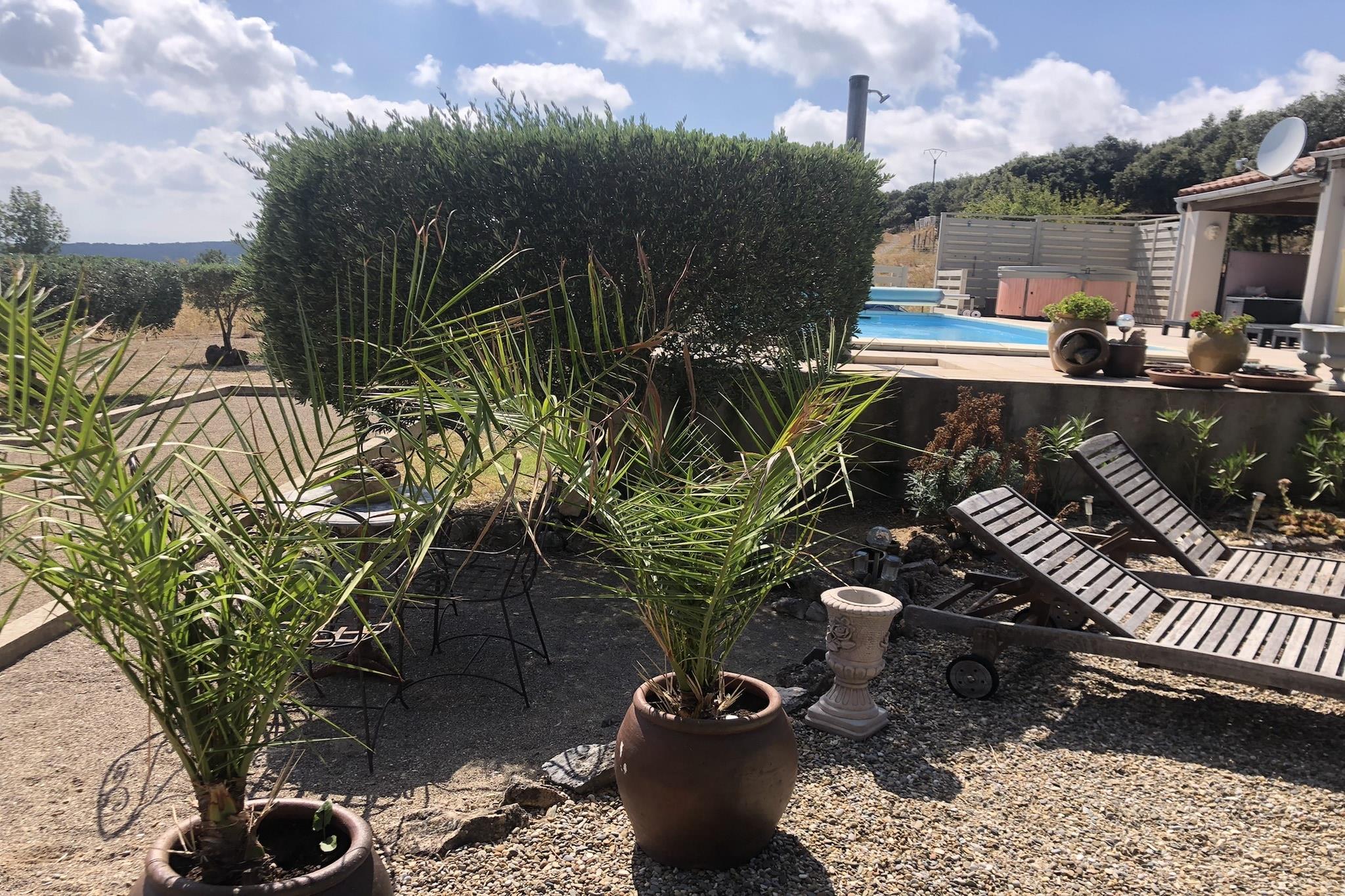 Escape to the tranquil beauty of southern France with a stay at this stunning villa in Vélieux, a peaceful hilltop village nestled between forests, vineyards, and the majestic views of the Pyrenees. Perfect for families and groups, this spacious villa offers privacy, comfort, and nature on your doorstep. Surrounded by a huge private garden, the villa invites guests to relax in total seclusion. Start your day with breakfast on the sun-drenched terrace, take a dip in the heated pool, or unwind in the outdoor bubble bath. With scenic walking and cycling trails all around, this location is a haven for outdoor lovers and pets alike—your four-legged companions will love the wide-open space and shaded paths through the countryside. Nearby, the medieval village of Minerve—one of Les Plus Beaux Villages de France—offers an unforgettable day trip with its historic Cathar ruins, natural stone bridges, and dramatic gorge views. A short drive takes you to the charming village of La Caunette or the local market town of Olonzac for regional wines and artisan goods. Horse riding is just 5 km away in Rieussec, while Lac de Jouarres (23 km) provides a lakeside beach perfect for swimming and picnicking. Pet-friendly activities abound—from hiking through the surrounding hills to splashing by the lake and visiting the vineyards. End your day with a local meal at Restaurant La Cave in Aigues-Vives or enjoy relaxed dining back at the villa with a barbecue under the stars. With its peaceful setting, generous space, and access to nature, culture, and cuisine, this villa in Vélieux offers an unforgettable retreat for guests and their furry friends.