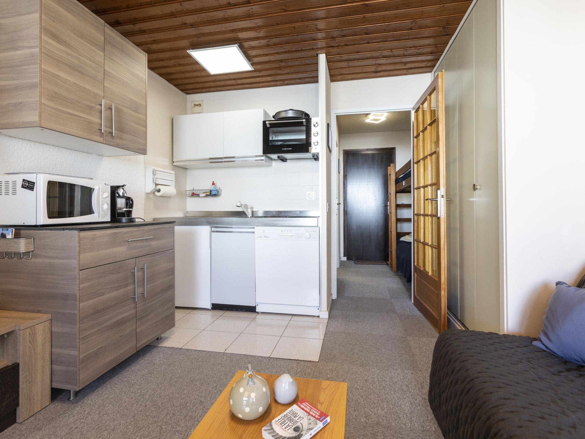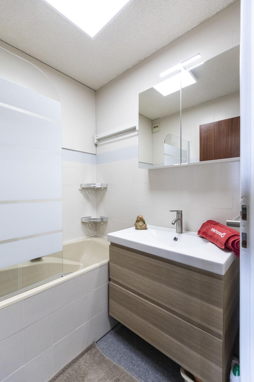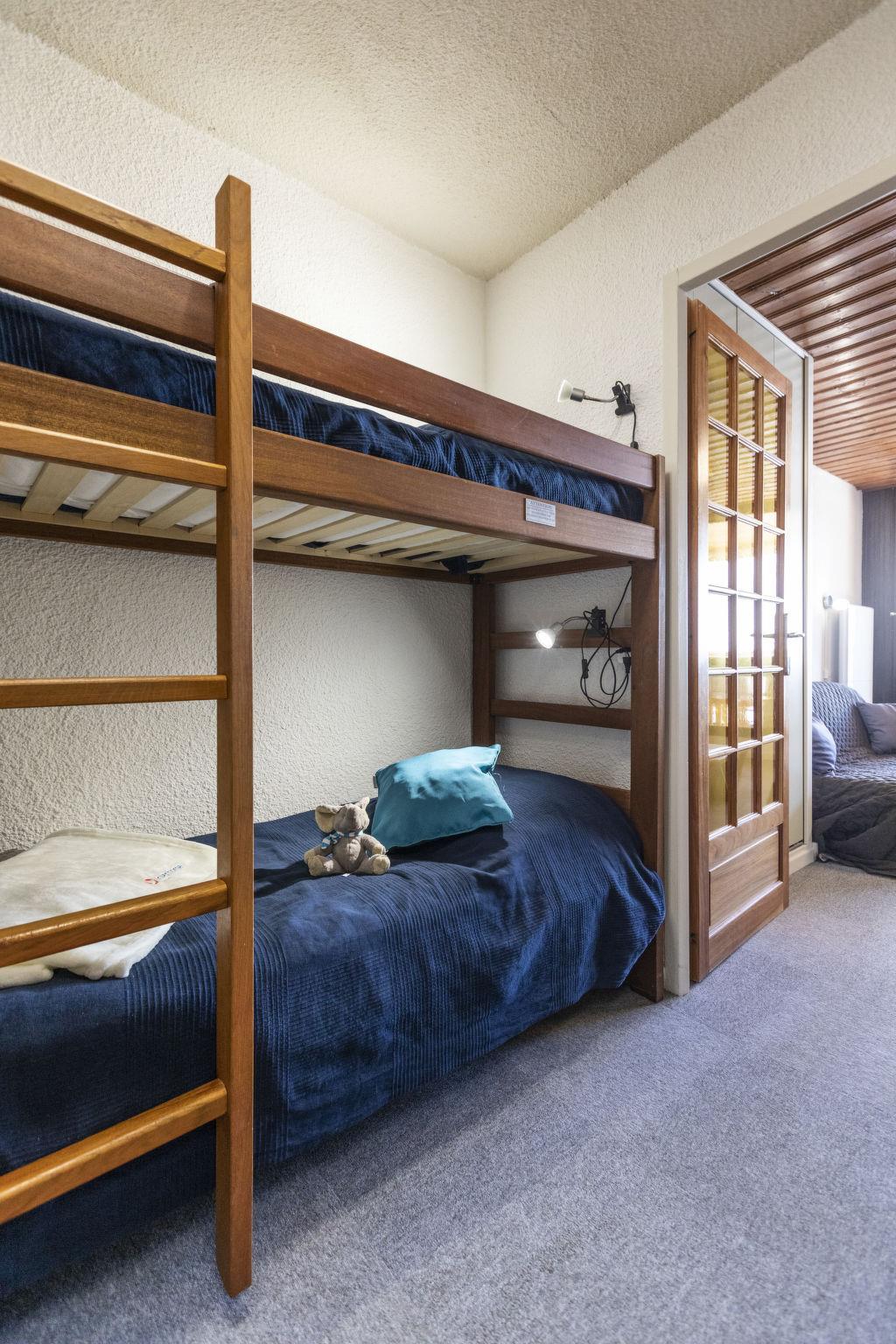"Serac S4", 1-room apartment 23 m2 on 4th floor, south facing position. Spacious and bright, partly renovated in 2022, very comfortable and beautiful furnishings: living/dining room with veranda with 1 double sofabed (1 x 160 cm, length 190 cm), TV (flat screen), DVD, DVD collection available and heating stove. Entrance hall with 1 x 2 bunk beds (80 cm, length 190 cm). Kitchenette (dishwasher, 3 induction hot plates, kettle, microwave, electric coffee machine, Capsules for coffee machine (Nespresso) extra, raclette grill). Sep. WC, bath or shower. Small balcony 8 m2, south facing position. Very beautiful view of the mountains. Facilities: Internet (WiFi, free). Please note: non-smokers only. Smoke alarm. 73257010767MX