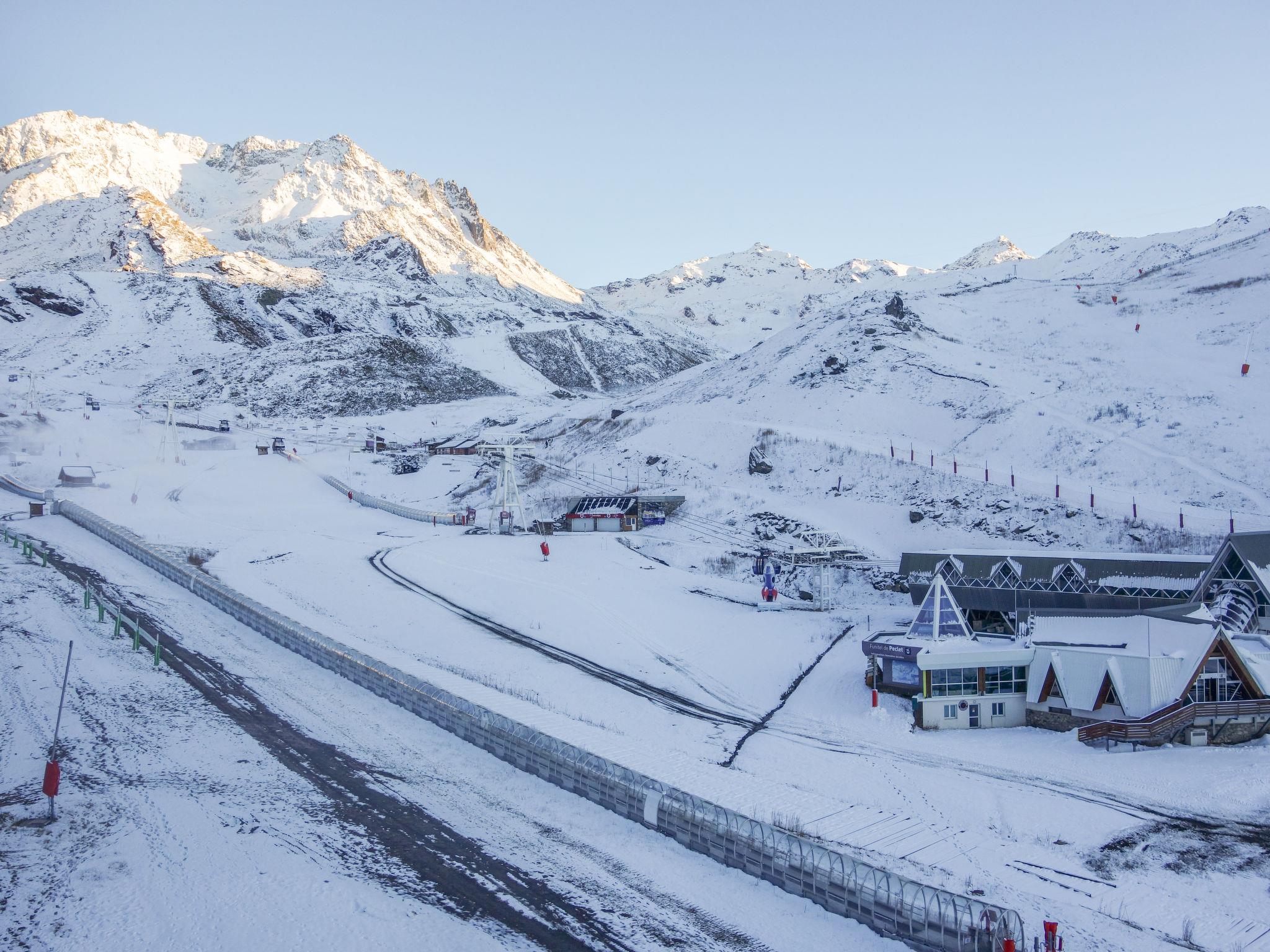 Temples du soleil: Aparthotel "Les temples du soleil /Nazca I6". Below Val Thorens, in the district of Rue de soleil, in a sunny position, 1 m directly by the skiing area, south facing position. In the complex: internet access, WiFi (extra). Sauna, massage, hot tub (all extra), hamam (all extra), billiard table, lift. Shop 100 m, grocery, supermarket 50 m, shopping centre 250 m, restaurant 50 m, bar, bakery 100 m, café, pedestrian zone, 5 minute walk to the centre, bus stop 5 m, outdoor swimming pool 250 m. Sports centre, slopes 1 m, ski rental 50 m, ski school 150 m, children's ski school 200 m, ice rink 1 km, children's playground. Please note: baby equipment (included). Groups of teenagers on request only. In case of good snow conditions, the house is accessible on skis.