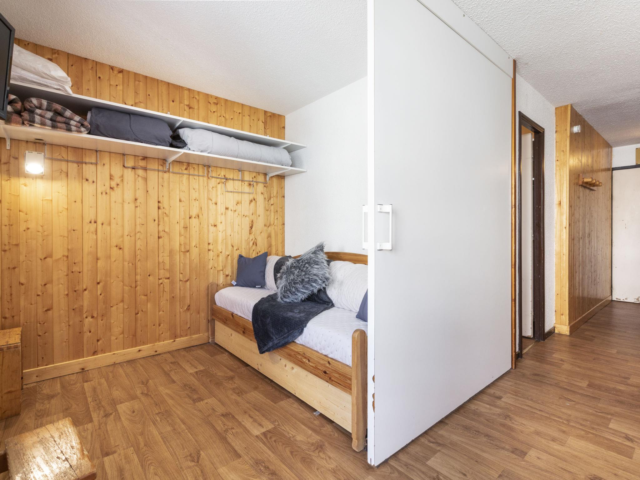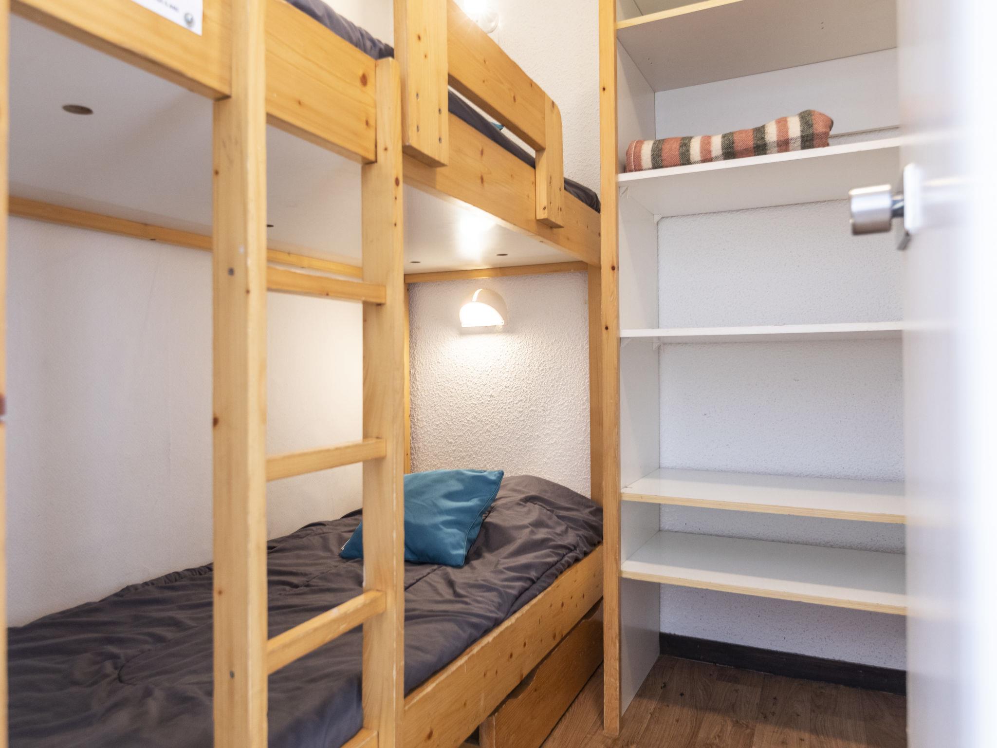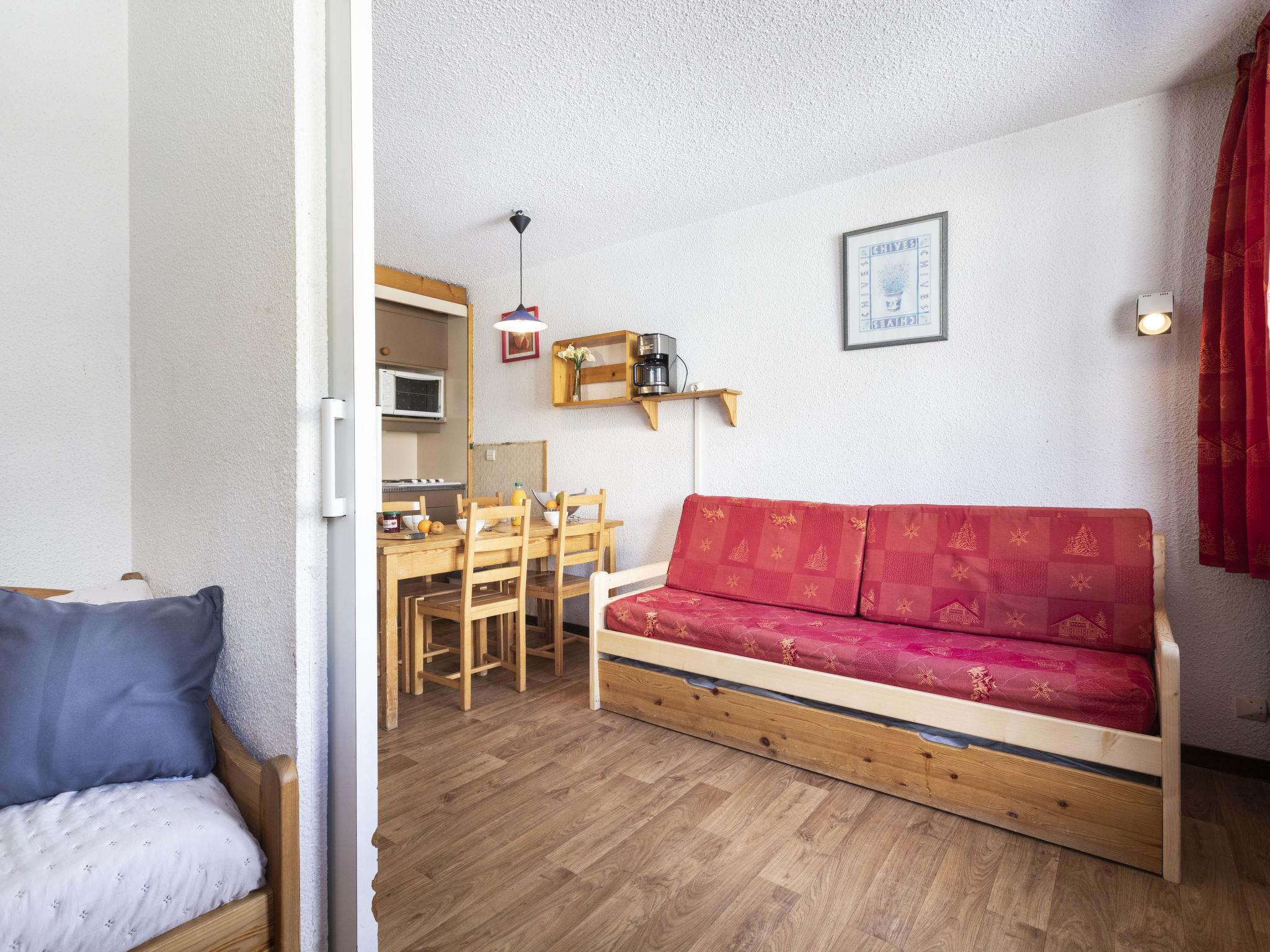 "Lauzières 616", 2-room apartment 26 m2 on 6th floor, north facing position. Beautiful furnishings: living/dining room with 1 pull-out bed (2 x 80 cm, length 190 cm), TV (flat screen), electric heater. Exit to the balcony. 1 small room 5 m2 with sliding door with 1 pull-out bed (2 pers. 2 x 80 cm, length 190 cm). Small sleeping alcove with 1 x 2 bunk beds (80 cm, length 190 cm). Kitchenette (4 hot plates, oven, electric coffee machine). Shower, sep. WC. Balcony, north facing position. No view. Facilities: Internet (WiFi, extra). Please note: maximum 1 pet/ dog allowed. TV only FR. Smoke alarm. Instead of an enclosed bedroom, some sleeping areas are located in an open-plan area (gallery, alcove, etc.). 73257009538SB