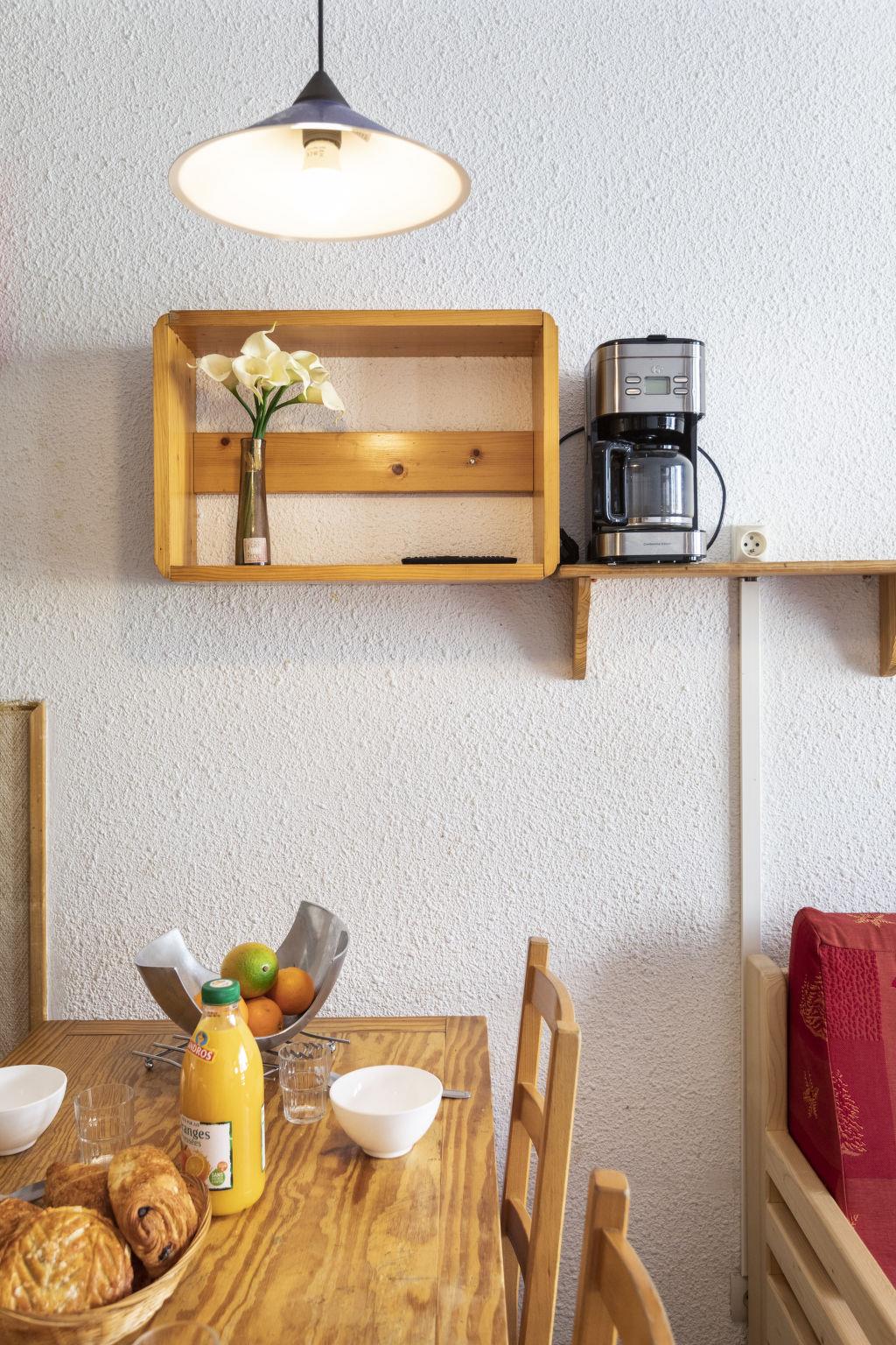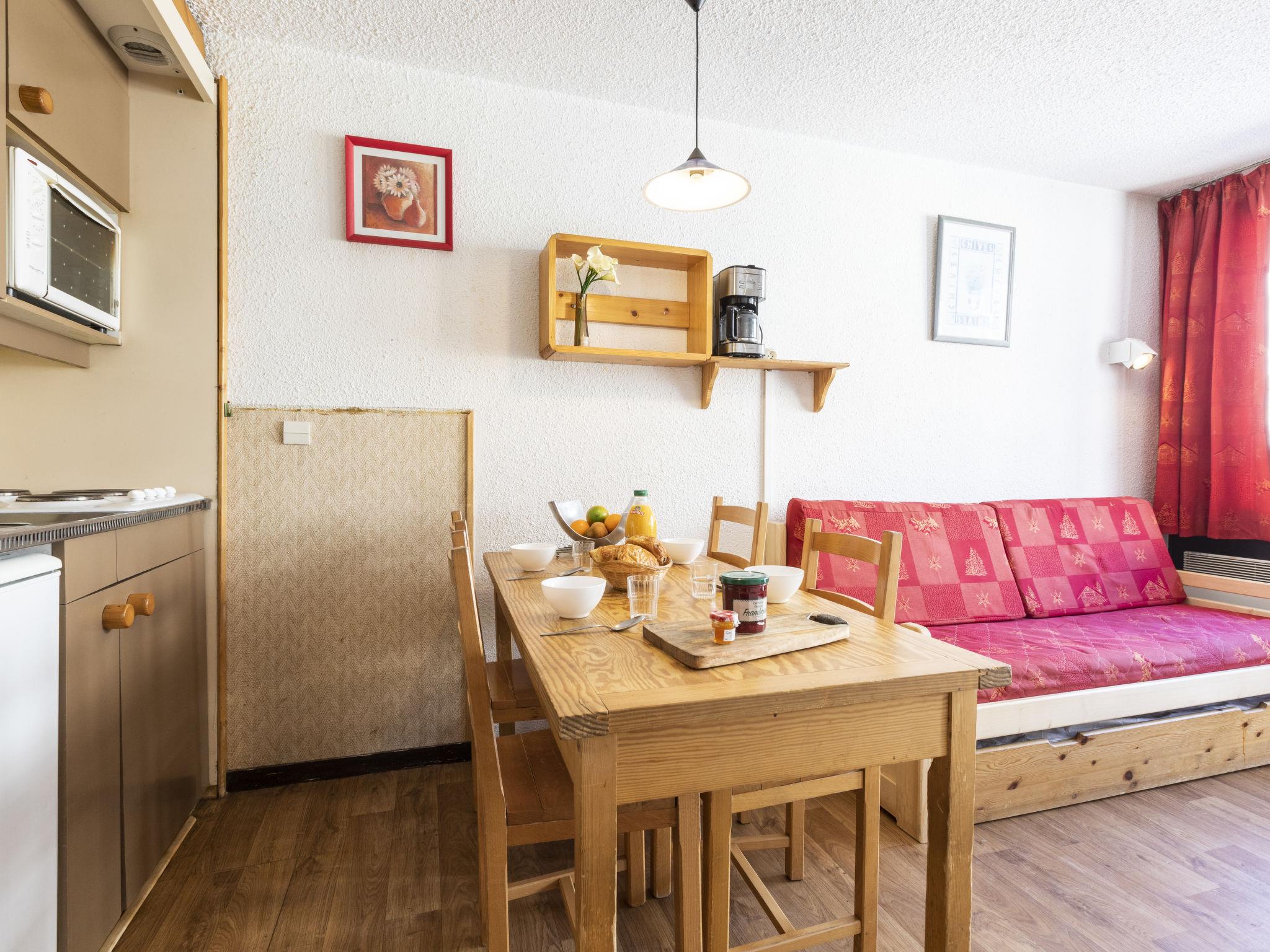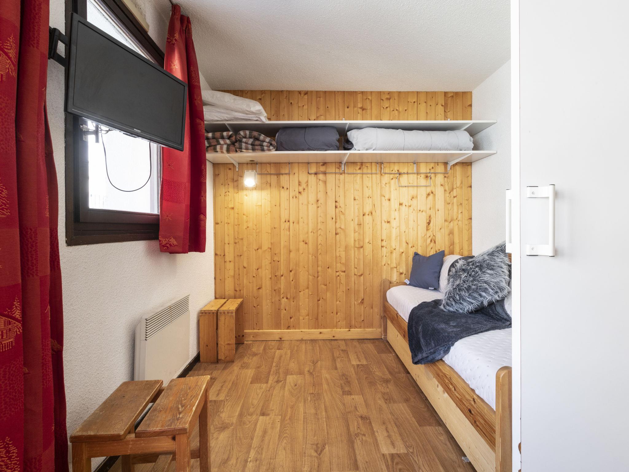 "Lauzières 616", 2-room apartment 26 m2 on 6th floor, north facing position. Beautiful furnishings: living/dining room with 1 pull-out bed (2 x 80 cm, length 190 cm), TV (flat screen), electric heater. Exit to the balcony. 1 small room 5 m2 with sliding door with 1 pull-out bed (2 pers. 2 x 80 cm, length 190 cm). Small sleeping alcove with 1 x 2 bunk beds (80 cm, length 190 cm). Kitchenette (4 hot plates, oven, electric coffee machine). Shower, sep. WC. Balcony, north facing position. No view. Facilities: Internet (WiFi, extra). Please note: maximum 1 pet/ dog allowed. TV only FR. Smoke alarm. Instead of an enclosed bedroom, some sleeping areas are located in an open-plan area (gallery, alcove, etc.). 73257009538SB