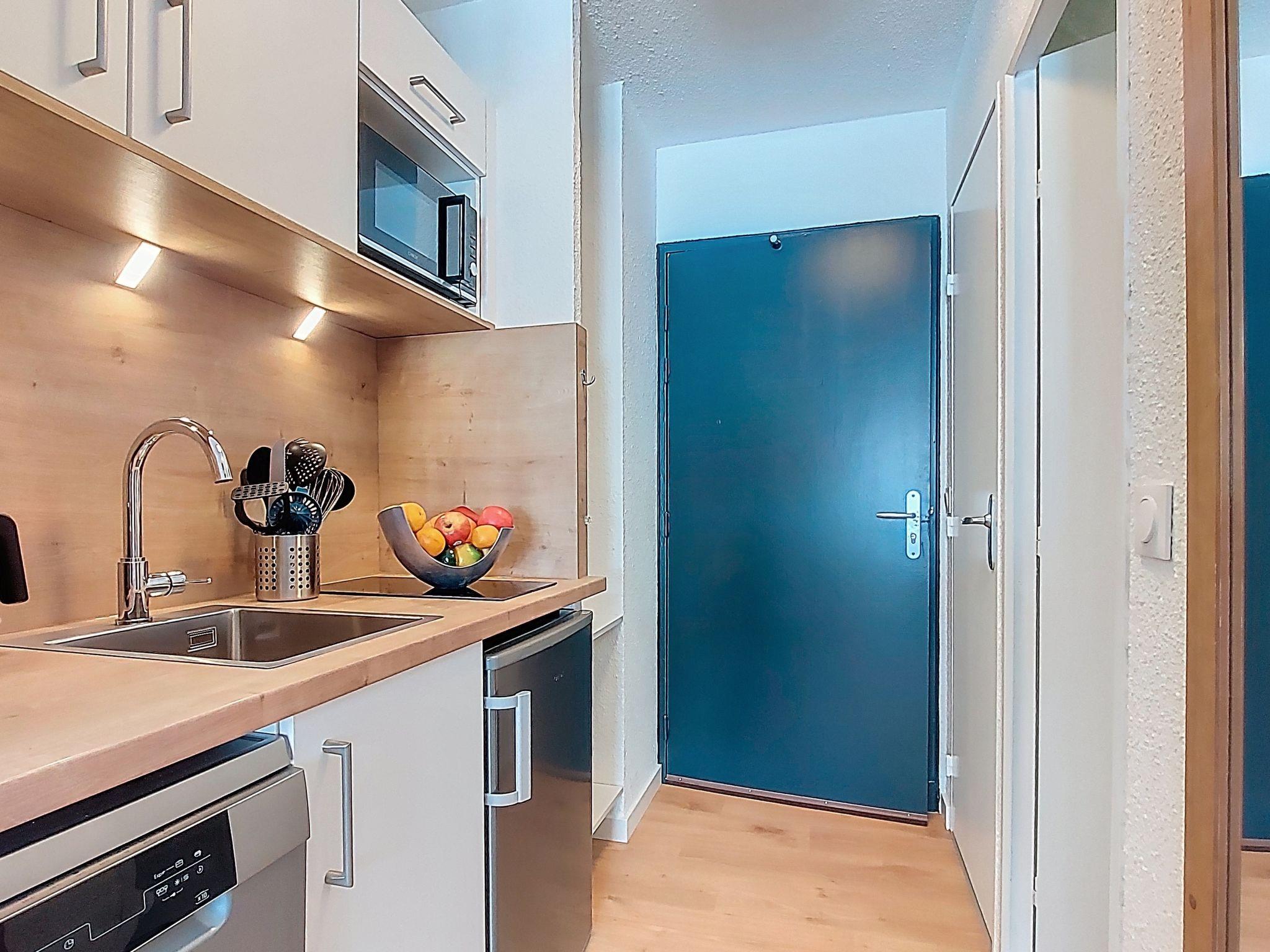 1-room studio 22 m2 on 5th floor, north facing position. Fully renovated in 2025, comfortable and cosy furnishings: living/dining room with panoramic window north facing position with 1 bed (90 cm, length 190 cm), 1 double sofabed (1 x 160 cm, length 200 cm), dining table, TV and electric heating. Exit to the balcony, north facing position. Entrance hall with kitchen corner. Kitchenette (dishwasher, 2 induction hot plates, toaster, kettle, microwave, electric coffee machine, Capsules for coffee machine (Nespresso) extra). Shower, sep. WC. Parquet floors. Small balcony 3 m2. Beautiful panoramic view of the mountains, the ski run and the resort. Facilities: Internet (WiFi, extra). Please note: non-smokers only. Offer by a private individual according to Art. 155, IV of CGI. 73257011390HT