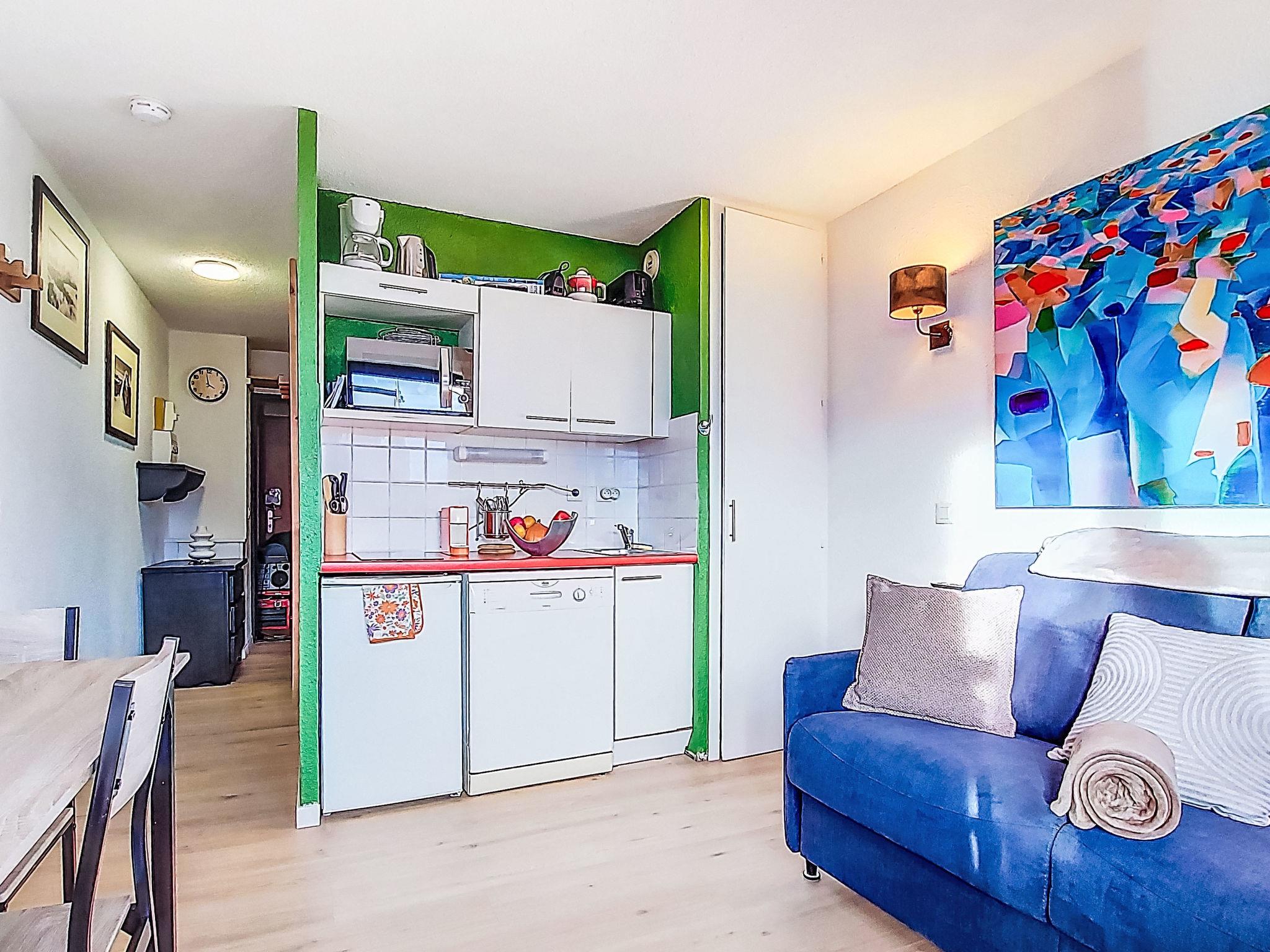 1-room studio 21 m2 on 1st floor, south facing position. Partly renovated in 2025, comfortable and cosy furnishings: living/dining room with 1 double sofabed (1 x 140 cm, length 190 cm), dining table, TV and heating stove. Exit to the balcony, south facing position. Kitchenette (2 hot plates, dishwasher, toaster, kettle, electric coffee machine, Capsules for coffee machine (Nespresso) extra, combination microwave). Shower/WC. Parquet floors. Small balcony 3 m2. View of the mountains, the valley and the resort. Facilities: hair dryer. Internet (WiFi, extra). Please note: non-smokers only. Smoke alarm. Offer by a private individual according to Art. 155, IV of CGI. 73257011350SB
