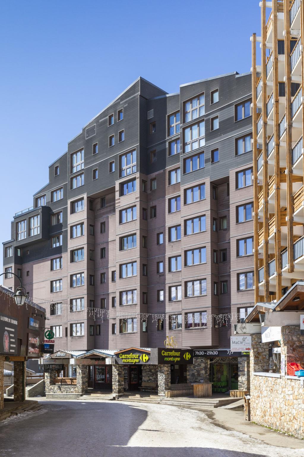 Very beautiful residence "Arcelle", 7 storeys. In the centre of la station, in a busy position, 100 m from the skiing area, in a pedestrian area. In the complex: lift, storage room for skis. In Winter: please take snow chains. Public car park at 50 m, extra. E-charging station. Shop 1 m, grocery, supermarket, shopping centre, restaurant, bar 2 m, bakery 15 m, café 5 m, pedestrian zone 2 m, bus stop 50 m, outdoor swimming pool 20 m. Sports centre 5 m, chair lift 50 m, gondola lift 150 m, skisport facilities 70 m, slopes 100 m, ski rental 2 m, ski bus stop 15 m, ski school 40 m, cross country ski track 1 km, ice rink 150 m. Nearby attractions: Les Menuires 1 km. Well-known ski regions can easily be reached: 3 Vallées. Well-known lakes can easily be reached: Lac du lou 1 km, Lac Menuires 800 m. Please note: baby equipment on request (extra). Groups of teenagers on request only. The owner does not accept any groups. In case of good snow conditions, the house is accessible on skis. The keys‘ handover takes place by the agency Interhome ValThorens. Additional accommodations can be booked. Neighbourhood highly sensitive to noise. Quietness and good behaviour expected.