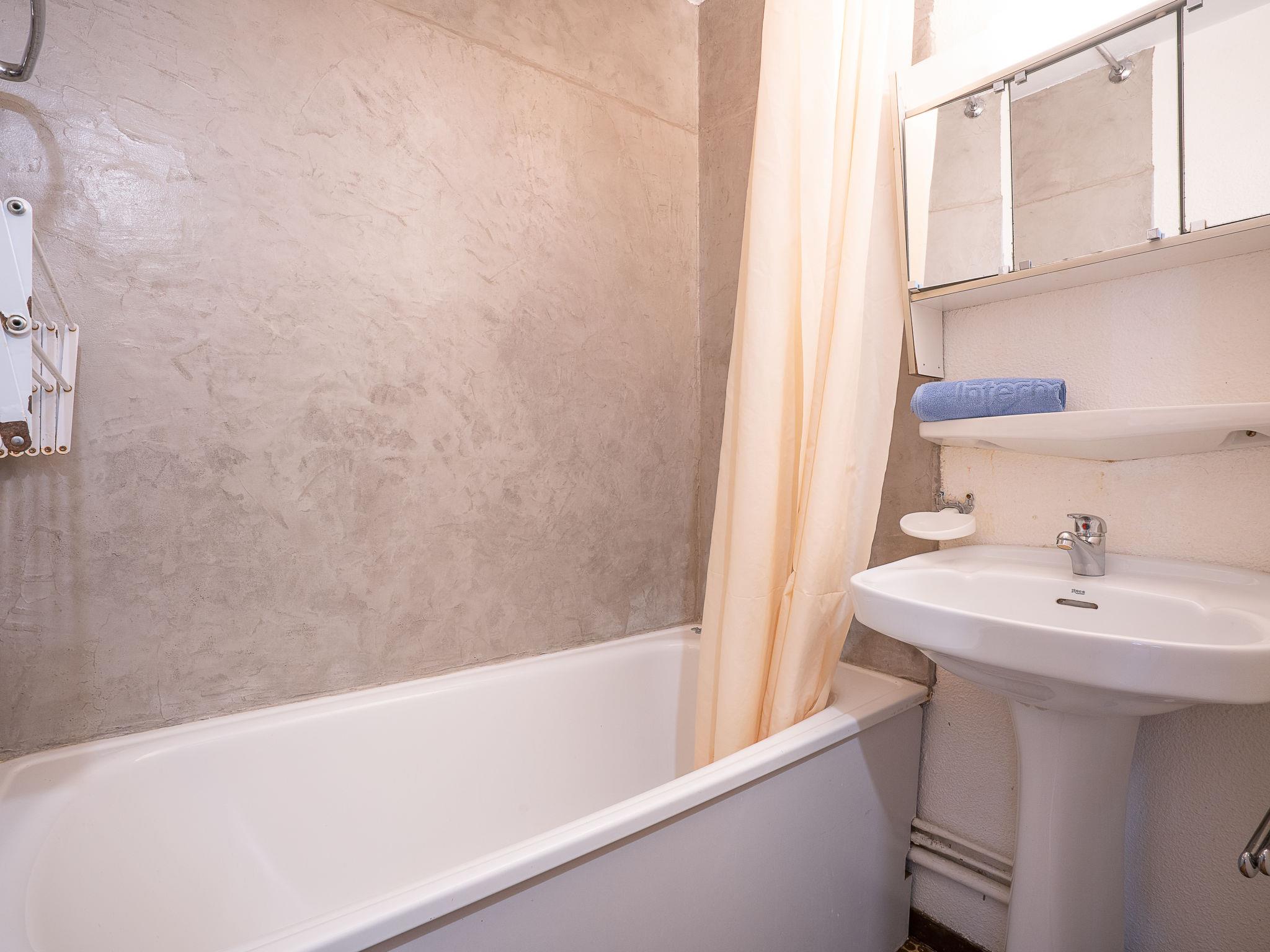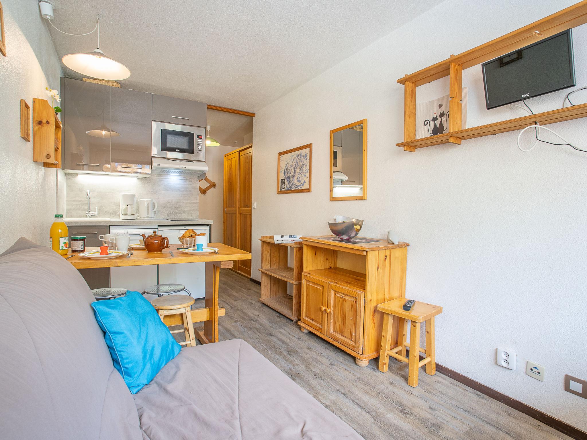 "vanoise 578", 1-room studio 21 m2 on 5th floor, north-east facing position. Partly renovated in 2020, practical and beautiful furnishings: living/dining room with 1 double sofabed (1 x 140 cm, length 190 cm), TV (flat screen), electric heater. Exit to the balcony, north-east facing position. Entrance hall with 1 x 2 bunk beds (80 cm, length 190 cm). Kitchenette (dishwasher, 2 ceramic glass hob hotplates, kettle, microwave, electric coffee machine). Bathroom, sep. WC. Small balcony 2 m2, north-east facing position. Facilities: Internet (WiFi, extra). Please note: non-smokers only. Smoke alarm. 73257007287MX