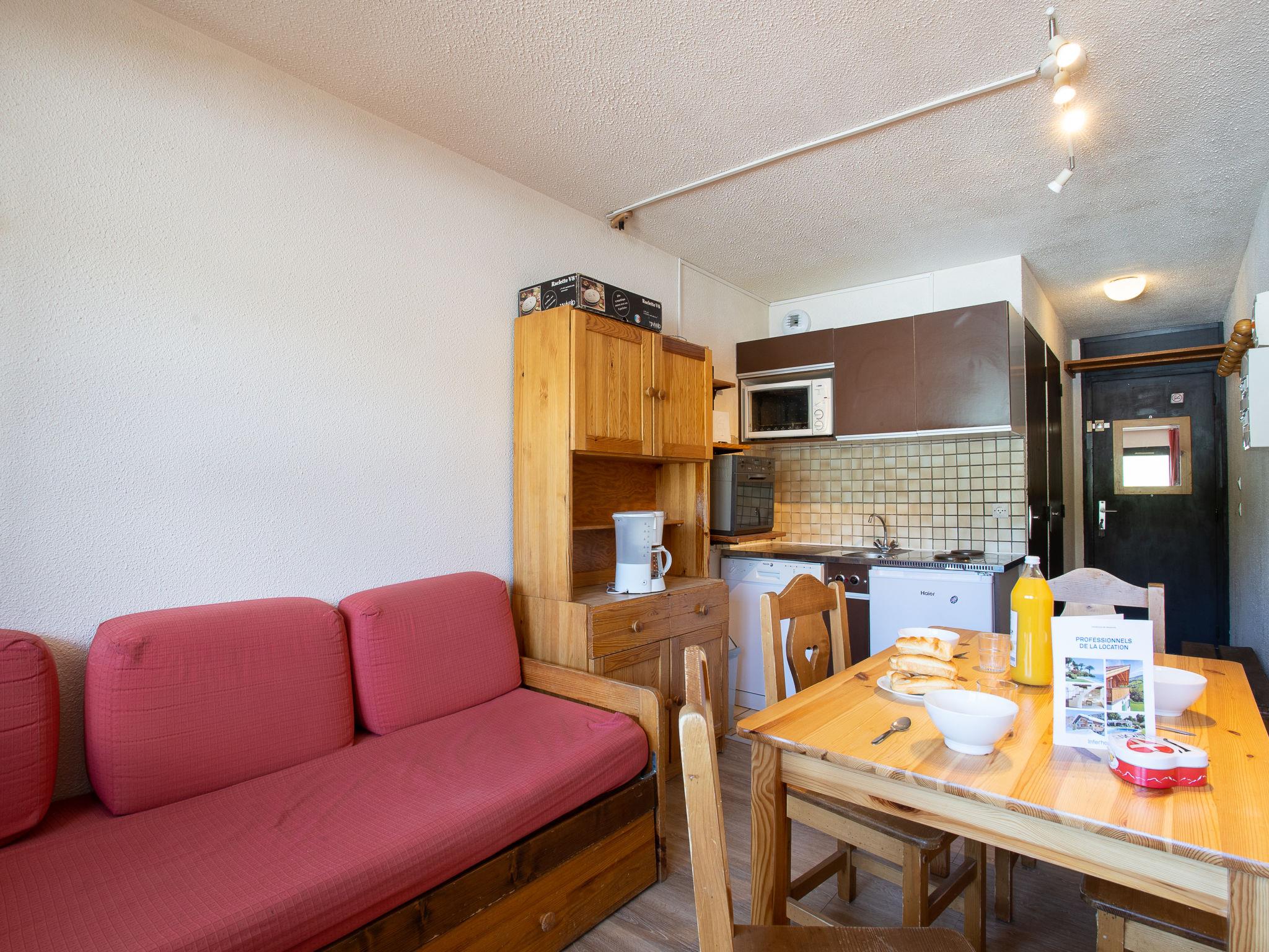 "Vanoise 152", 2-room apartment 27 m2 on 1st floor, south facing position. Living/dining room. 1 room with curtain with 1 pull-out bed (2 pers. 2 x 80 cm, length 190 cm), TV (flat screen), electric heater. Sleeping alcove with 1 x 2 bunk beds (80 cm, length 190 cm). Kitchenette (2 hot plates, oven, dishwasher, microwave, electric coffee machine, raclette grill). Bathroom, sep. WC. Small balcony 2 m2, south facing position. Facilities: Internet (WiFi, extra). Please note: smoke alarm. No more noise thanks to sound insulation work. Instead of an enclosed bedroom, some sleeping areas are located in an open-plan area (gallery, alcove, etc.). 73257007042SB