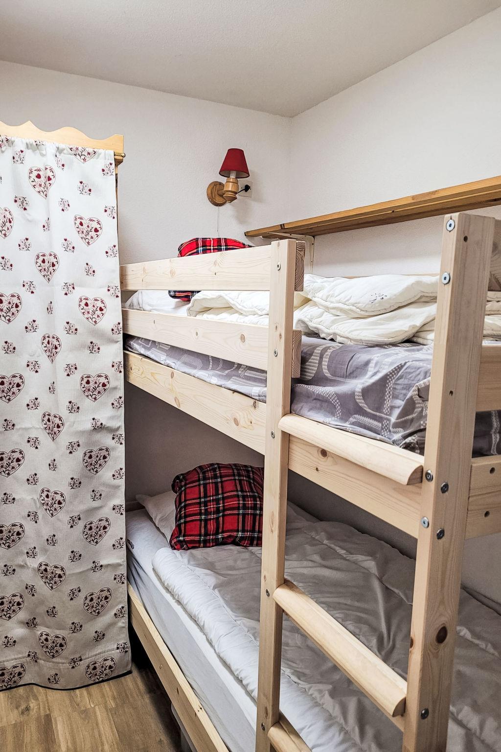 "Vanoise 266", 2-room apartment 27 m2 on 2nd floor, north facing position. Spacious, very practical and comfortable furnishings: living/dining room with TV and electric heater. 1 room with sliding door with 1 double bed (140 cm, length 190 cm). Sleeping alcove with sliding door with 1 x 2 bunk beds (90 cm, length 200 cm). Kitchenette (dishwasher, 2 ceramic glass hob hotplates, kettle, freezer, electric coffee machine, Capsules for coffee machine (Nespresso) extra, combination microwave). Bathroom, sep. WC. Small balcony 3 m2, north facing position. Beautiful distant view of the mountains and the ski run. Facilities: Internet (WiFi, free). Please note: non-smokers only. Smoke alarm. Offer by a private individual according to Art. 155, IV of CGI. 73257007059MX