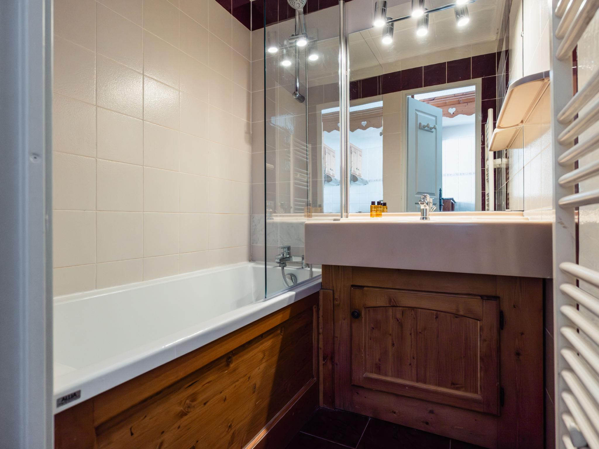 "Le Cheval Blanc Classique", 2-room apartment 27 m2. Rustic furnishings: living/sleeping room with 1 sofabed, 1 pull-out bed, dining table and satellite TV (flat screen). Exit to the balcony. 1 small room with sliding door with 2 beds. Kitchenette (2 hot plates, mini-oven, dishwasher, microwave, electric coffee machine). Bathroom, sep. WC. Electric heating. Small balcony. Facilities: safe, children's high chair, baby cot. Internet (WiFi, free). Please note: smoke alarm.