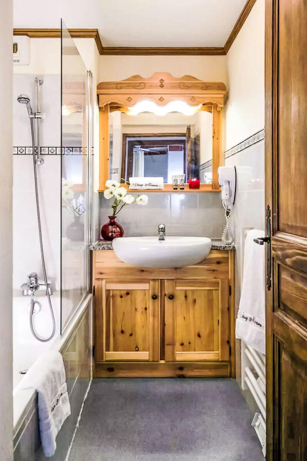 "Village Montana", 3-room apartment 47 to 49 m2. Rustic and wooden furniture furnishings: living room with dining table and satellite TV. 2 rooms, each room with 2 beds. Alcove with 1 x 2 bunk beds. Kitchenette (2 hot plates, oven, dishwasher, toaster, kettle, microwave, electric coffee machine). Bathroom, shower, sep. WC. Heating. Balcony. Beautiful view of the mountains. Facilities: safe. Internet (WiFi, free). Instead of an enclosed bedroom, some sleeping areas are located in an open-plan area (gallery, alcove, etc.).