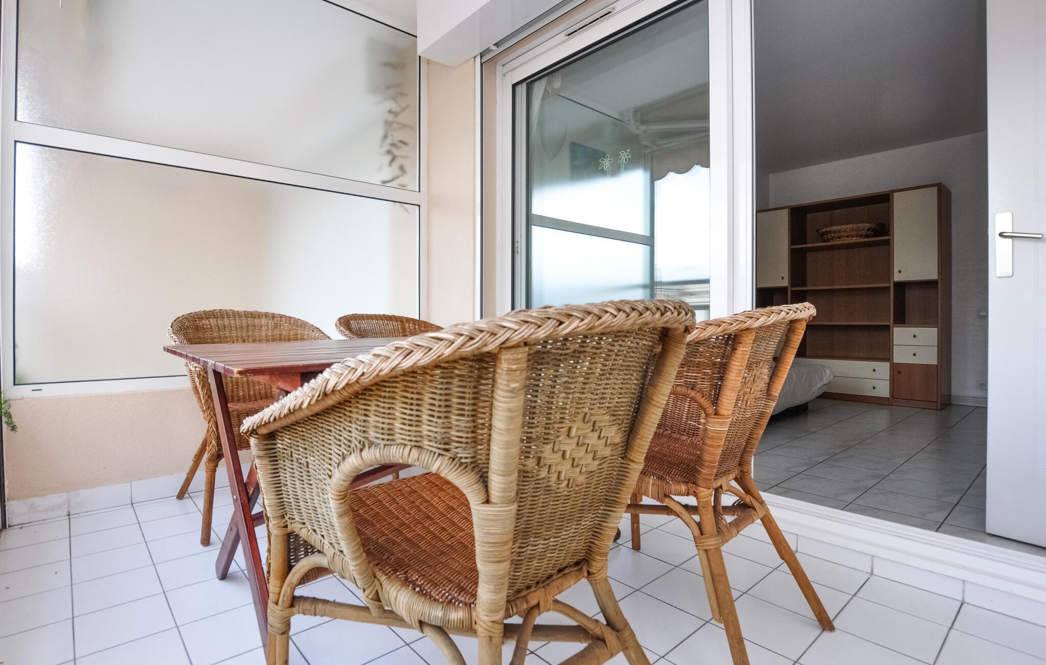 Nutzen Sie die großzügige Terrasse für entspannte Stunden. Frühstücken Sie im Freien mit frischen Croissants und Kaffee, ziehen Sie nach Belieben Ihre Bahnen im Gemeinschaftspool der Anlage und lassen Sie den Abend bei einem Glas Rosé aus der Provence ausklingen.