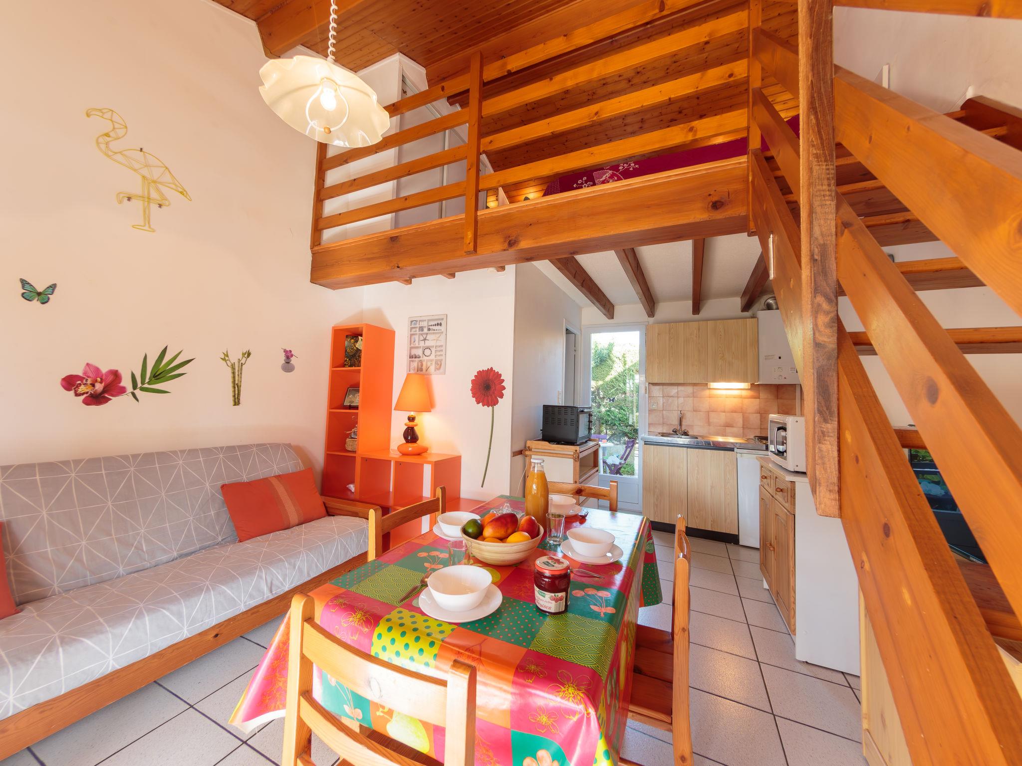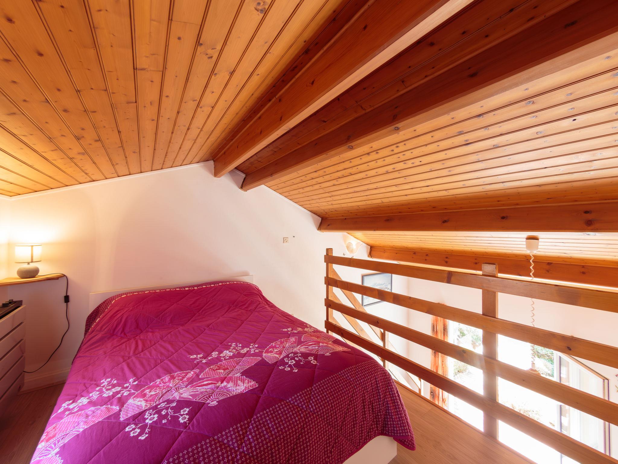 2-room house 33 m2 on 2 levels. Living/dining room with TV. Alcove with 1 x 2 bunk beds (90 cm, length 190 cm). Kitchenette (2 hot plates, mini-oven, microwave). Shower/WC. Electric heating. Upper floor: gallery with 1 french bed (1 x 140 cm, length 190 cm). 2 small terraces. Terrace furniture. Facilities: Internet (WiFi, extra). Parking at the house. Please note: maximum 1 pet/ dog allowed. Smoke alarm. The house is higher than the road level. Access to the house is via a few steps. Instead of an enclosed bedroom, some sleeping areas are located in an open-plan area (gallery, alcove, etc.).