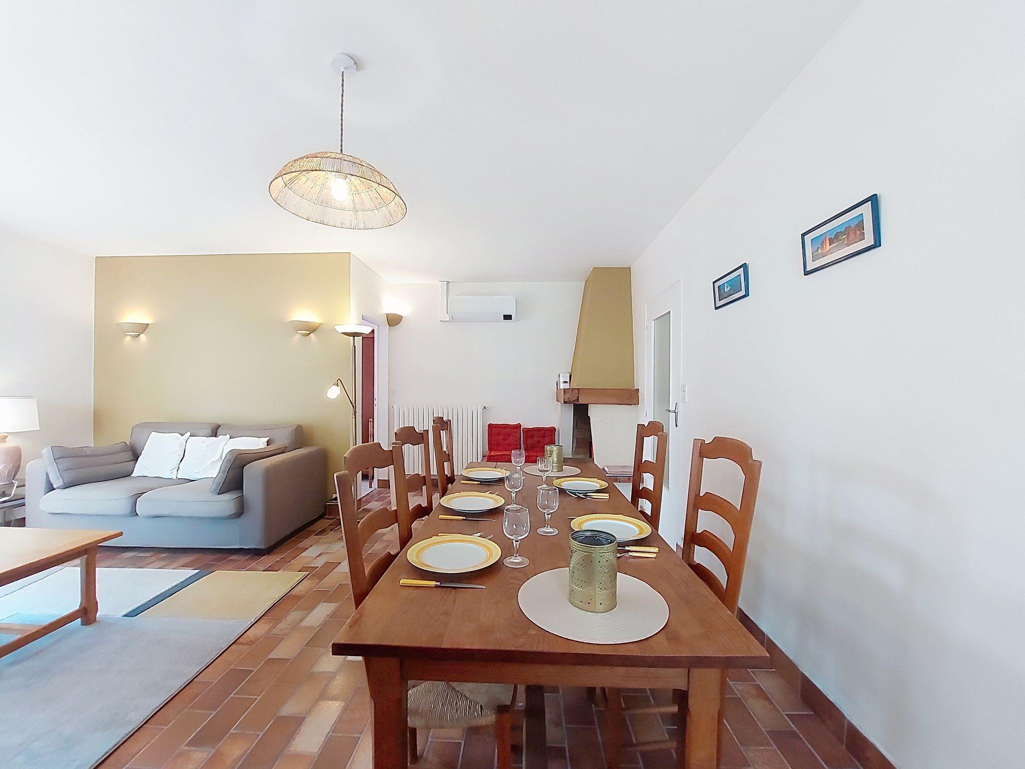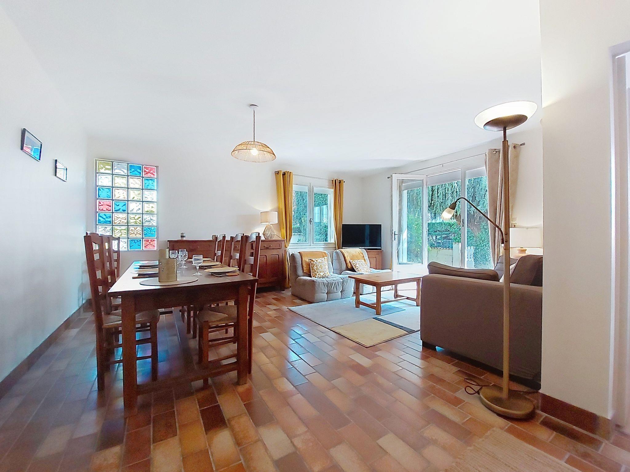 4-room house 85 m2. Living/dining room with TV (flat screen). Exit to the garden. 1 room with 1 bed (90 cm, length 190 cm), 1 french bed (140 cm, length 190 cm). 1 room with 1 french bed (140 cm, length 190 cm). Kitchen (oven, 4 gas rings, toaster, kettle, microwave, electric coffee machine). Bath/shower, sep. WC. Heating, air-conditioning. Large terrace 40 m2, west facing position, garden 600 m2. Terrace furniture, barbecue. Facilities: washing machine, hair dryer. Internet (WiFi, free). Parking (2 cars). Please note: smoke alarm. Offer by a private individual according to Art. 155, IV of CGI.