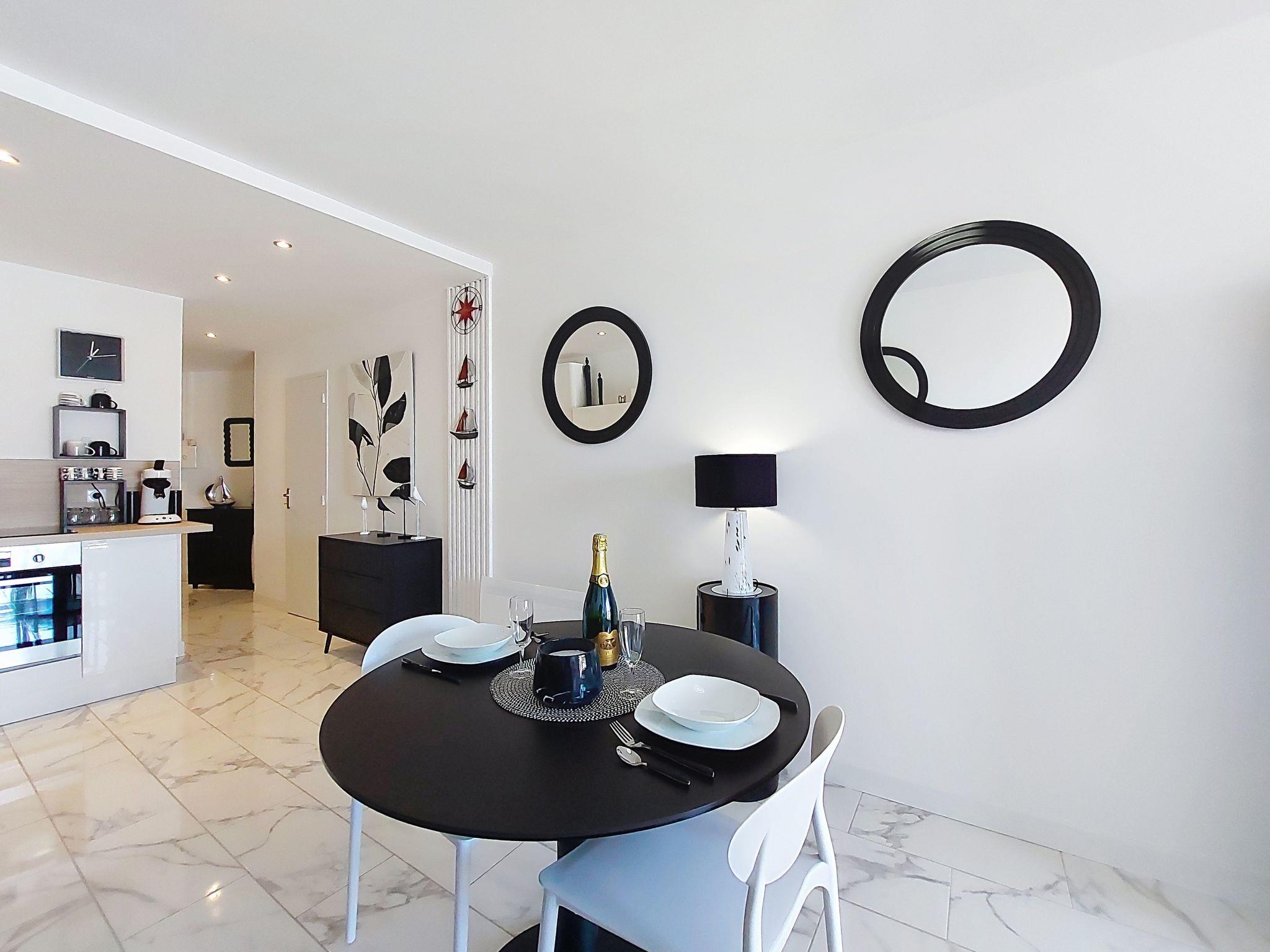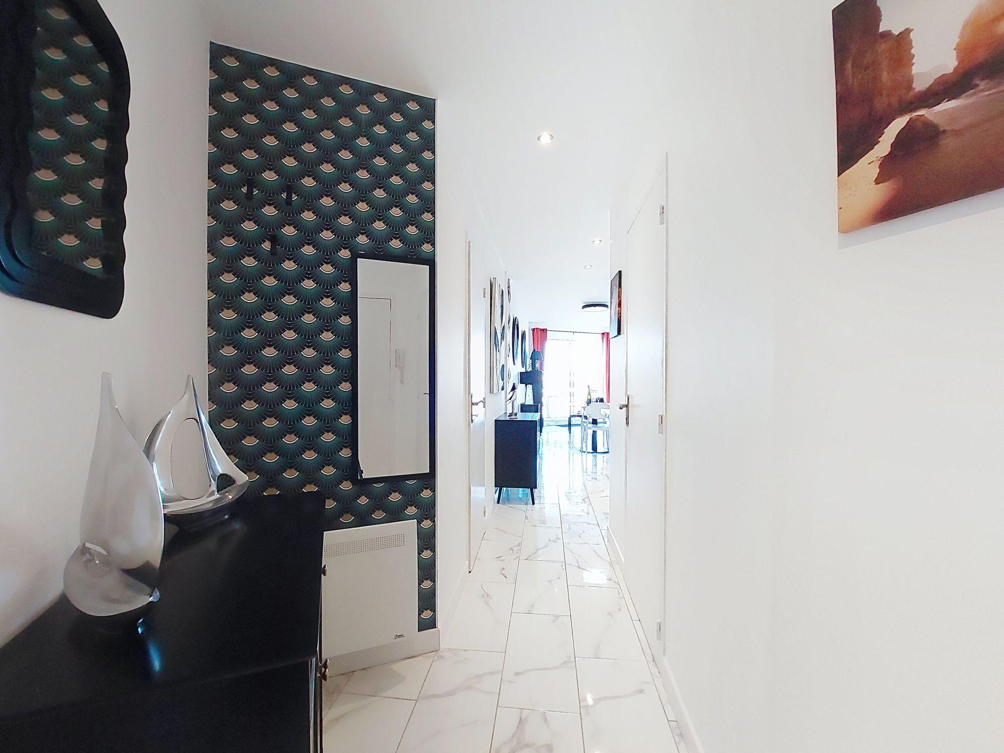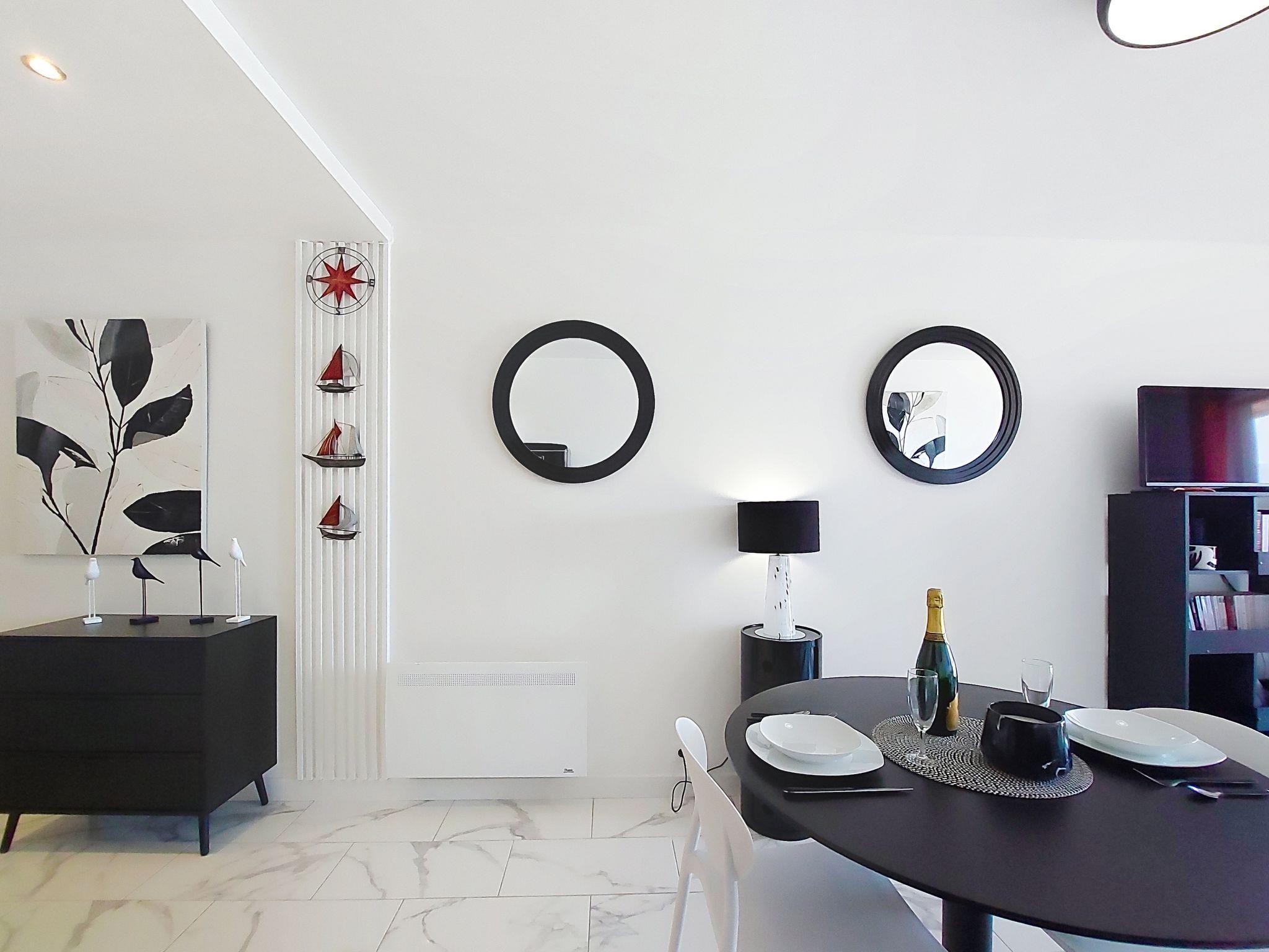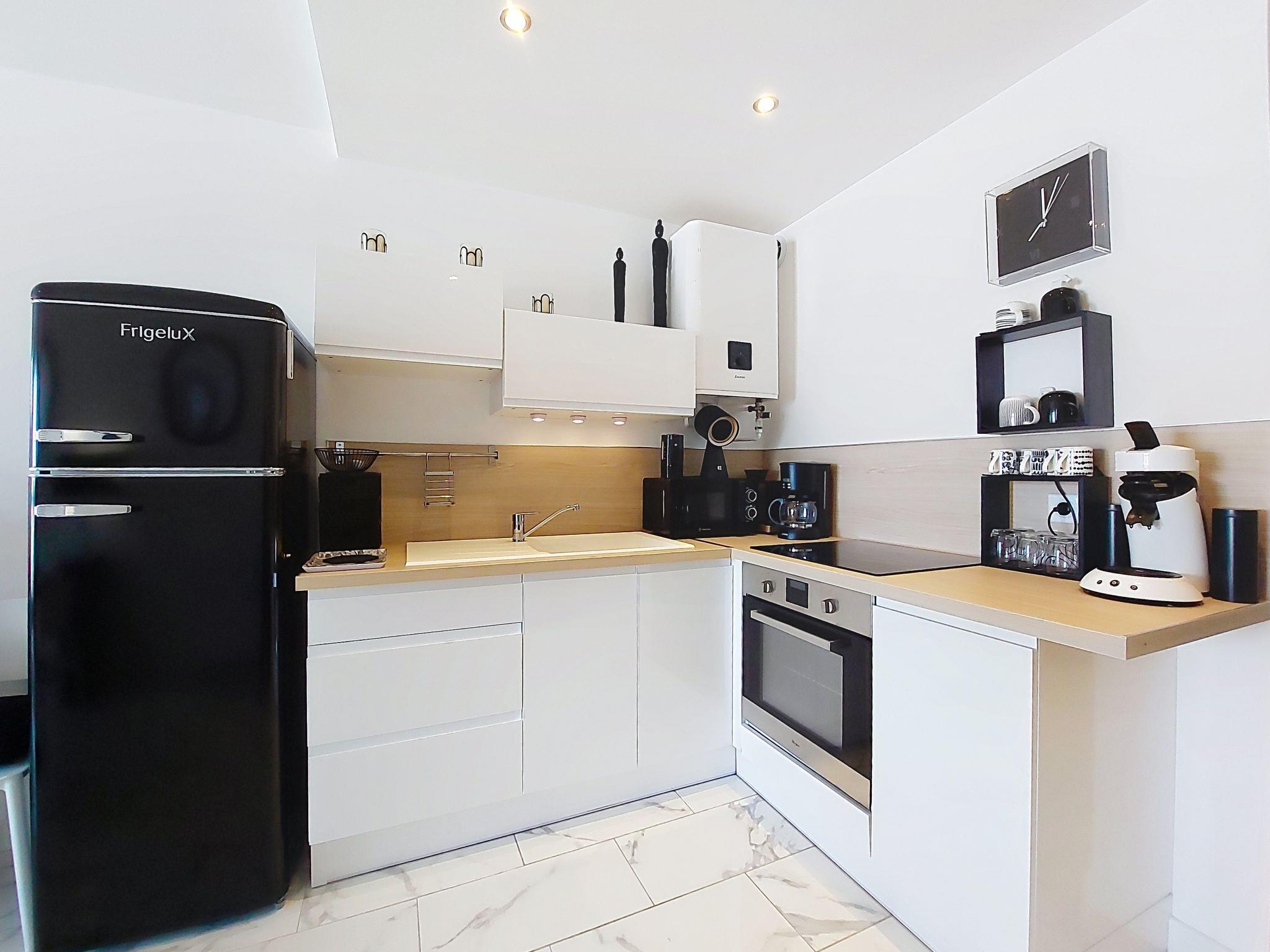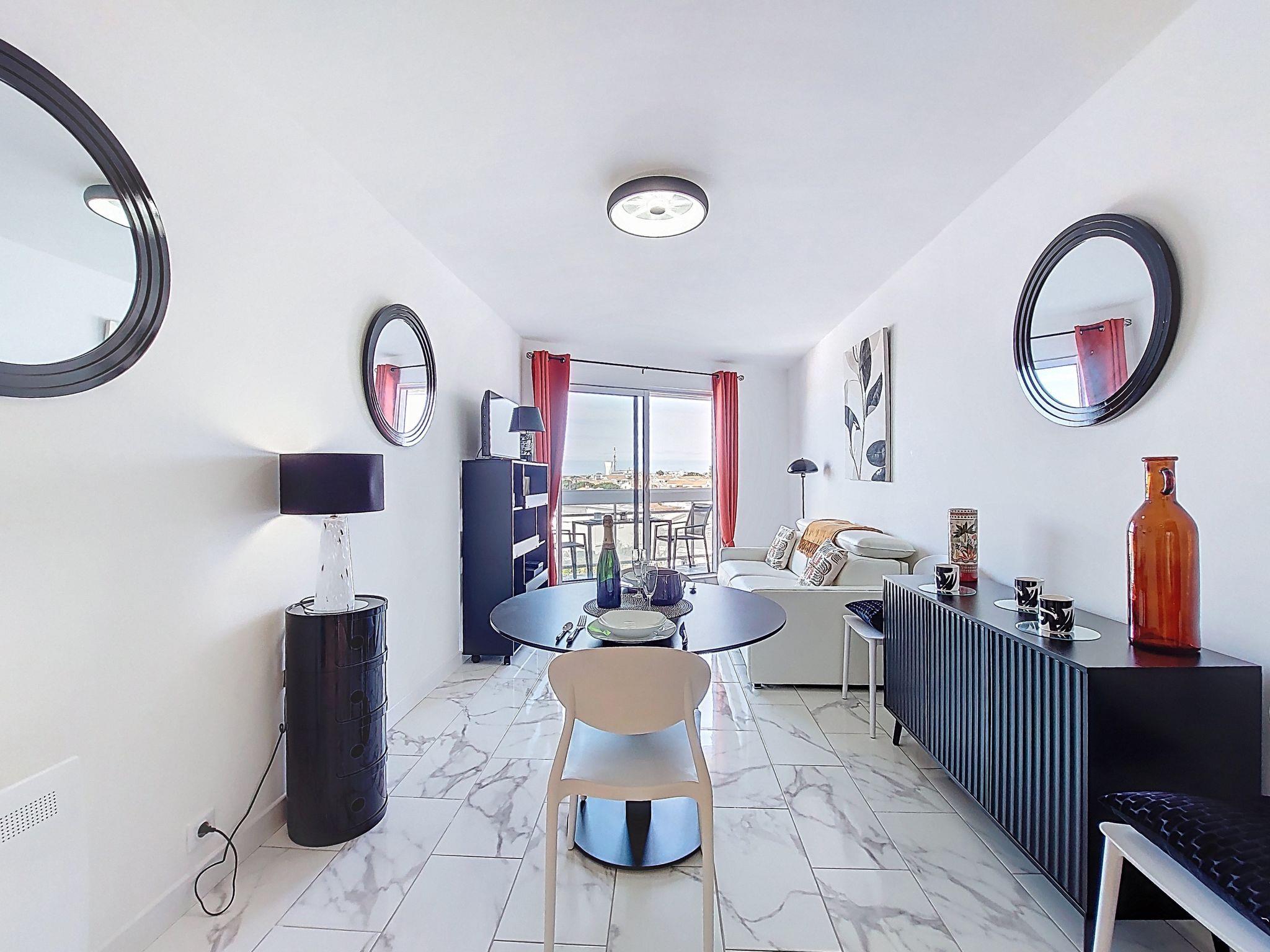 1-room studio 33 m2 on 4th floor. Fully renovated in 2025, modern furnishings: living room with 1 double sofabed (1 x 140 cm, length 190 cm), TV (flat screen). Exit to the balcony. Kitchenette (oven, 4 induction hot plates, toaster, kettle, microwave, freezer, electric coffee machine, Capsules for coffee machine (Senseo) extra). Shower, sep. WC. Electric heating. Balcony 7 m2. Balcony furniture. Side view of the sea. Facilities: washing machine, iron. Internet (WiFi, free). Parking space n 8. Please note: smoke alarm. Offer by a private individual according to Art. 155, IV of CGI.