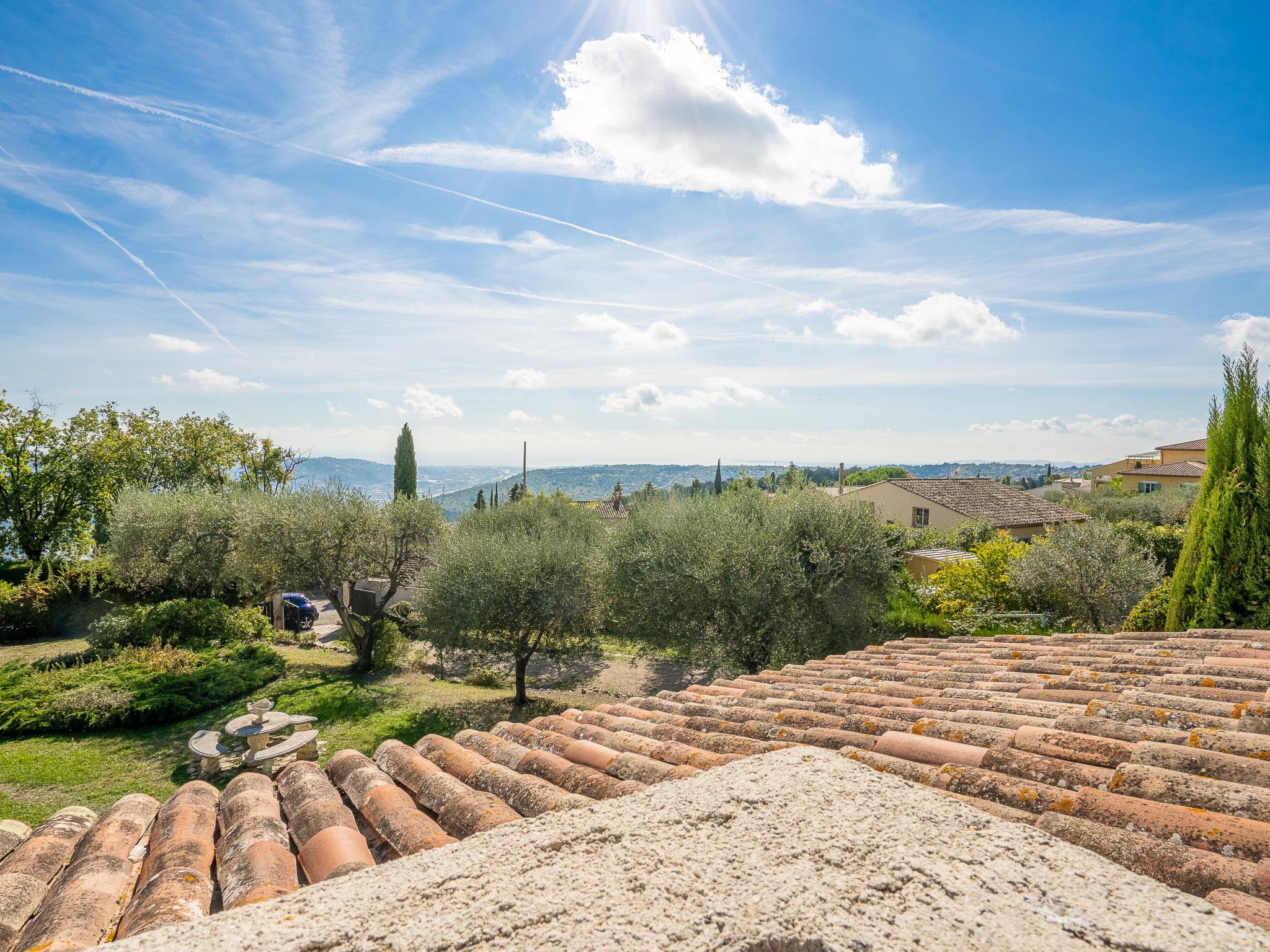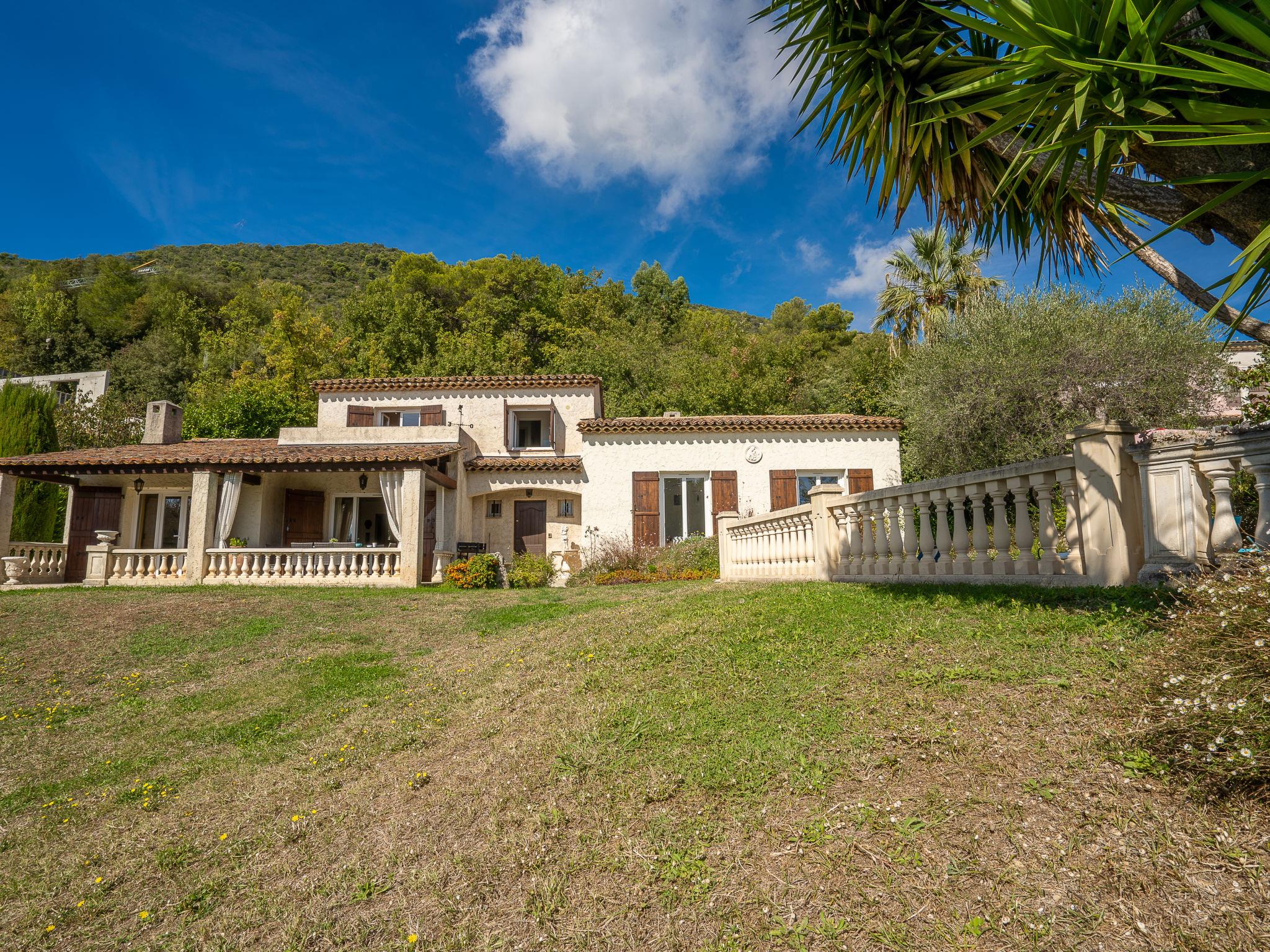 Gattières 9 km from Vence: Beautiful single-family house "La Mesnière", 2 storeys, surrounded by trees. 1.5 km from the centre of Gattières, in an elevated position residential area (villas), 16 km from the sea, 16 km from the beach, south facing position. Private: property 1'500 m2 (fenced), swimming pool kidney shaped (depth 100 - 200 cm, seasonal availability: 01.May. - 30.Sep.) with alarm system. Parking on the premises. Grocery 1.5 km, restaurant 1.5 km, bakery 1.5 km, bus stop "Super Gattières" 400 m, railway station "Cagnes sur Mer" 15 km, shingle beach "Cagnes sur Mer" 16 km, diving center 16 km. Golf course (18 hole) 27 km, sailing school 16 km, tennis 3.4 km, riding stable 12 km. Nearby attractions: Saint Paul de Vence 13 km, Marineland 20 km, Antibes 28 km, Nice 25 km, Cannes 37 km, Monaco 40 km. Hiking paths: Col de Vence 17 km, Mercantour 52 km.