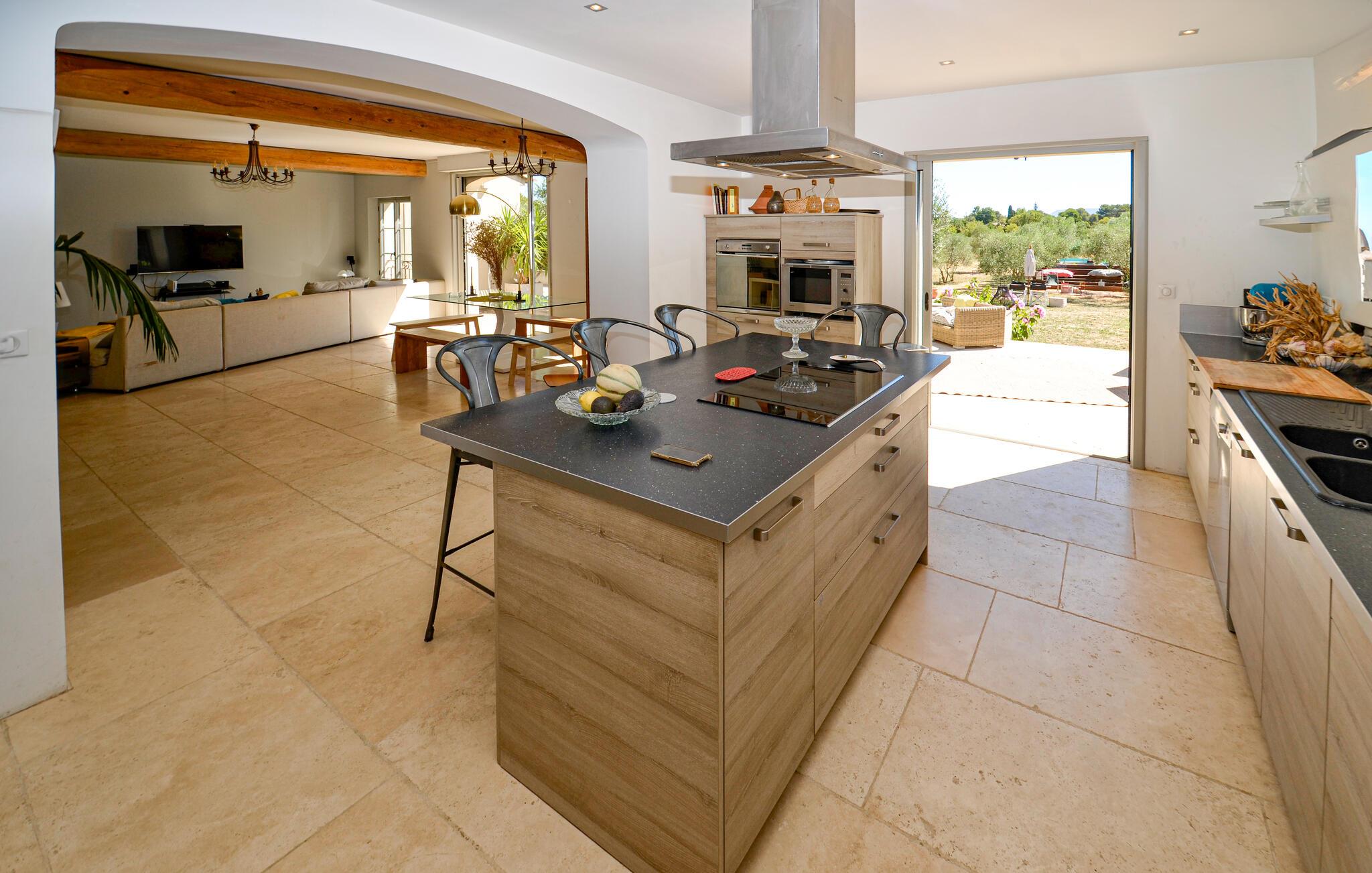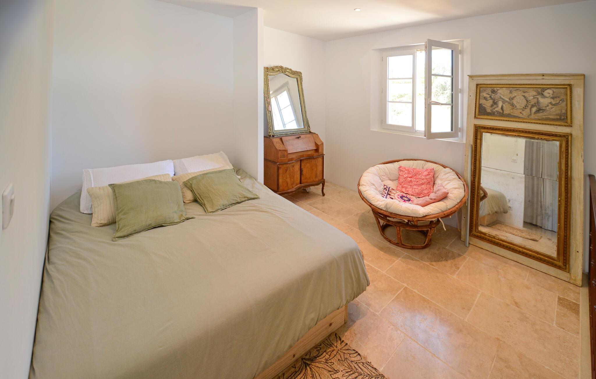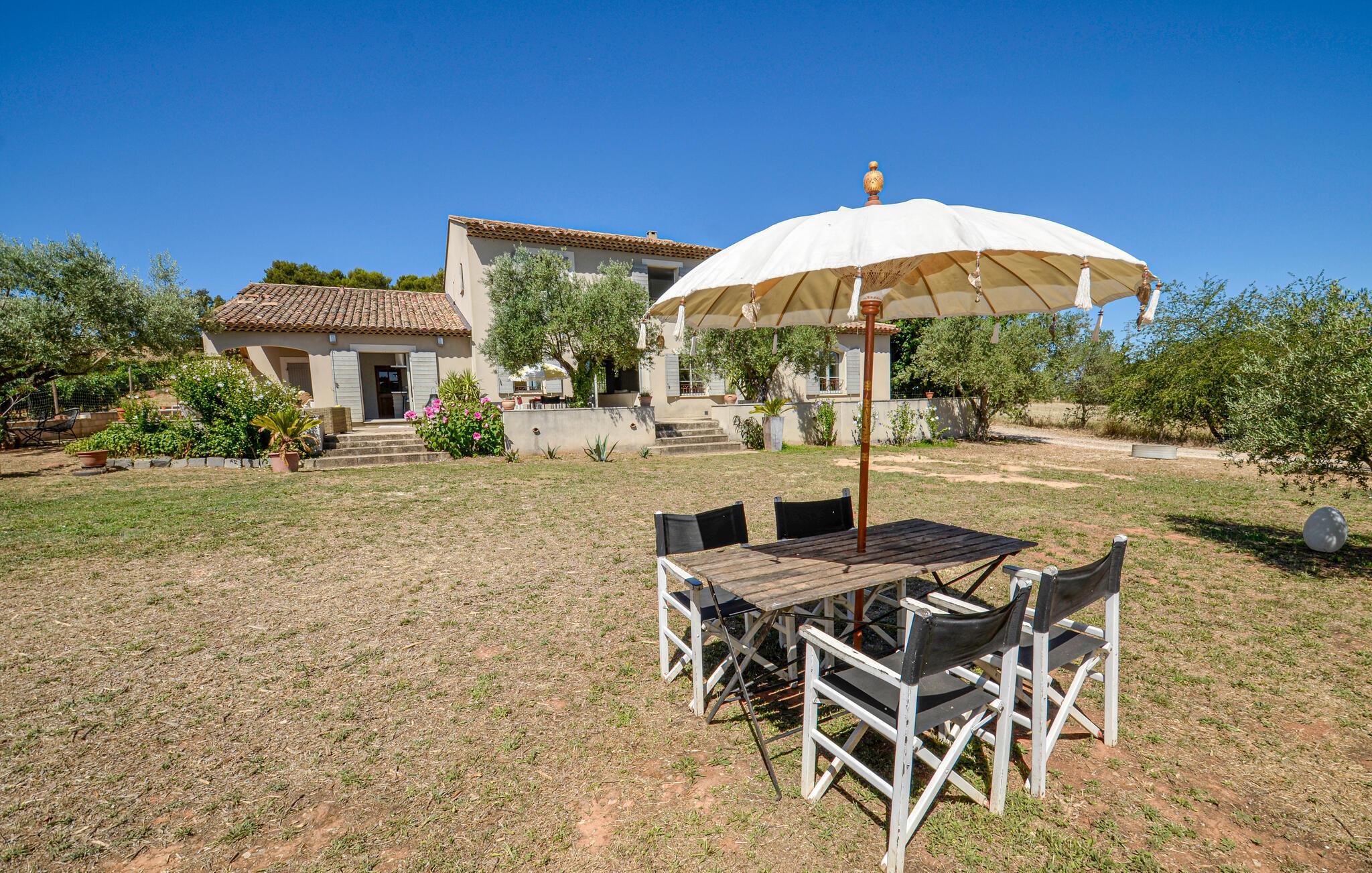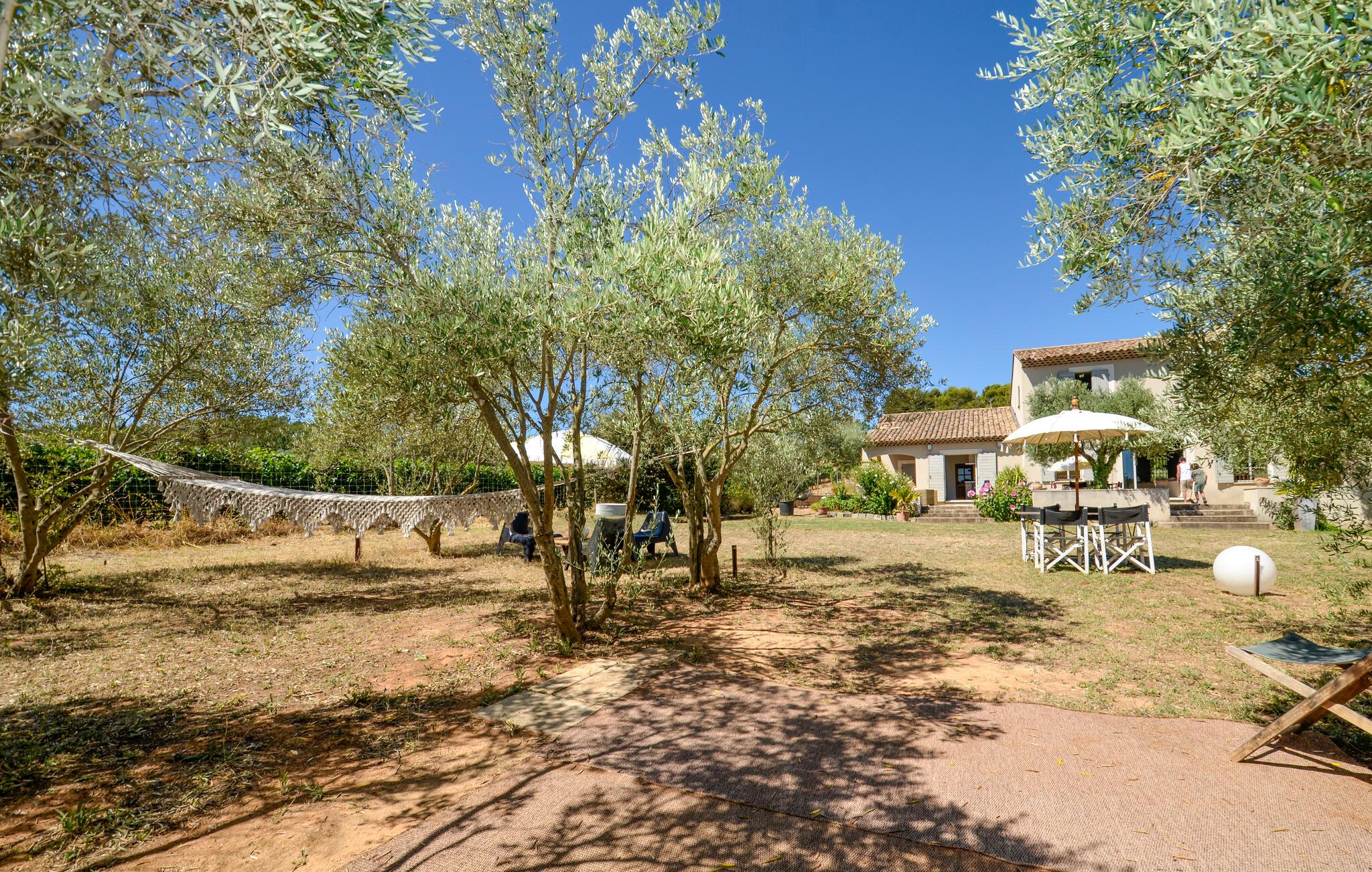 Der weitläufige, idyllische Außenbereich ist wie geschaffen, um mit Gästen allen Alters das wohlwollende Klima der Provence in vollen Zügen auszukosten. Erfrischen Sie sich zwischen Olivenbäumen im Pool, suchen Sie sich ein lauschiges Plätzchen zum Lesen, plaudern Sie bei einem Glas Wein im Schatten und sammeln Sie unvergessliche Erinnerungen bei stimmungsvollen Grillabenden unter dem Sternenhimmel.