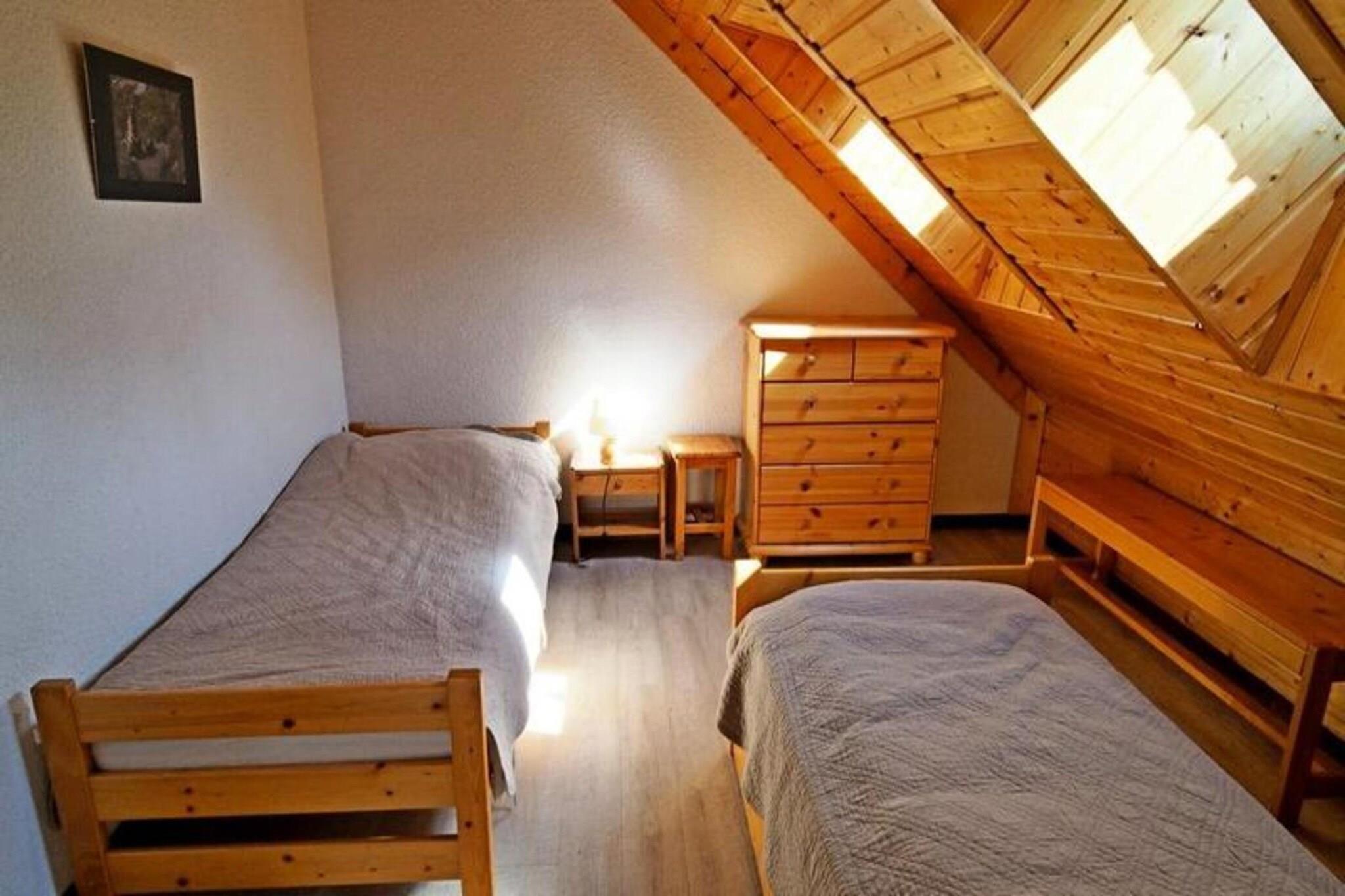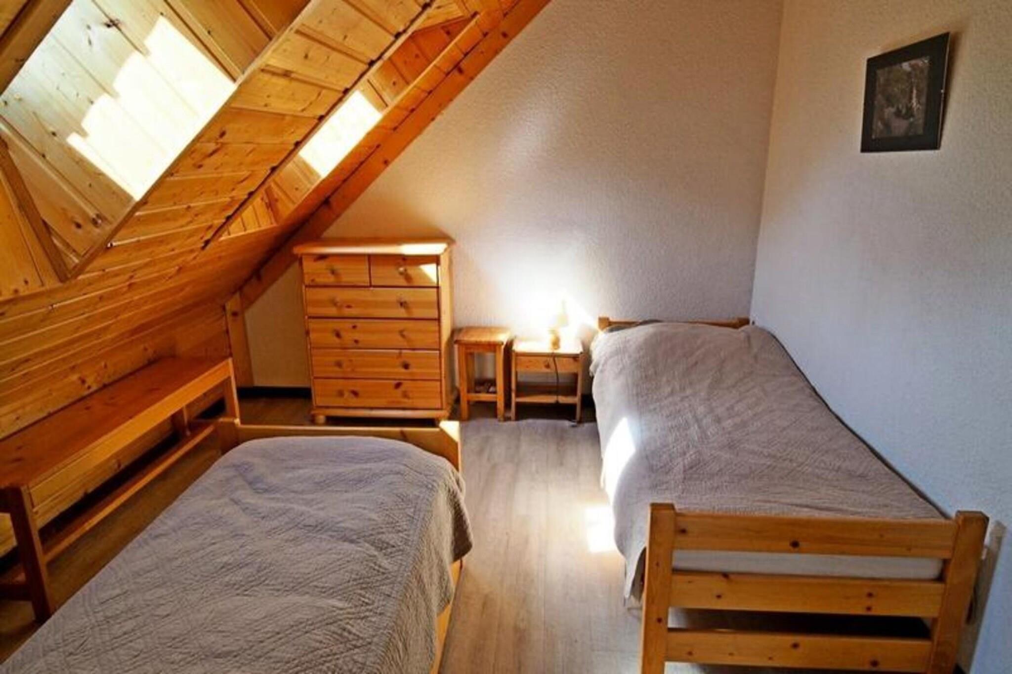 Perched on the heights of the resort, this tastefully decorated and impeccably maintained holiday apartment is perfect for up to 6 guests seeking comfort and charm. The property features a cozy mountain corner with two bunk beds, a warm living room with a sofa bed, and a bright bedroom with two single beds and ample storage. A private covered parking space is available for your convenience, and the tranquil atmosphere ensures a peaceful getaway. Please note that pets are not allowed, maintaining a clean and allergy-free environment. Located in a quiet residence, this apartment offers some of the most breathtaking, panoramic views in the area. The property is ideally situated for both relaxation and exploration, with nearby cafes, shops, and markets providing easy access to everything you need during your stay. Guests can also enjoy skiing, hiking, or cycling, with various trails and chairlifts just a short distance away, making this an excellent destination for outdoor enthusiasts. Designed for comfort and practicality, the apartment includes a well-equipped kitchenette with all the essentials for preparing meals, a spacious dining area, and a modern bathroom with a separate toilet. A washing machine is also available, adding convenience for longer stays. End-of-stay cleaning is included, while bed linen and towels can be reserved upon request. This beautifully situated property is the ideal base for your mountain adventure.