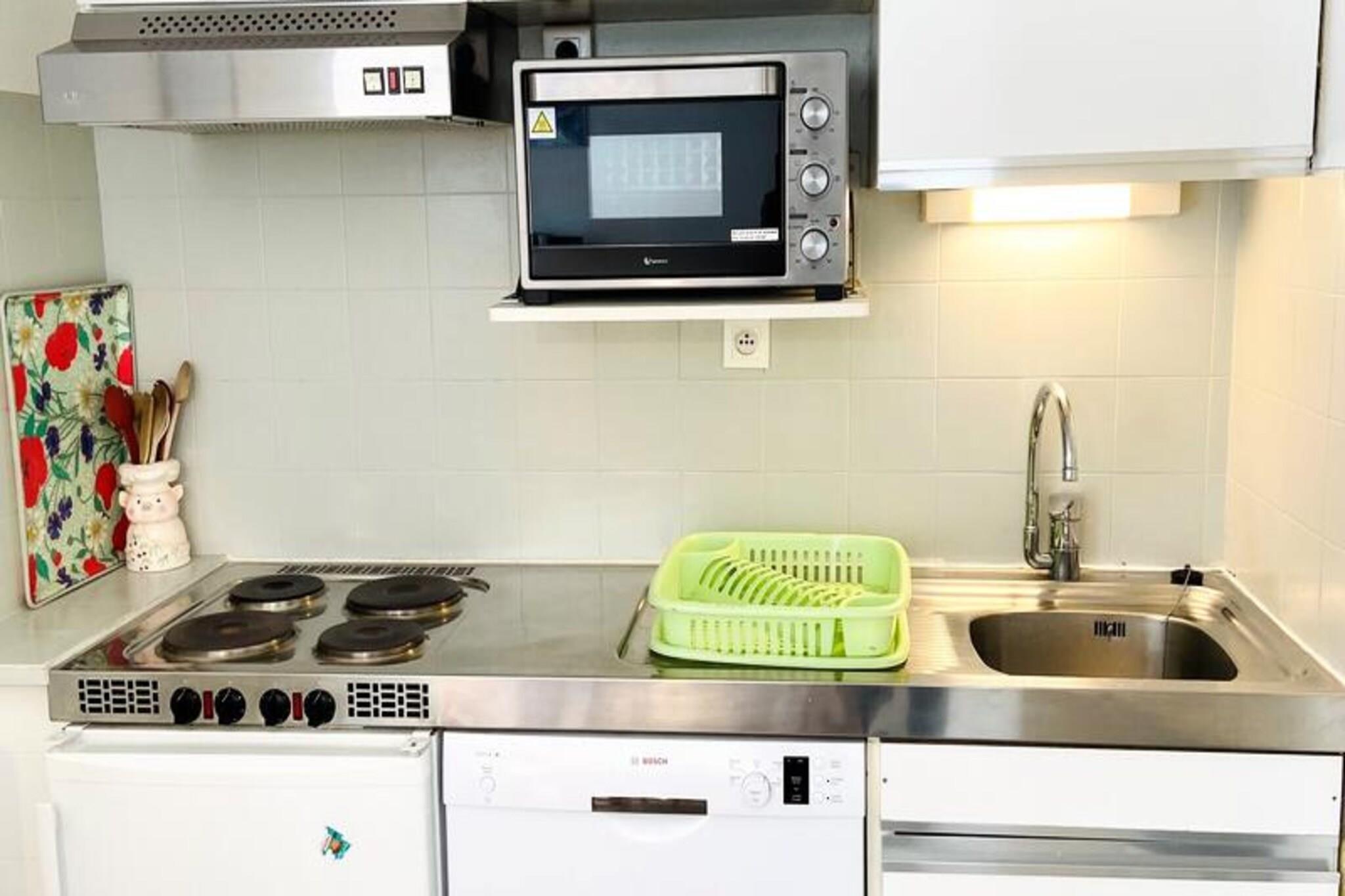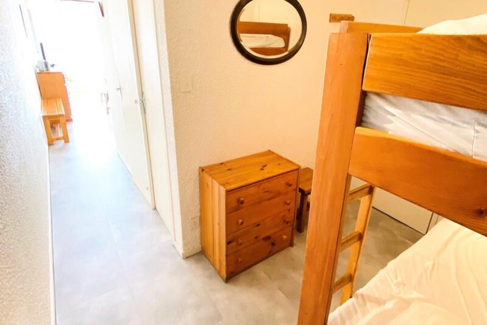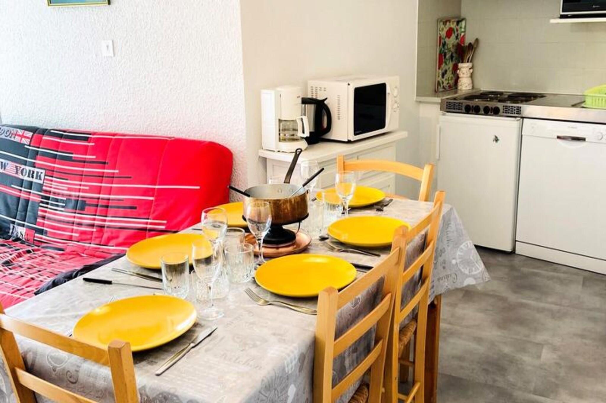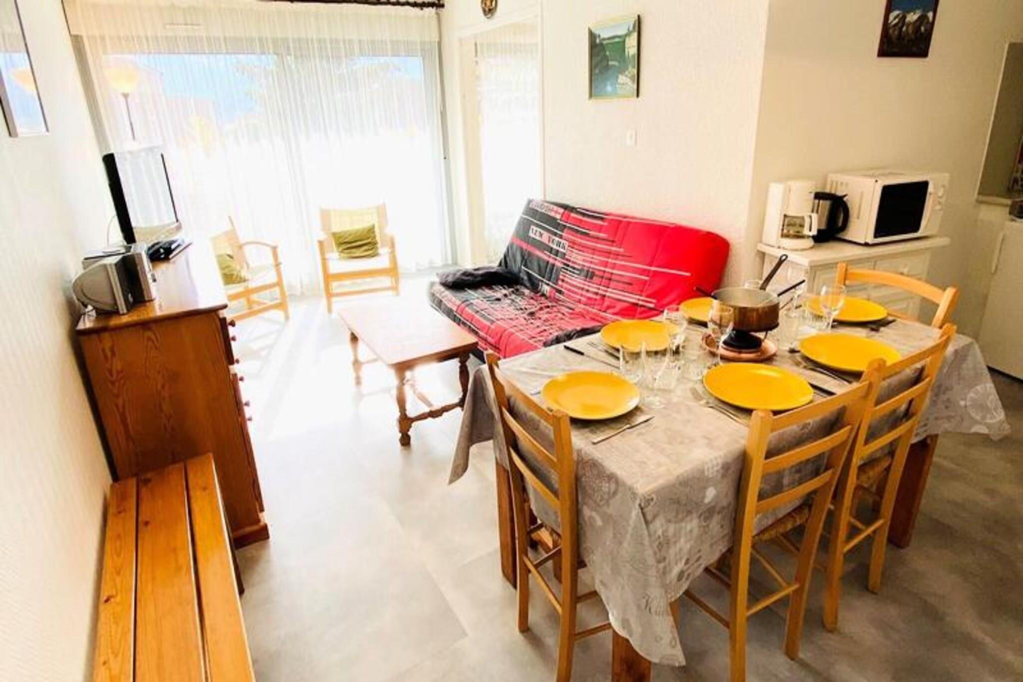 This charming 47m² apartment, located on the 4th floor of a residence with an elevator, comfortably accommodates up to six people. It features a south-facing balcony with scenic views, a cozy living room with a sofa bed, television, and dining area. The kitchen, open to the living room, is fully equipped with four induction hobs, a microwave, refrigerator, dishwasher, oven, coffee maker, kettle, toaster, raclette grill, fondue set, and even a hairdryer for added convenience. Pets are accepted for an additional fee. Ideally located at the foot of the slopes in the central sector, the property offers easy access to ski lifts, shops, a swimming pool, ice rink, library, ski schools, cinema, and hiking trails. Whether you're visiting for skiing in the winter or outdoor activities in the summer, the area has something for everyone, making it an ideal destination for family and friends. Additional amenities include a bathroom with a bathtub, a separate WC, a ski locker, and an electric roller shutter for comfort. Guests also have access to the building's collective parking lot, though space is not guaranteed. Bed linen, towels, household linen, WiFi, and end-of-stay cleaning are not included but can be reserved in advance. The apartment provides a comfortable and convenient base for an unforgettable stay in the heart of the resort.