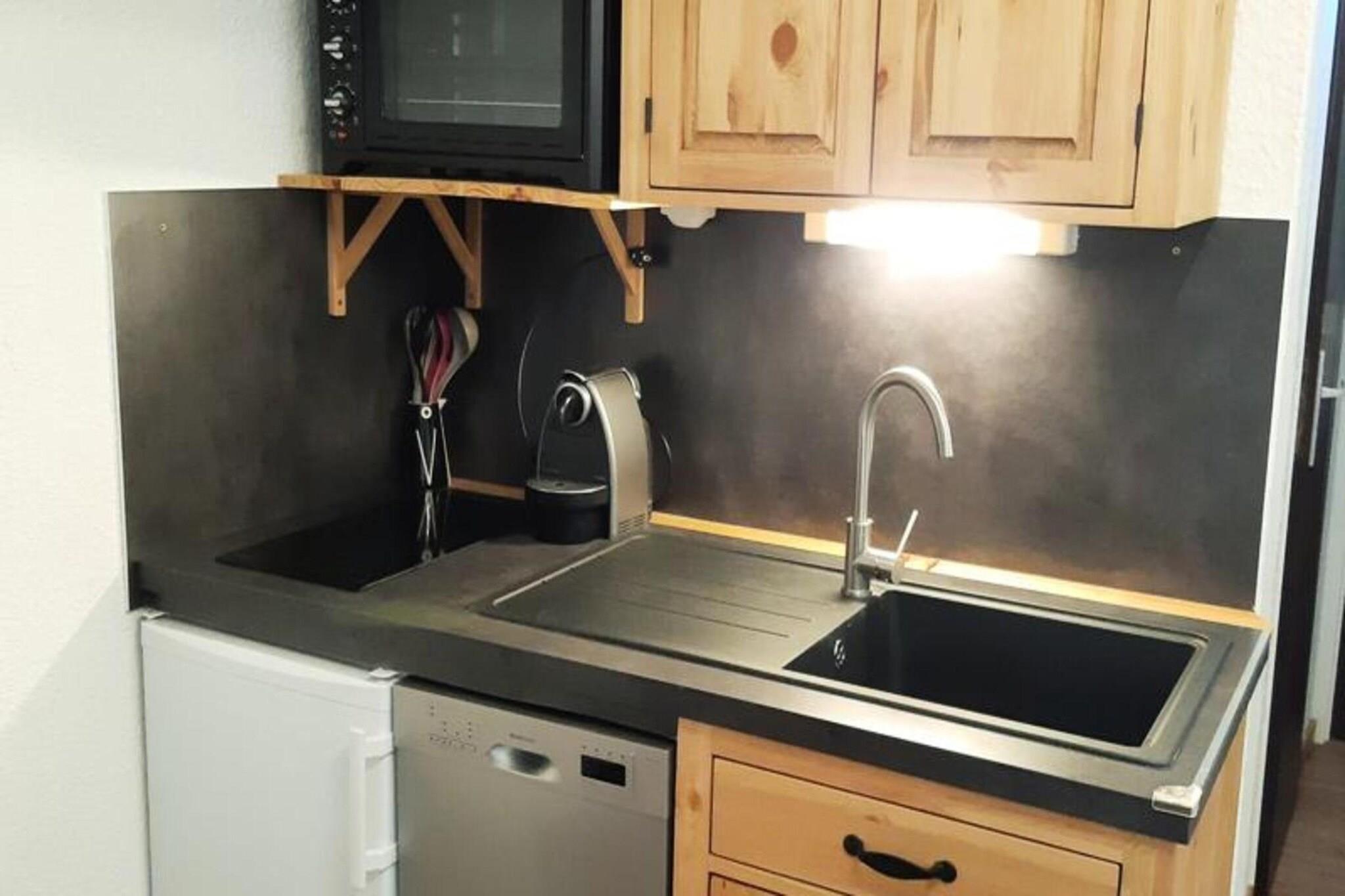 This 26m² apartment for 4 people is located on the 6th floor of a residence with an elevator. It features a living room with a sofa bed, television, and dining area. The bedroom offers 2 double bunk beds, with the upper berths not recommended for children under 6 years old. The apartment does not have a balcony, and it faces north/east, providing a serene atmosphere. The property is ideally located at the foot of the slopes, just 200m from the Jandri Express cable car, offering direct access to the glacier year-round. Shops, the cinema, and ski school meeting points are within walking distance, making this apartment an ideal base for ski enthusiasts. Ski-in access is possible, ensuring easy return to the residence after a day on the slopes. The apartment features an open-plan kitchen with 2 induction hobs, a refrigerator, dishwasher, mini-oven, Nespresso coffee maker, kettle, toaster, and raclette grill. The bathroom includes a shower and WC. Additional amenities include a ski locker, electric roller shutters, and access to the building's collective parking lot (space not guaranteed). Pets are not allowed.