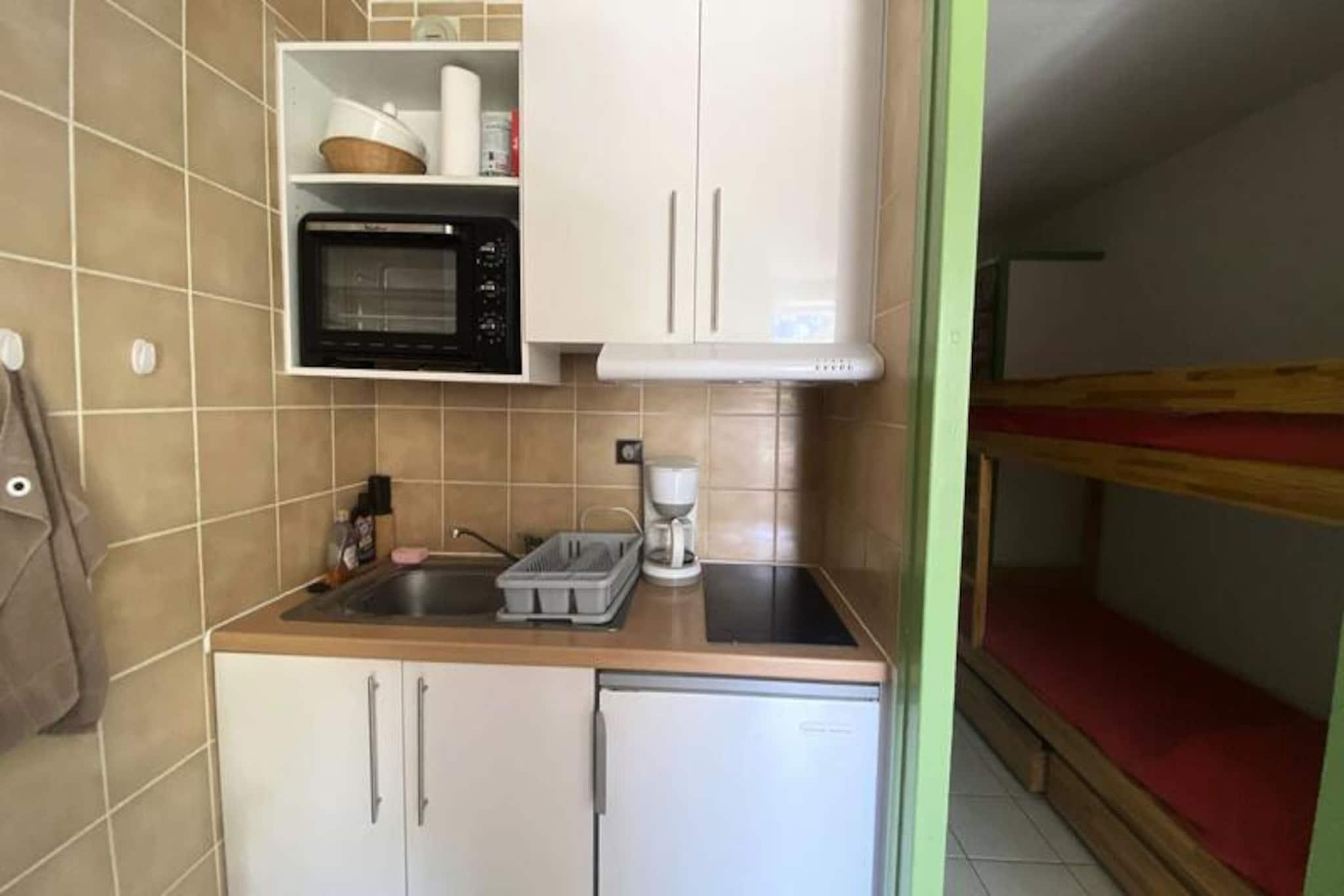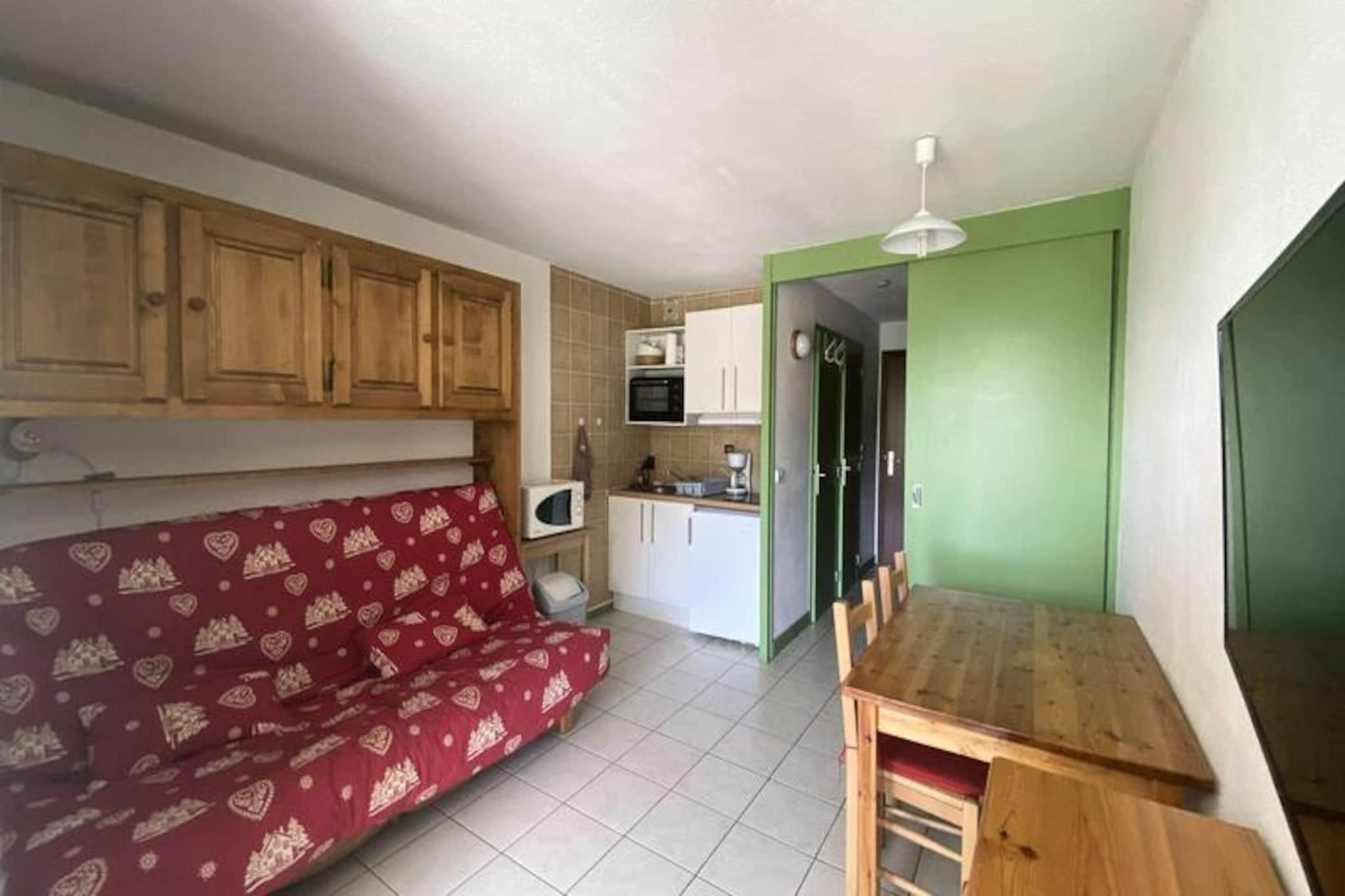 High above the vibrant resort of Les Deux Alpes, this charming 20 m² studio offers a cozy retreat for up to four guests. Imagine waking up to the breathtaking views of La Muzelle from your spacious south-facing balcony, where the sunlight dances on the peaks and the village below comes to life. Whether you're here for the snow-covered slopes or the lush alpine summers, this studio provides the perfect base for your mountain adventures. Inside, the studio is thoughtfully designed with a sleeping alcove featuring bunk beds and a comfortable sofa bed in the living area. The well-equipped kitchen, complete with an oven, microwave, ceramic hob, refrigerator, and even a raclette grill and fondue set, invites you to prepare hearty meals after a day of exploration. A bathroom with a bathtub, separate toilet, large television, and a convenient ski locker on the same floor ensure your stay is as comfortable as it is practical. Step outside, and you'll find yourself just moments from the Petite Aiguille ski lift, with the slopes directly accessible from the residence. The 1800 village, with its shops, restaurants, and free shuttle bus stop, is right at your doorstep, making it easy to explore the lively and welcoming atmosphere of Les Deux Alpes. In summer, the resort transforms into a paradise for hikers, mountain bikers, and paragliders, with activities for all ages and interests. Whether you're seeking thrilling ski runs, panoramic hikes, or simply a tranquil escape surrounded by stunning alpine scenery, this studio offers an unforgettable experience in one of the Alps' most renowned destinations. Book your stay today and let the magic of Les Deux Alpes captivate you.
