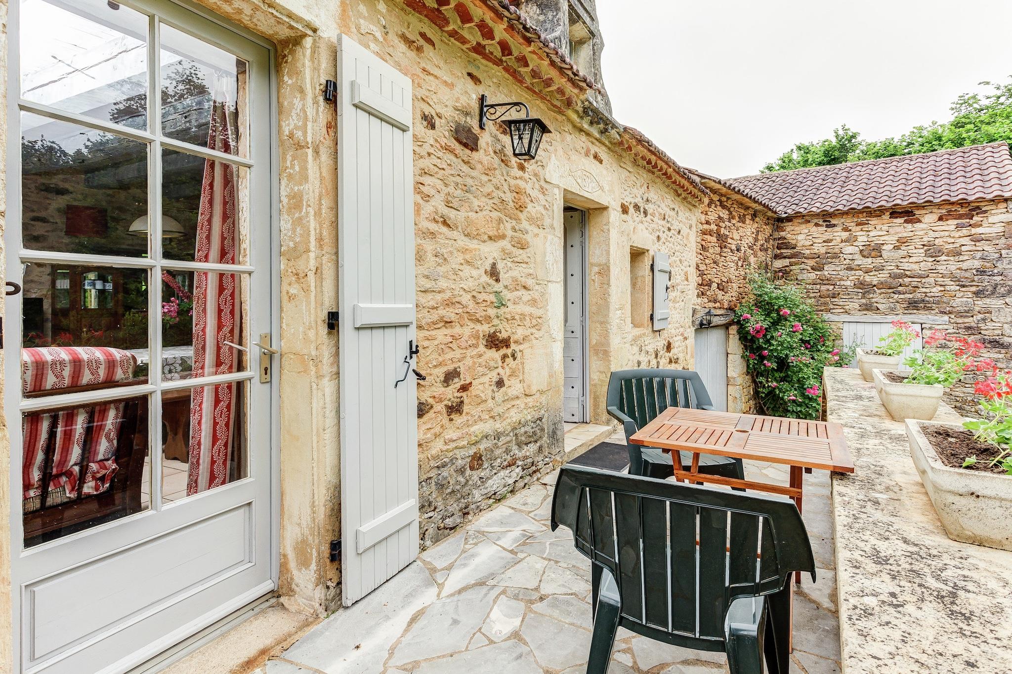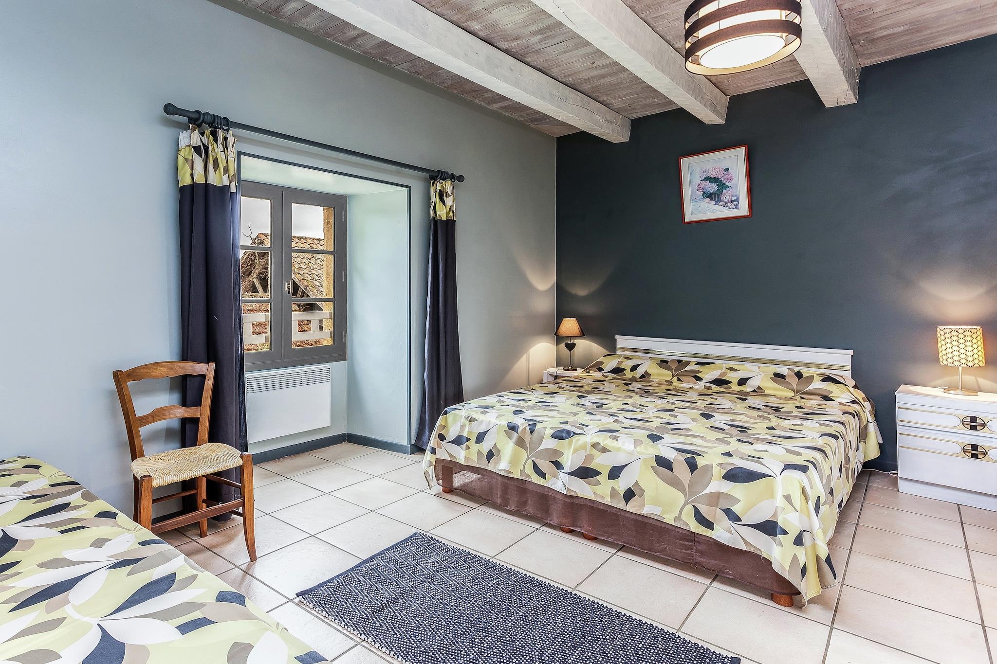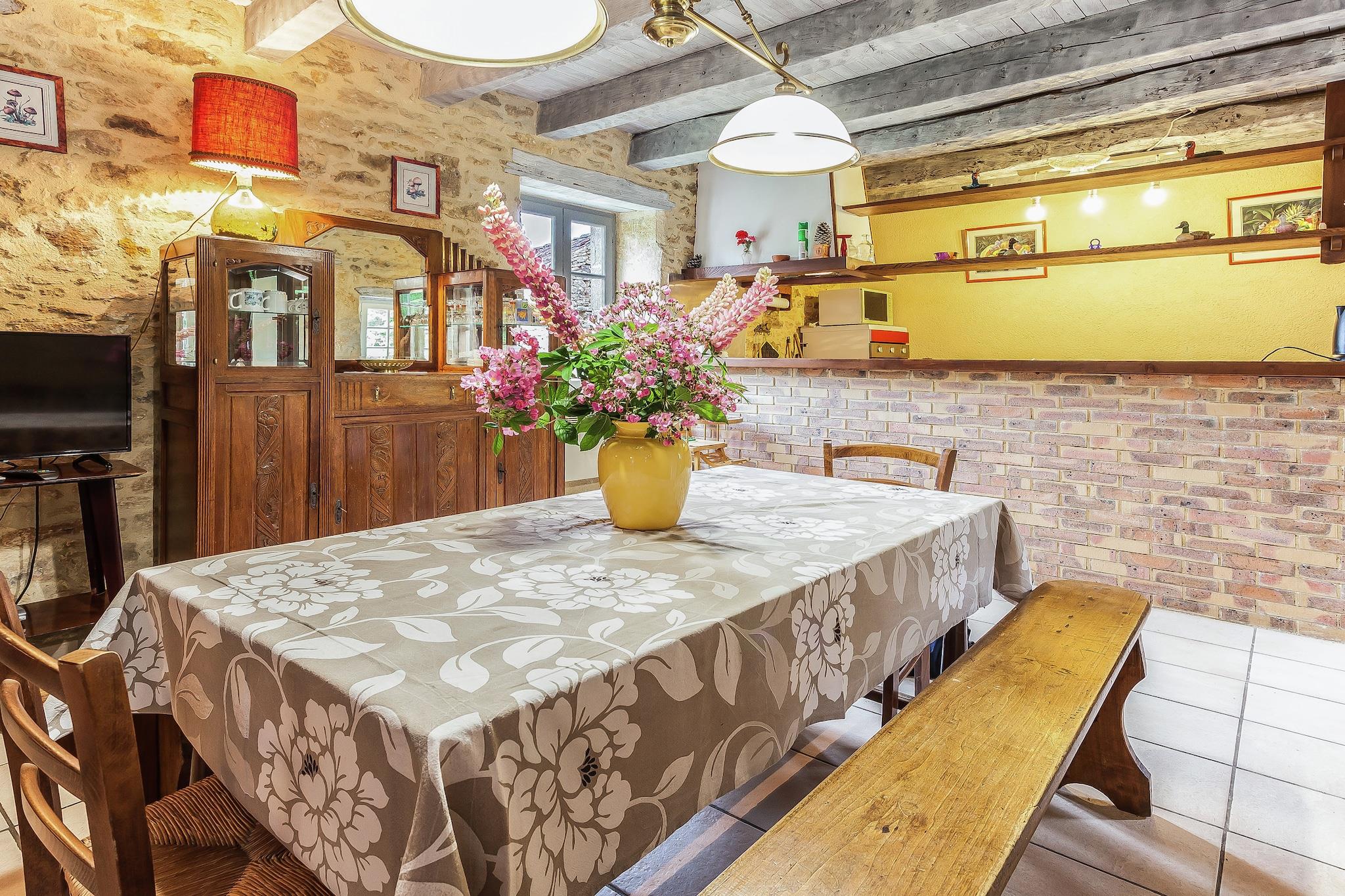 Located in Villefranche-du-Périgord, this pet-friendly holiday home has 4 bedrooms and hosts upto 9 people. Featuring a terrace and barbecue for spending relaxed days, it is ideal for a group of 9 or families with children to occupy. The region is a walled village of 13th century and is surrounded by forests. There are many swimming lakes in Prats-du-Périgord at 12 km, Cazals at 8 km and Frayssinet at 10 km. A short drive will take you to Monpazier at 26 km, Villeréal at 40 km and Cahors at 42 km. You can find a tennis court, swimming pool, restaurants and supermarket at 7 km. The interiors are cosy with the heating. You can enjoy the warmth of the fireplace and lounge in the living-dining room. Have fun with table tennis in the evening. A barbecue meal outdoors is also a wonderful idea. The terrace and furnished garden gives a lovely spot to relax. There is a cot and high chair for kids and provision to bring 2 pets. Check-in between 4 ? 7 PM and check-out between 9 ? 10 AM.