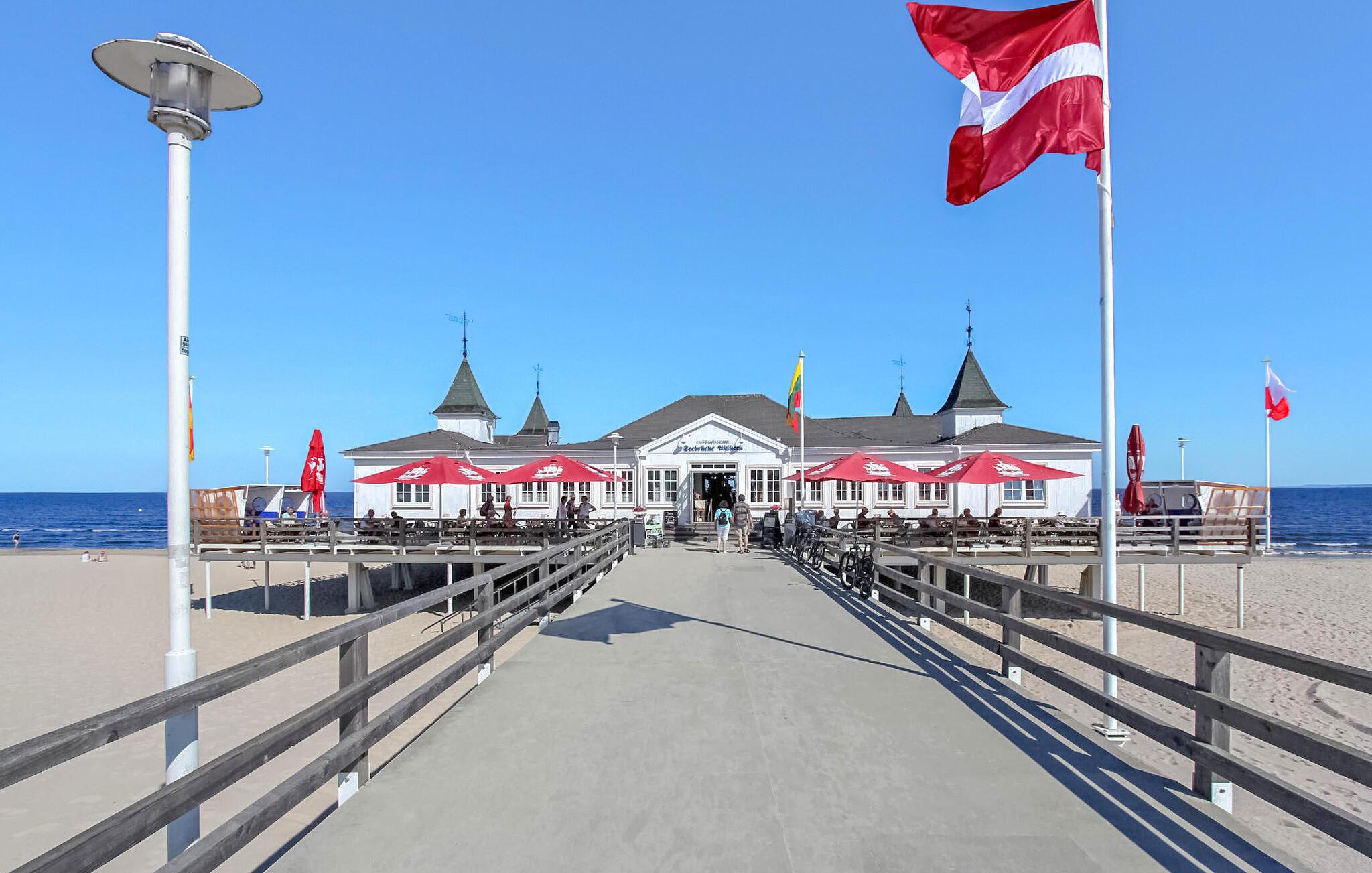 Diese Ferienwohnung und drei Appartements befinden sich im Erdgeschoss und Obergeschoss einer separaten Ferienwohnung im Hof einer Badevilla, nur ca. 200 m von der Seebrücke Ahlbeck und dem Ostseestrand entfernt. Geschäfte und Restaurants liegen im Umkreis von wenigen hundert Metern. Im Außenbereich gibt es einen kleinen überdachten Sitzbereich, eine Grillmöglichkeit, zwei Strandkörbe zur Mitbenutzung sowie einen Fahrradabstellraum und einen Parkplatz (ab 2024 gegen Gebühr von 3,00 EUR/Tag). Im Gesamtpreis sind Endreinigung, Bettwäsche, Handtücher sowie Wasser- und Energieverbrauch enthalten. Da es sich beim Ostseebad Ahlbeck um einen Kur-/Erholungsort handelt, wird vor Ort eine Kurtaxe erhoben.