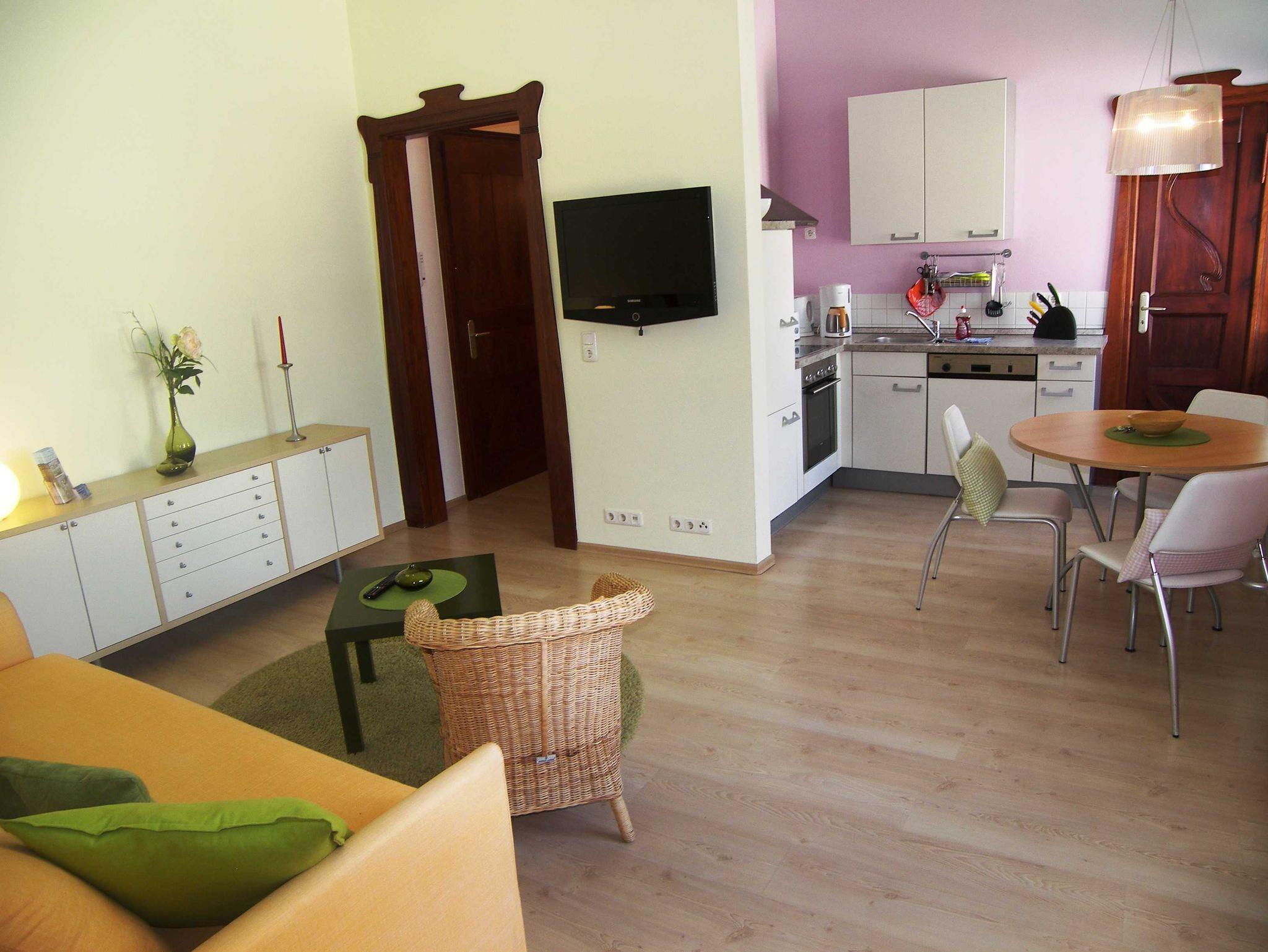 Die Wohnung verfügt über einen geschmackvoll eingerichteten Wohnbereich mit bequemer Couch, einer komplett ausgestatteten Küchenzeile mit Spülmaschine, Kühlschrank, Backofen, Cerankochfeld, Kaffeemaschine, Wasserkocher und Toaster. Das Schlafzimmer ist mit einem Doppelbett ausgestattet. Das Badezimmer verfügt über Dusche/WC und Waschtisch. Auf dem Westbalkon können Sie die Ahlbecker Abendsonne genießen.