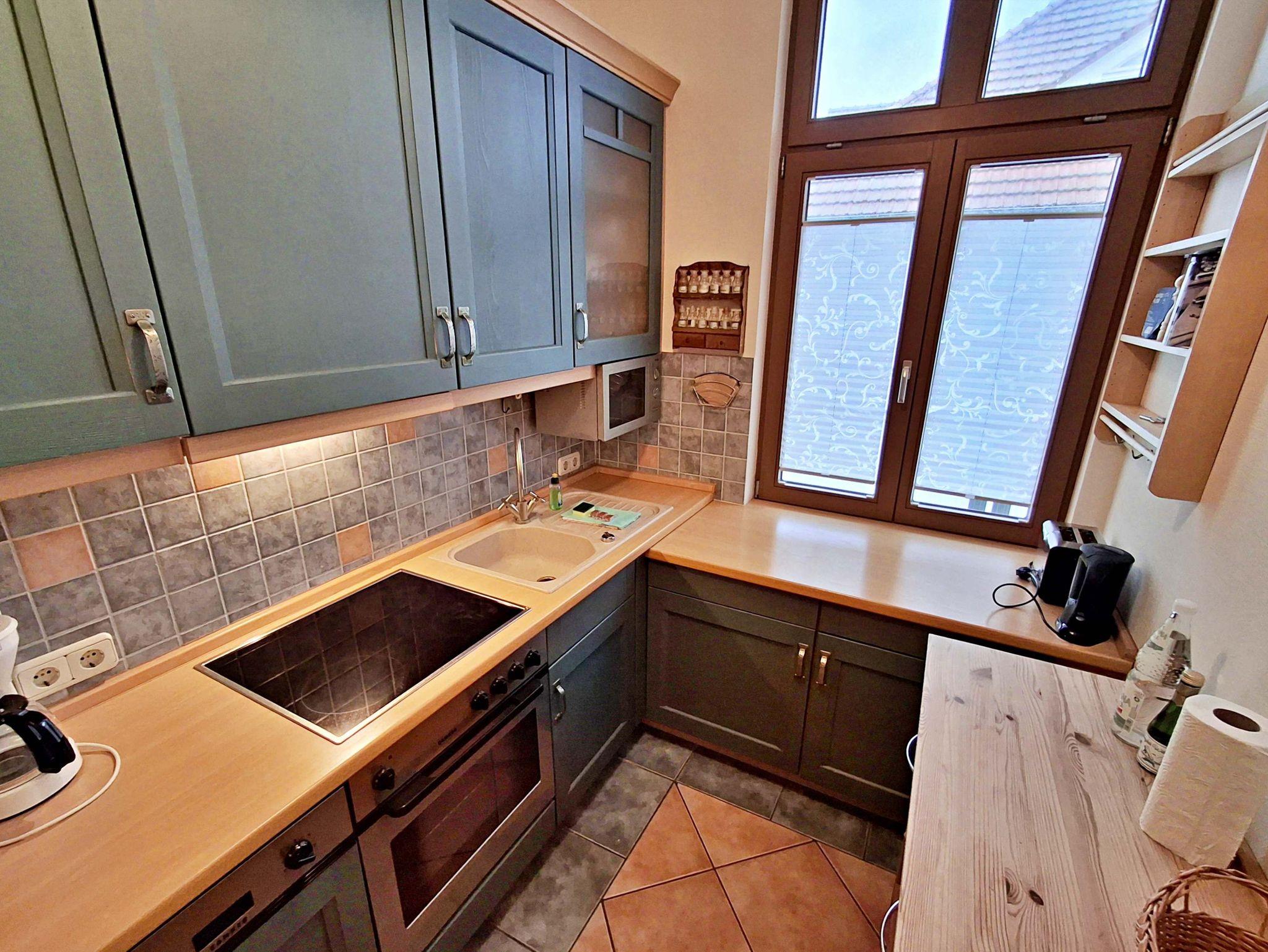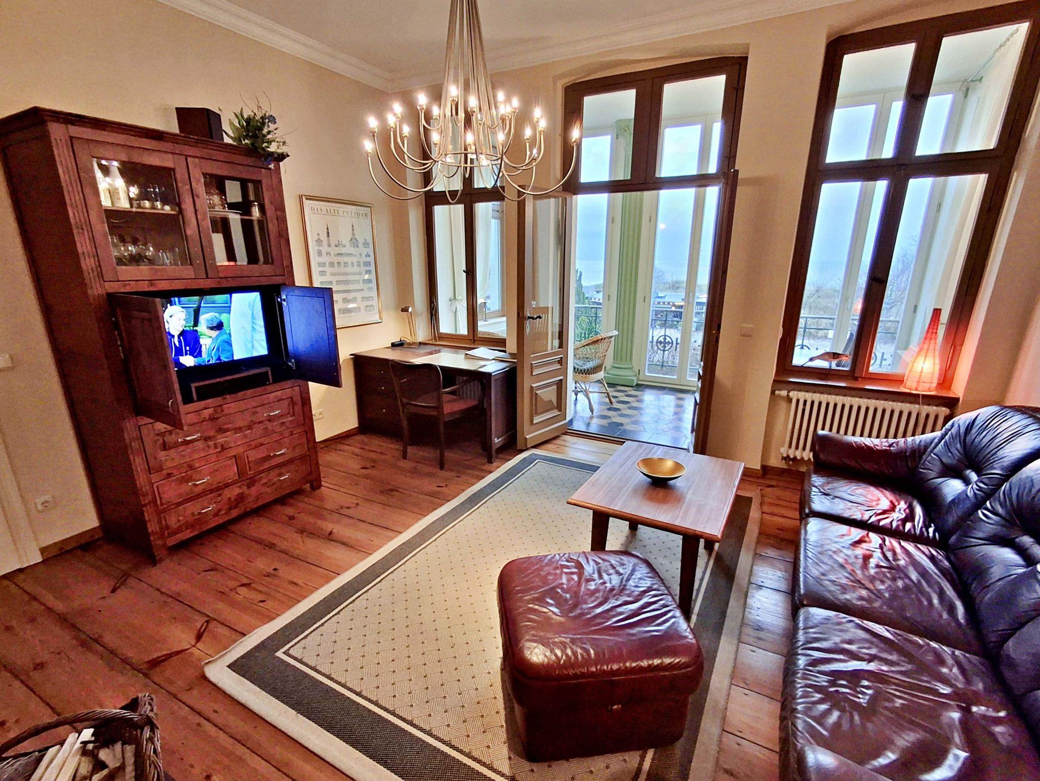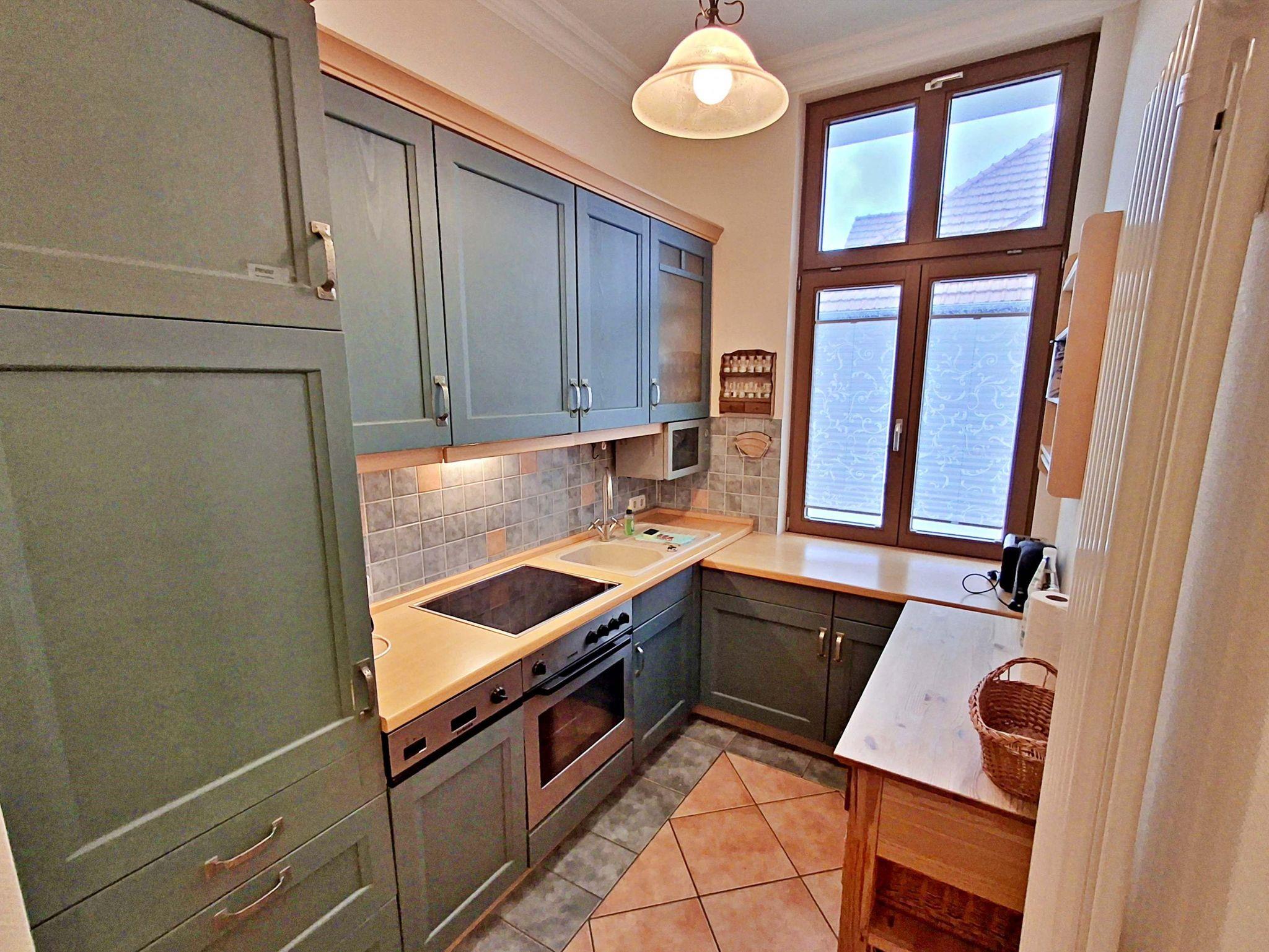 Herzlich willkommen in dieser charmanten Nichtraucher-Wohnung! Mit großzügigen 75 qm im ersten Obergeschoss bietet sie Ihnen ein stilvolles und komfortables Zuhause. Die beeindruckende Deckenhöhe und die denkmalgeschützten Ausstattungsdetails verleihen der Wohnung einen besonderen Charakter. Das helle Wohnzimmer lädt mit seinem Kamin, den eleganten Stuckelementen und dem historischen Dielenboden zum Verweilen ein. Hier finden Sie eine bequeme Sitzgruppe, einen Schreibtisch mit Meerblick, eine kleine Bibliothek sowie einen Flachbild-TV und moderne Audiotechnik, alles stilvoll in einem Schrank integriert. Die Veranda, ausgestattet mit historischen Bodenfliesen und Geländer sowie raumhohen Fenstern, bietet einen atemberaubenden Blick auf das Meer. Genießen Sie entspannte Stunden am Esstisch oder in der kleinen Sitzgruppe. In den beiden Schlafzimmern erwarten Sie gemütliche Doppelbetten, entwerder mit Blick auf das Meer oder einem Südbalkon, sowie ausreichend Stauraum in Kommoden und Kleiderschränken. Die separate, voll ausgestattete Küche lässt keine Wünsche offen und bietet Ihnen alles, was Sie für die Zubereitung Ihrer Lieblingsgerichte benötigen, einschließlich Ceranherd, Backofen, Geschirrspüler und Mikrowelle Das Badezimmer ist mit einer Badewanne und WC ausgestattet. Zusätzlich profitieren Sie von einem Parkplatz am Haus, einer eigenen Abstellkammer auf dem Grundstück sowie einer Waschmaschine und einem Trockner, die den Komfort dieser Wohnung abrunden. WLAN steht Ihnen in der gesamten Wohnung kostenfrei zur Verfügung. Bitte beachten Sie, dass eine Kaution in Höhe von 100 Euro für die Funk-Fernbedienung zum Befahren der Promenade erhoben wird.