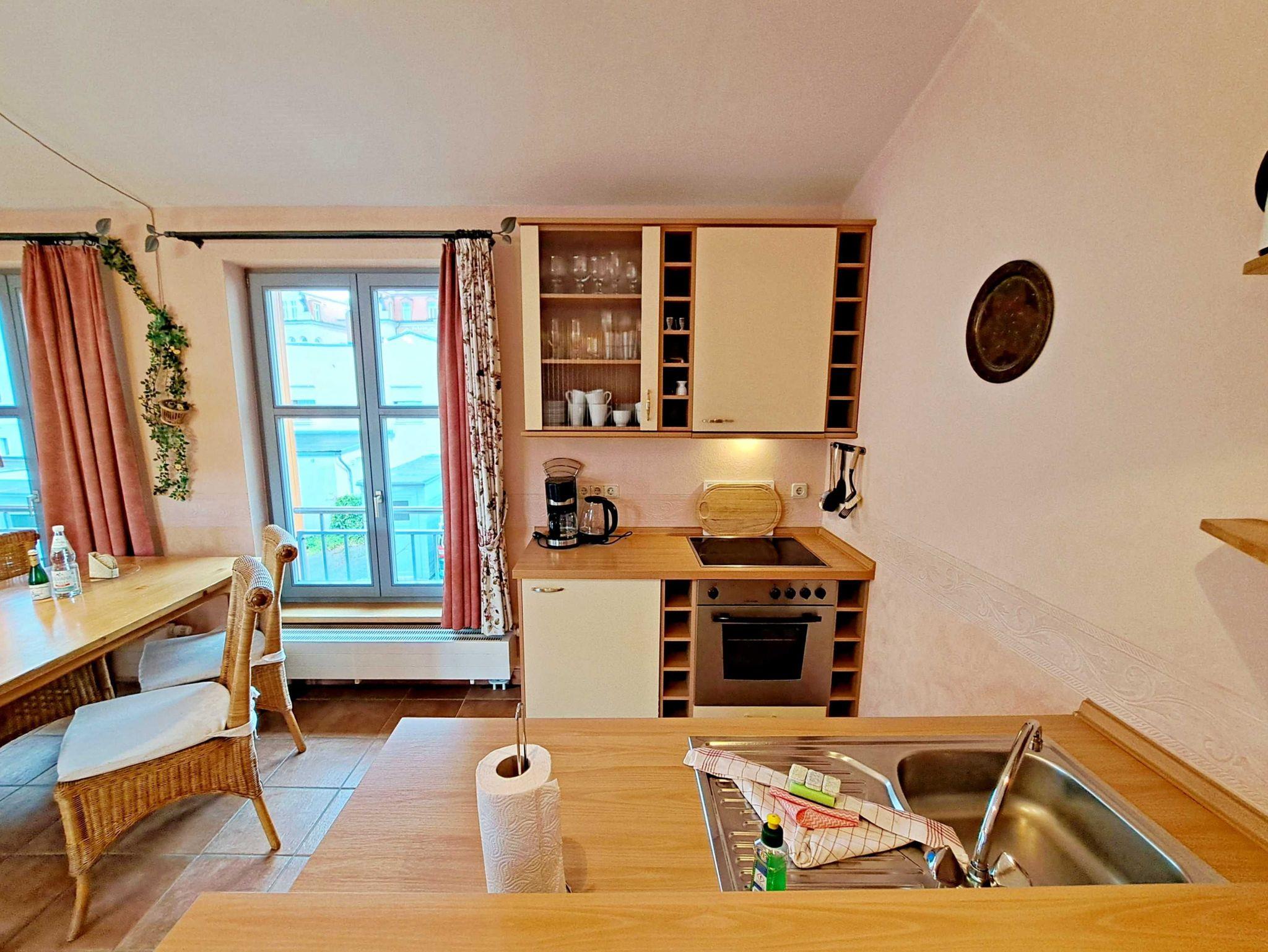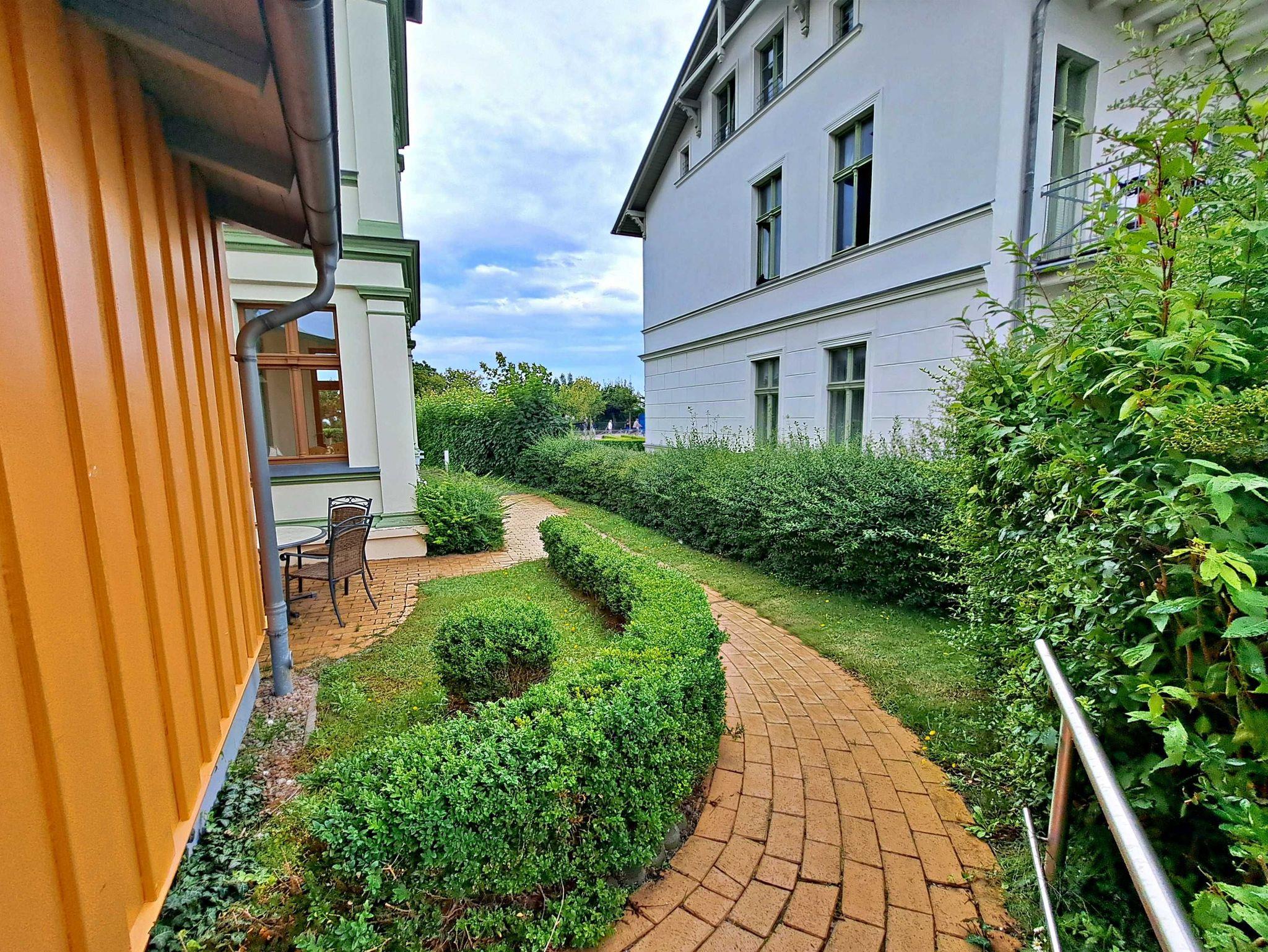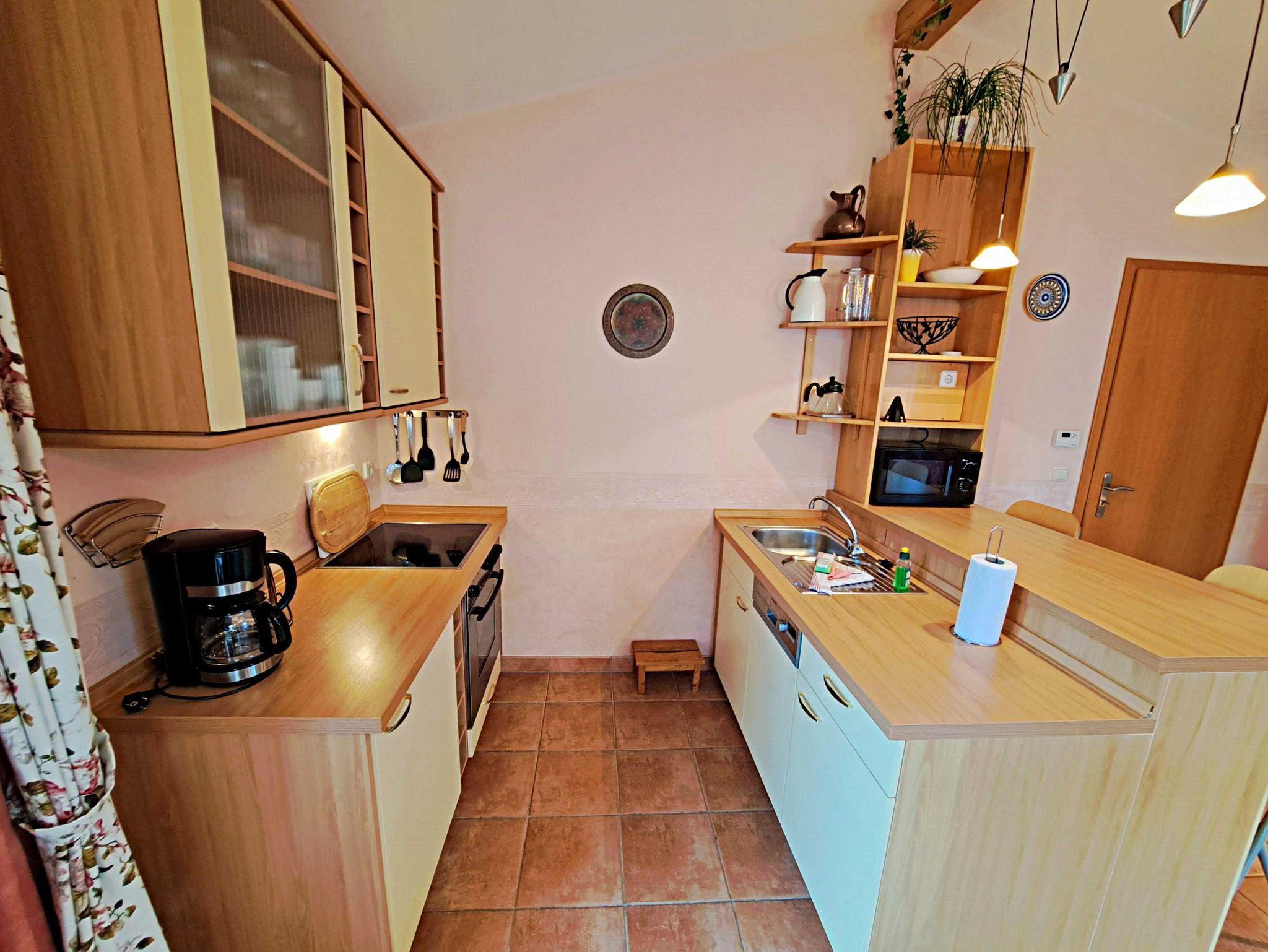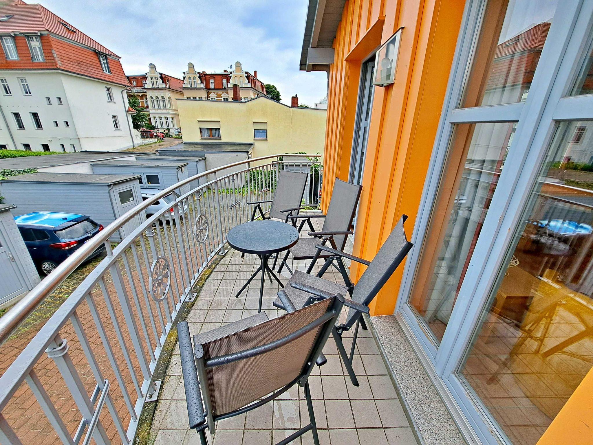Herzlich willkommen in dieser lichtdurchfluteten, behindertenfreundlichen Wohnung! Sie erreichen die Wohnung bequem ebenerdig von der Promenade aus, auch wenn sie aufgrund des abfallenden Geländes in der ersten Etage liegt. Der großzügige Wohnbereich, der mit einem schönem Fliesenboden ausgestattet ist, lädt mit einer gemütlichen Couch, einer einladenden Sitzgruppe, Esstisch mit viel Beinfreiheit sowie Flachbild-TV und moderner Audiotechnik zum Verweilen ein. Die offene Einbauküche, die nahtlos in den Wohnbereich integriert ist, lässt keine Wünsche offen: Hier finden Sie einen Herd, Backofen, Geschirrspüler, Mikrowelle, Kaffeemaschine, Wasserkocher und ausreichend Geschirr, um Ihre kulinarischen Ideen umzusetzen. Das separate Schlafzimmer bietet ein behindertenfreundliches Bett mit hoher Einstiegshöhe, einen geräumigen Kleiderschrank und einen gemütlichen Teppichboden. Das Tageslicht-Bad ist mit einer absatzfreien Dusche und einem WC mit Haltegriffen ausgestattet, was zusätzlichen Komfort bietet. Ein besonderes Highlight ist der halbrunde Südbalkon, der über zwei Flügeltüren vom Wohnzimmer aus zugänglich ist. Hier können Sie bereits am Morgen bei schönem Wetter Ihren Kaffee genießen oder den Abend entspannt mit einem Glas Wein ausklingen lassen. Für Ihren eigenen Pkw steht Ihnen ein Parkplatz direkt am Haus zur Verfügung, und Ihre Fahrräder können sicher in der eigenen Abstellkammer auf dem Grundstück untergebracht werden. Zudem stehen Ihnen eine Münzwaschmaschine und ein Münztrockner zur Verfügung. WLAN ist in der gesamten Wohnung kostenfrei für Sie zugänglich. Bitte beachten Sie, dass eine Kaution in Höhe von 100 Euro für die Funk-Fernbedienung zum Befahren der Promenade erhoben wird.