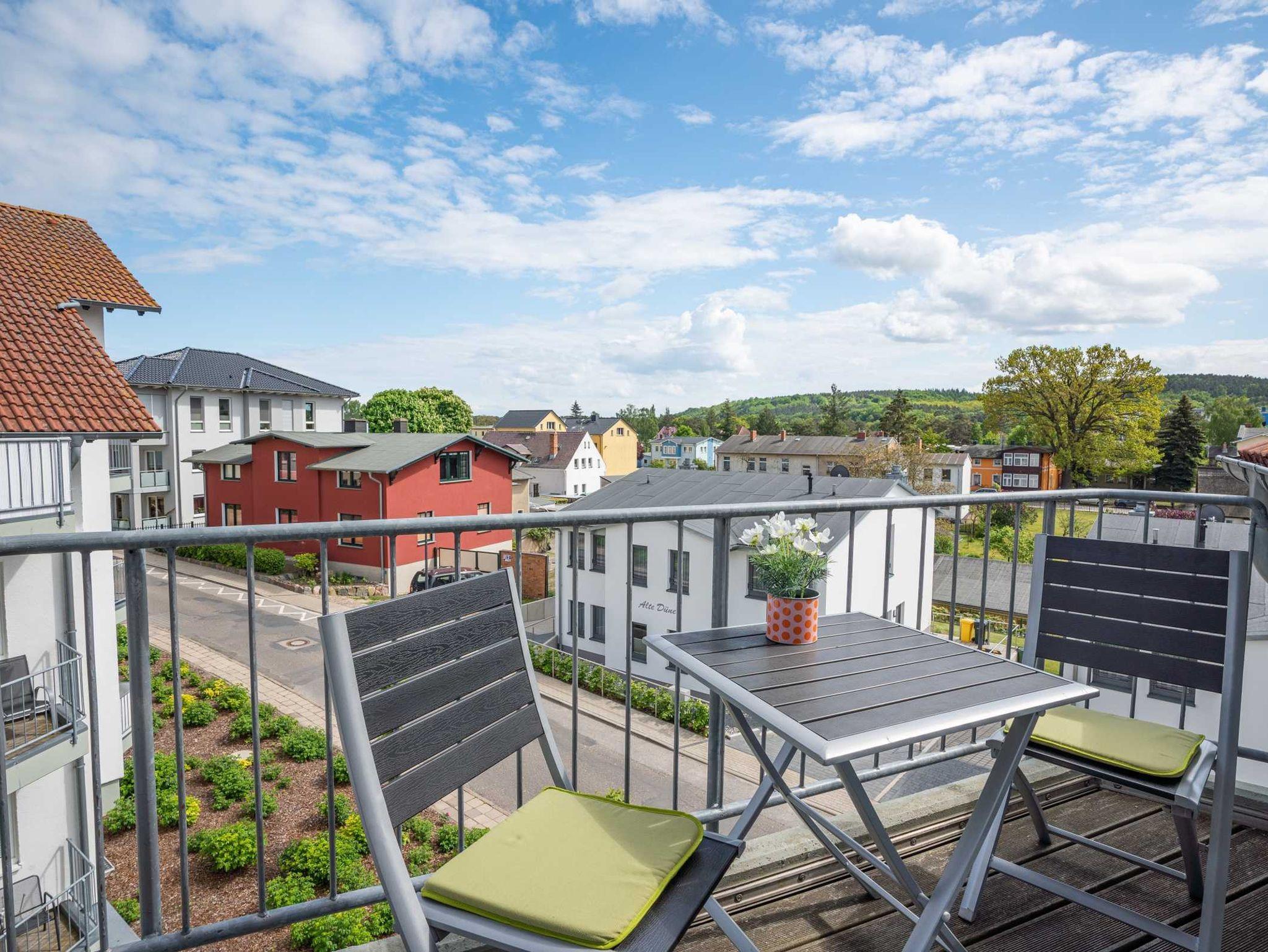 Die Wohnung ist für 2 Erwachsene und 1 x Aufbettung für ein Kind ausgelegt. In der offenen Küche finden Sie eine kleine vollwertige Küchenzeile (4 Platten Cerankochfeld, Backofen, Kühlschrank mit Gefrierfach, Spülmaschine, Wasserkocher, Toaster, Kaffeemaschine) Der Balkon zur sonnigen Süd-Ost Seite lädt zum verweilen ein. Im Schlafzimmer gibt es ein Doppelbett mit Einzelmatratzen 90x200 und ein Schlafsofa für ein Kind. Ein Babyreisebett und Hochstuhl können auf Wunsch dazu gebucht werden. Im Wohnzimmer können Sie auf einem 3 und 2 Sitzer/Ledersofa Platz nehmen. Das fensterlose Bad verfügt über eine Dusche. Ein kostenloser Parkplatz direkt am Haus gehört zu der Wohnung. Fahrräder können in der Gemeinschafts-Tiefgarage abgestellt werden. Ein WLAN Zugang steht kostenfrei zur Verfügung und rundet den Urlaub ab.