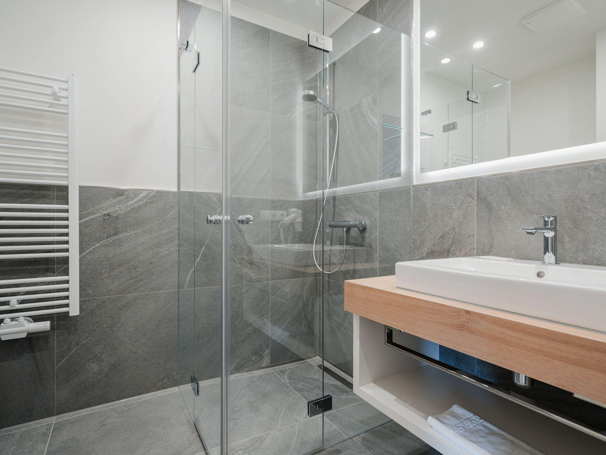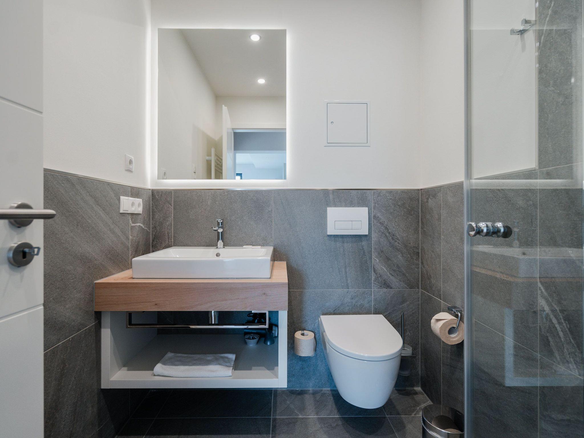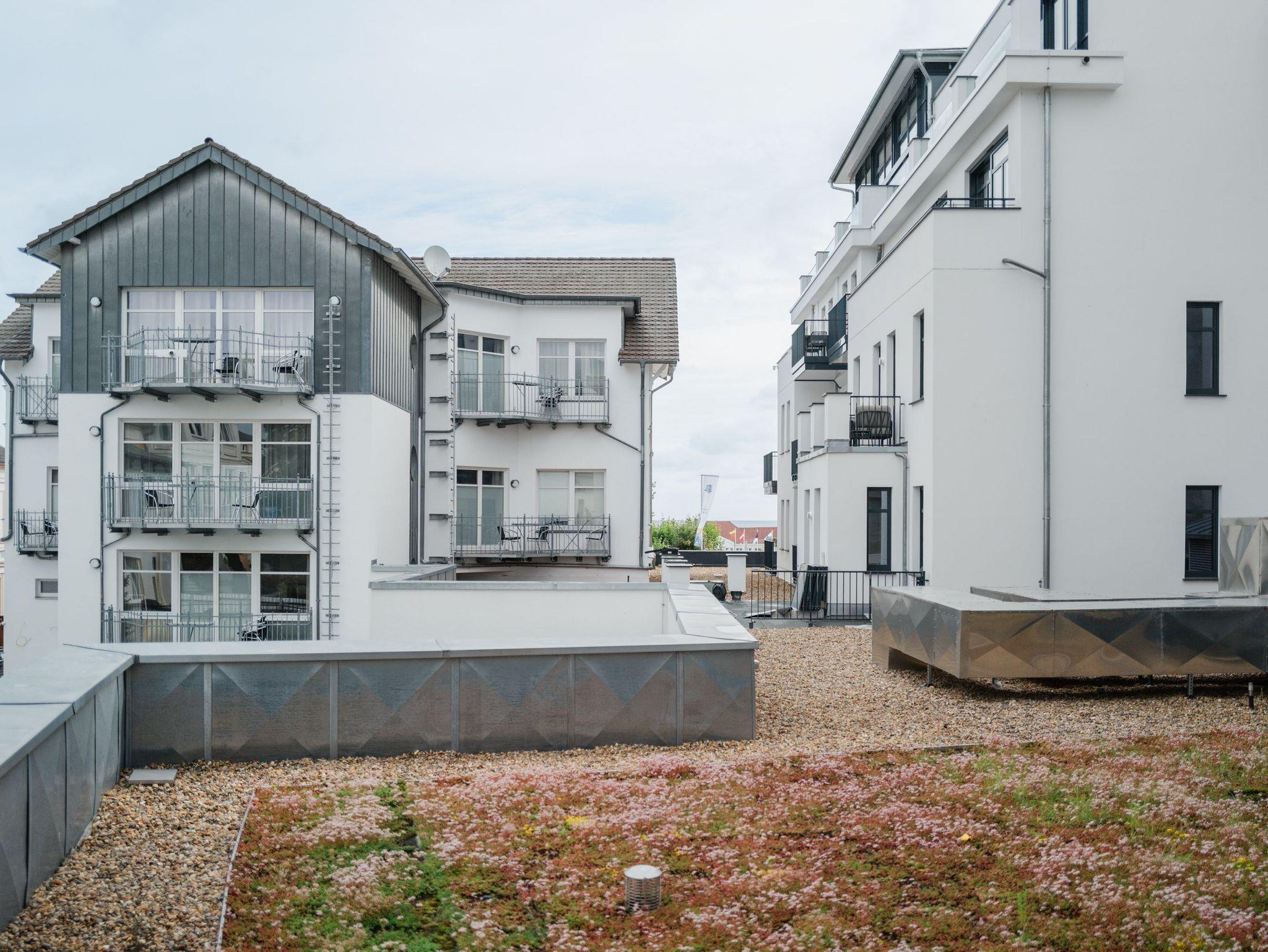 Die 2024 fertig gestellte Strandterrasse liegt direkt an der belebten Strandpromenade und bietet einen einzigartigen Ausblick auf die Grand Dame der historischen Seebrücken sowie die historische Konzertmuschel, einem beliebten Treffpunkt für Kunst und Kultur. Dahinter liegt die Ostsee ? ein Panorama, das zu den schönsten in den Kaiserbädern gehört. Es ist wie das Abtauchen in eine andere Zeit. In eine Zeit, in der man mit Stock, Sonnenschirm und Hut fürs „Sehen und gesehen werden“ über die Promenade schlenderte; aber auch in eine Zeit, in der ? damals wie heute ? Zeit einmal für eine kurze Weile keine Rolle spielt. Weil man angekommen ist im Loslassen, Entspannen und Genießen. Es ist dieser besondere Geruch nach Meeresluft und Freiheit, der in Erinnerung bleibt. Dazu die Bilder, die man mitnimmt. Von langen Strandspaziergängen, vom Lachen in fröhlich schäumenden Ostseewellen, von der Zeit in einem wunderschönen Urlaubsdomizil. Denn genau das ist die Strandterrasse mit ihren 56 modernen und exklusiven Ferienappartements direkt gegenüber der Ahlbecker Seebrücke. Die Ein-, Zwei- oder Dreizimmerwohnungen ? zwischen 40 und 70 Quadratmeter groß ? sind von einer Innenarchitektin gemeinsam mit unserem Erfahrungsschatz an Gästewünschen mit viel Liebe zum Detail und ganz individuell konzipiert worden. Entspannung und Wohlfühlen stehen an erster Stelle. Alles ist aufeinander abgestimmt und sorgt für eine gemütliche Atmosphäre. Wählen Sie zwischen einem Domizil in einem hellen, sandfarbenen Designkonzept oder einem Appartement mit anthrazitfarbenen Farbakzenten. Alle Appartements verfügen gleichermaßen über eine stilvolle und komfortable Einrichtung, die passgenau angefertigt worden ist, sowie über moderne Küchen und Bäder. Jedem Schlafzimmer ist ein eigenes Bad mit Dusche zugeordnet (außer App. B4.5). Die Appartements besitzen fast alle einen Balkon ? viele schauen sogar zur Ostsee hinaus. Die meisten Feriendomizile haben einen Elektrokamin und Infrarotsaunen. Im Erdgeschoss befindet sich ein separater Gemeinschaftsraum für Fahrräder. Außerdem besteht die Möglichkeit, im Gemeinschaftswaschraum 2 Waschmaschinen [&] Trockner zu nutzen. Ergänzt wird das Angebot durch eine Gemeinschaftssauna, die täglich von 11:00 bis 22:00 Uhr nutzbar ist. In der Tiefgarage (Einfahrtshöhe 2,03 Meter) steht für jede Wohnung 1 Pkw-Stellplatz zur Verfügung. Ist alles zur Zufriedenheit untergebracht? Dann kann der Urlaub ja beginnen. Und beim Blick vom Balkon über die Ostsee treffen sich zum Sonnenaufgang das Heute und das Damals. Gelassenheit legt sich beim Gang hinunter an den Strand auf die Seele. Jetzt darf die Zeit stehenbleiben.