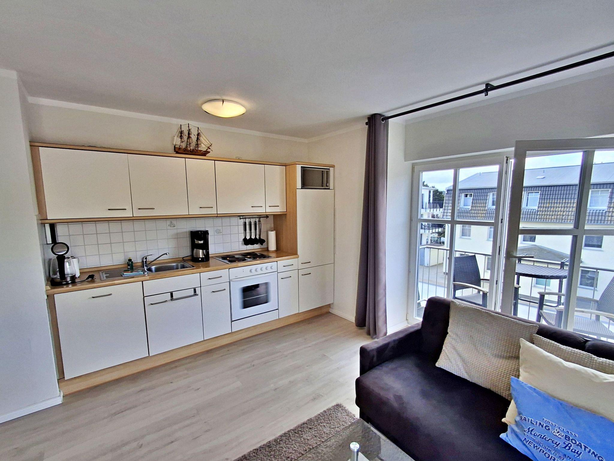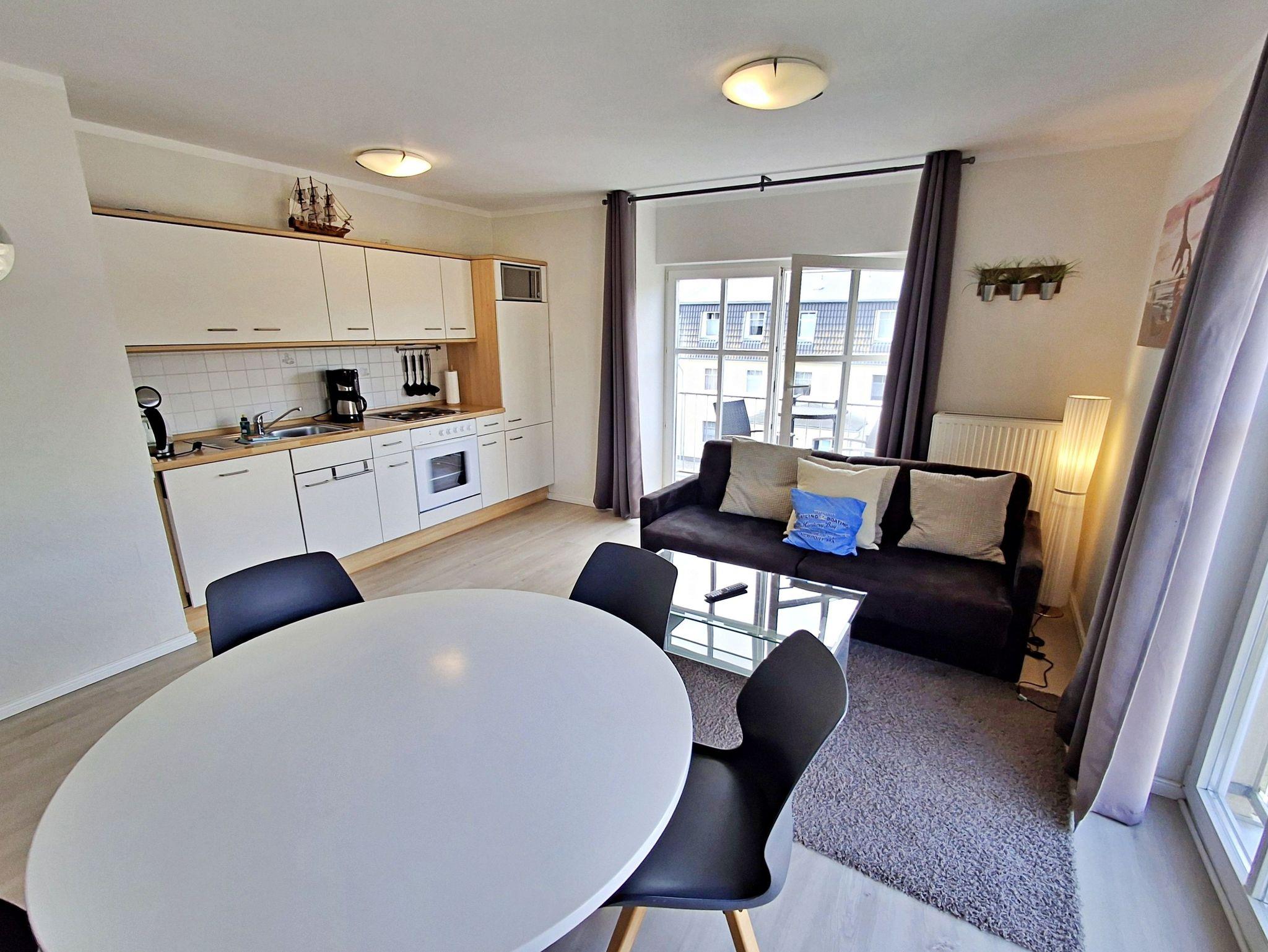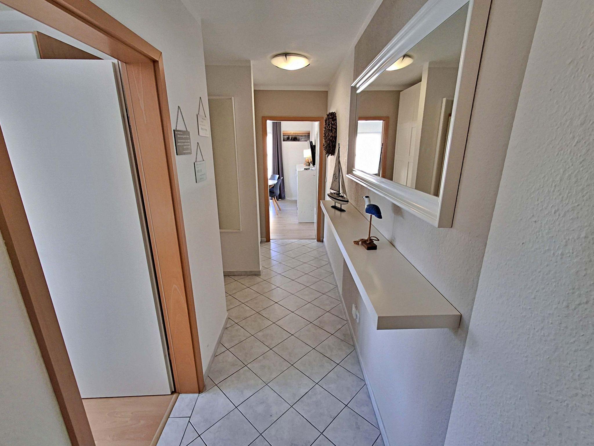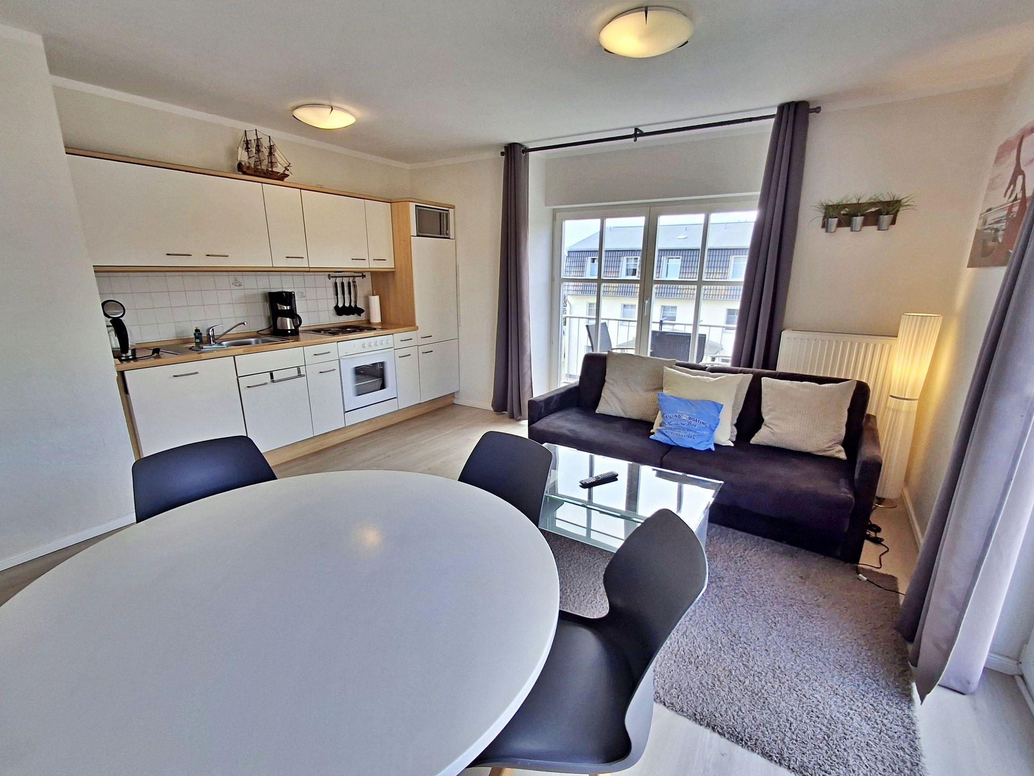 Herzlich willkommen in der hellen und freundlichen Ferienwohnung in der zweiten Etage des Feriendomizils Goethestraße! Auf 48 qm bietet diese schöne Wohnung Platz für bis zu 4 Personen, damit Sie einen erholsamen und entspannten Urlaub genießen können. Die stilvoll eingerichtete Wohnung verfügt über ein einladendes Wohn- und Esszimmer, das mit einer bequemen Couch ausgestattet ist, die auch Platz für 2 weitere Personen bietet. Hier finden Sie auch einen Flachbild-TV und einen Esstisch mit 4 Stühlen. In der vollwertigen Küche stehen Ihnen ein 4-Platten-Herd, Backofen, Spülmaschine, Wasserkocher und Kaffeemaschine zur Verfügung - alles, was Sie für die Zubereitung Ihrer Lieblingsgerichte benötigen! Das separate Schlafzimmer ist mit einem gemütlichen Doppelbett, einem großzügigen Kleiderschrank und einem zusätzlichen Flachbild-TV ausgestattet, sodass Sie sich auch hier wohlfühlen können. Das Tageslicht-Bad bietet Ihnen eine Dusche und WC für Ihren Komfort. Genießen Sie die frische Ostseeluft auf unserem kleinen Balkon, der mit zwei Sitzmöglichkeiten ausgestattet ist - perfekt, um sich zu jeder Tageszeit zu entspannen. Zudem stehen Ihnen W-LAN und ein Parkplatz direkt hinter dem Haus kostenfrei zur Verfügung.