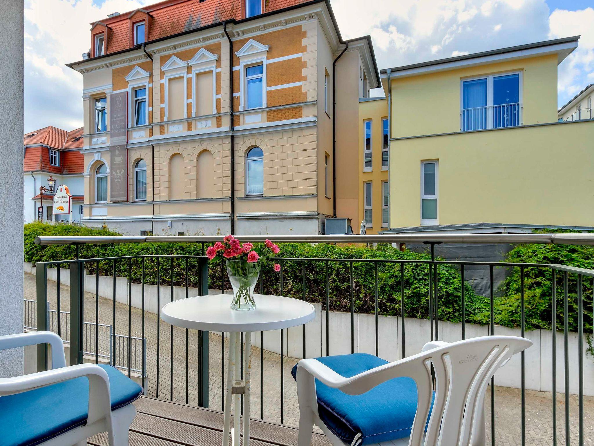 Schönes helles 2-Zimmer-Appartement mit guter Ausstattung. Separates Schlafzimmer (mit Fernseher), Wohnzimmer mit Küchenzeile und Essplatz, Duschbad, Balkon zur Südseite mit Sonne bis abends. Die Wohnung verfügt über einen Pkw-Stellplatz. Von der Villa Aquamarina aus können Sie das Ortszentrum und die bekannte Ahlbecker Seebrücke in ca. 3 Minuten zu Fuß erreichen. Zum Strand sind es 50 m. Die Wohnungen der Villa Aquamarina verfügen alle über passwortgeschütztes WLAN (gerätegebunden, Euro 1,50 pro Tag und pro Gerät).