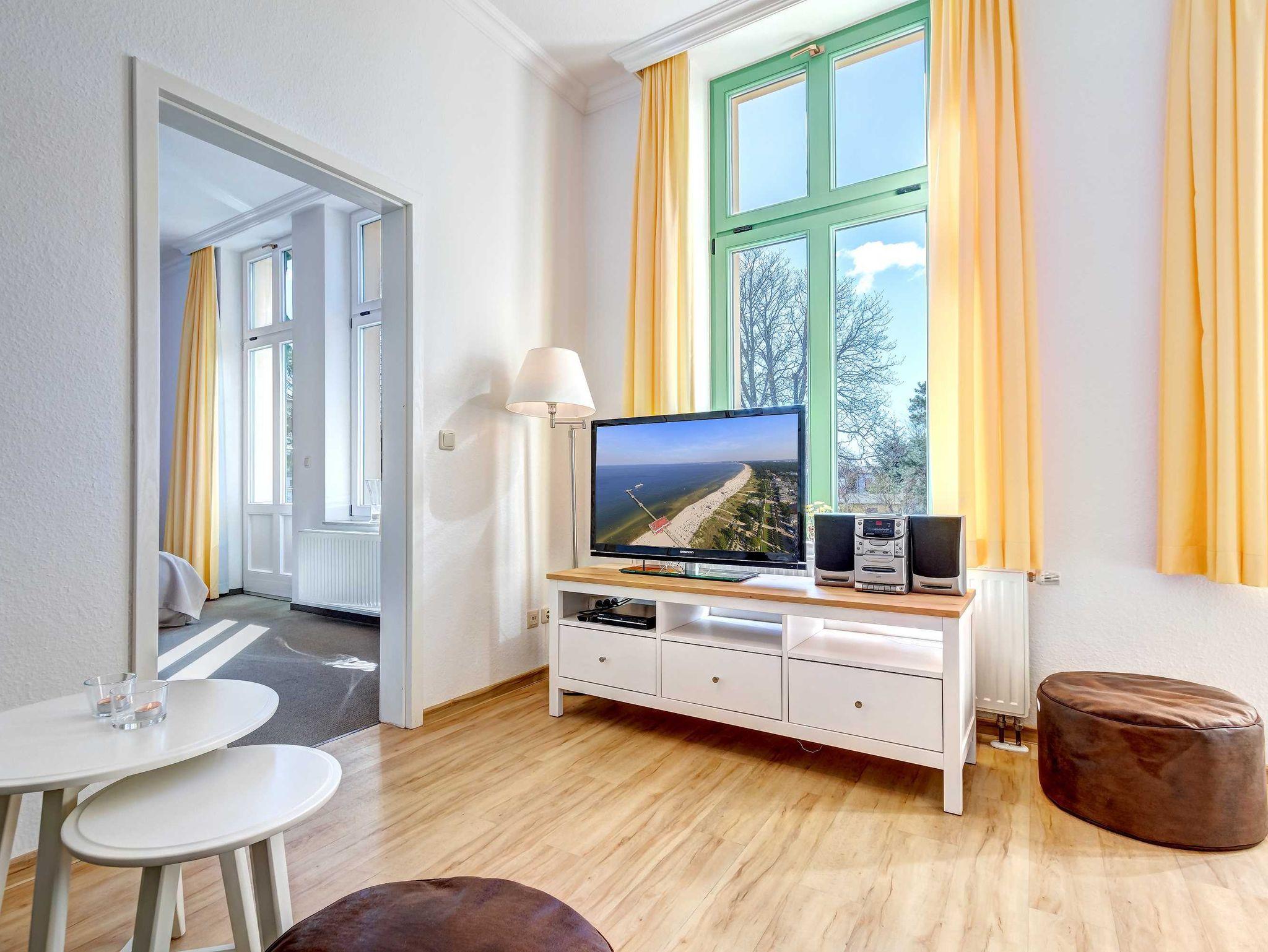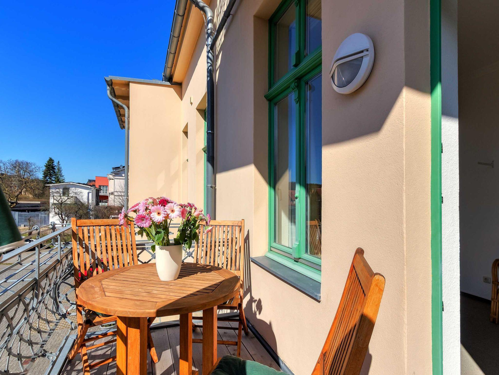 STRANDNAH mit SÜDBALKON! Nur ca. 100 m zur Strandpromenade! Schönes 2-Zimmer-Apartment mit gemütlicher und guter Ausstattung. Separates Schlafzimmer, Wohnzimmer mit Küchenzeile und Essplatz, Duschbad, Südbalkon. Die Wohnung verfügt über einen Pkw-Stellplatz . Abstellraum für Fahrräder und ähnliches ist vorhanden. Eine Sauna in der Villa Germania kann kostenpflichtig genutzt werden. Vom Haus aus können Sie das Ortszentrum und die bekannte Ahlbecker Seebrücke in ca. 3 bzw. 5 Minuten zu Fuß erreichen.
