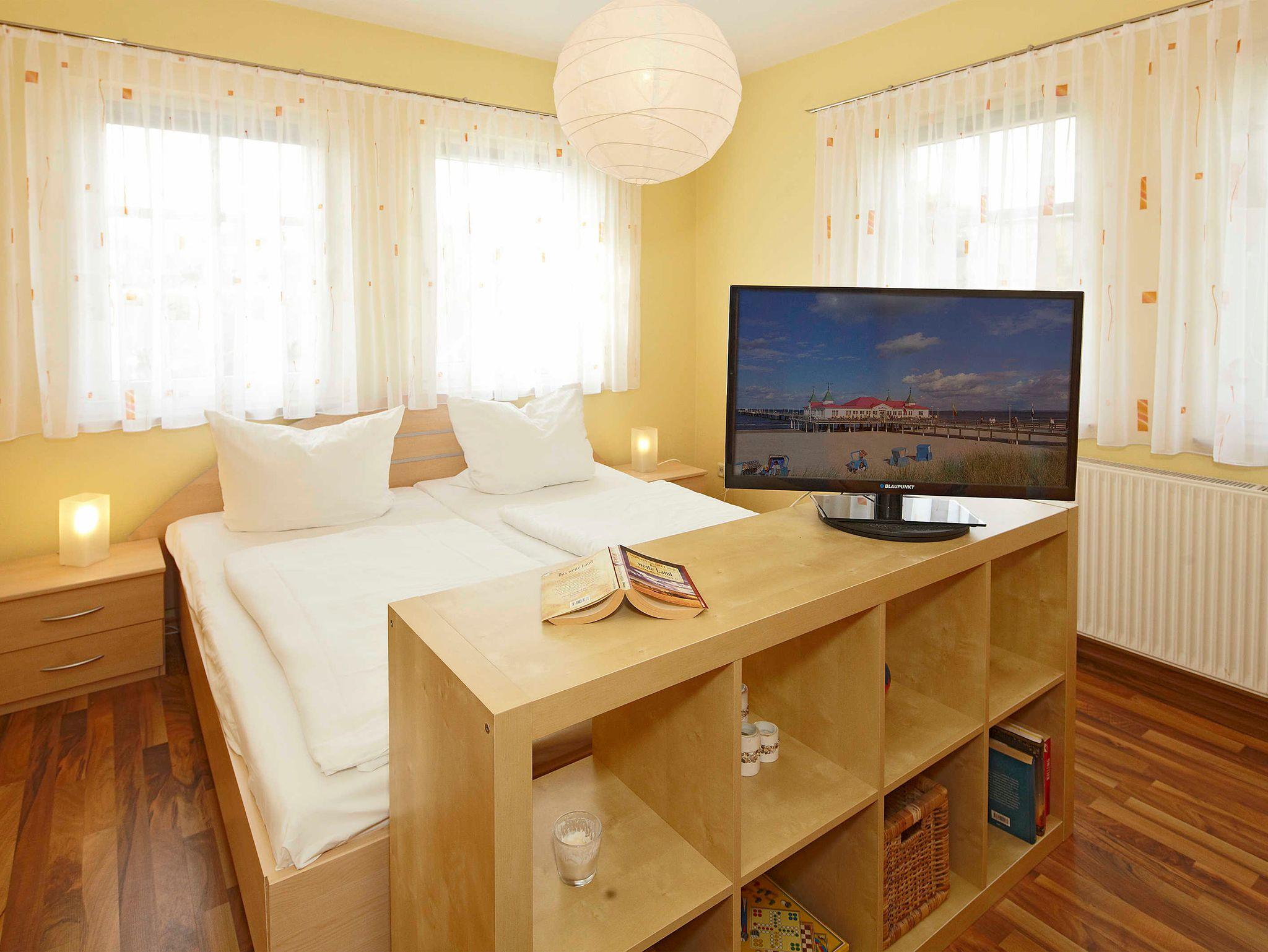 Der großzügige Garten bietet eine Grillecke sowie Sitz- und Sonnenmöglichkeiten und kann von allen Feriengästen genutzt werden. Ein Auto-Stellplatz für jede Wohnung auf dem Grundstück ist im Preis inbegriffen. Fahrräder können im abschließbaren Schuppen untergestellt werden. Handtuchpakete, Kinderreisebetten, und Hochstühle können kostenpflichtig ausgeliehen werden. Die in den Kaiserbädern fällige Kurtaxe ist bar vor Ort bei Anreise zu zahlen.