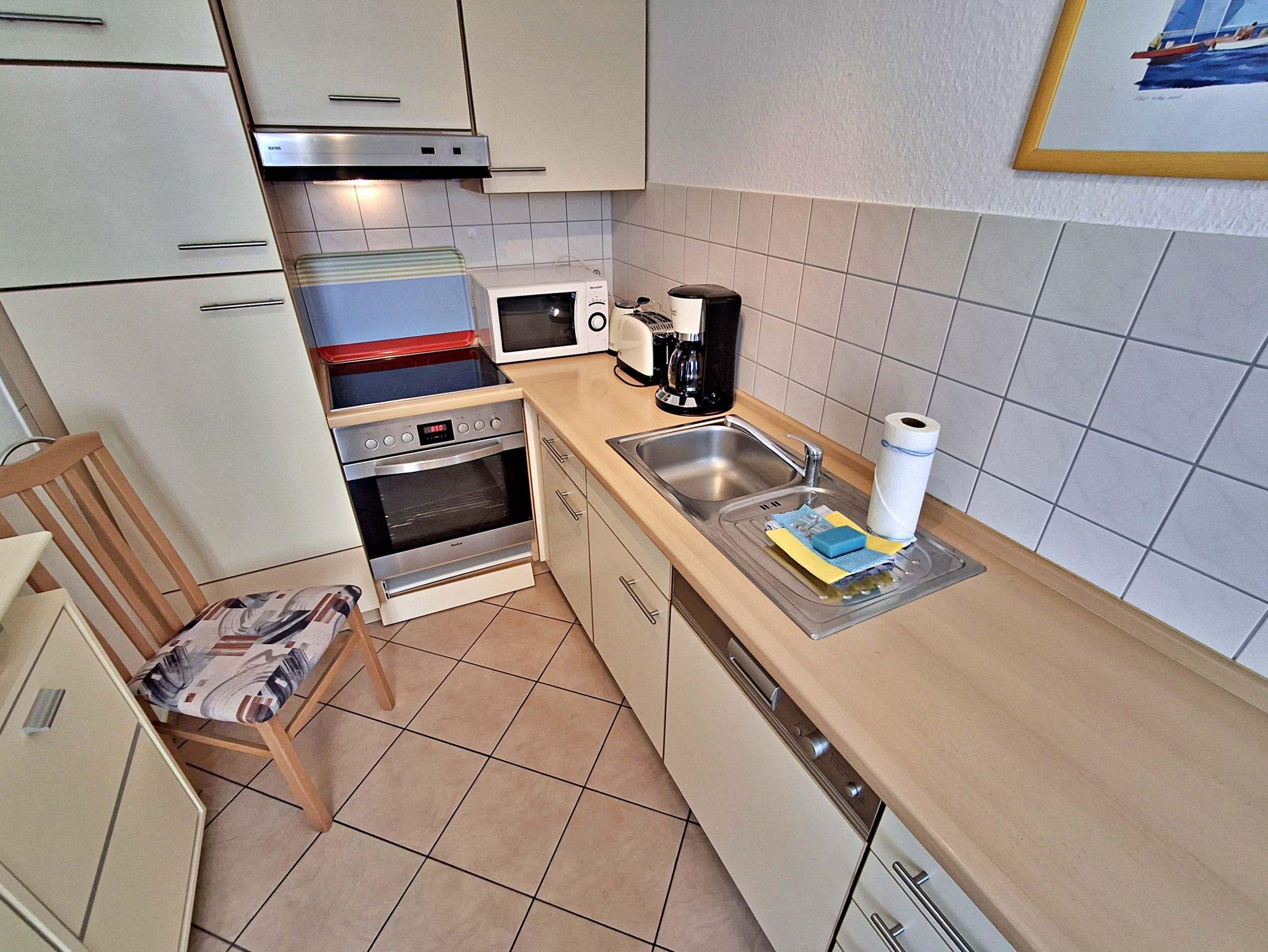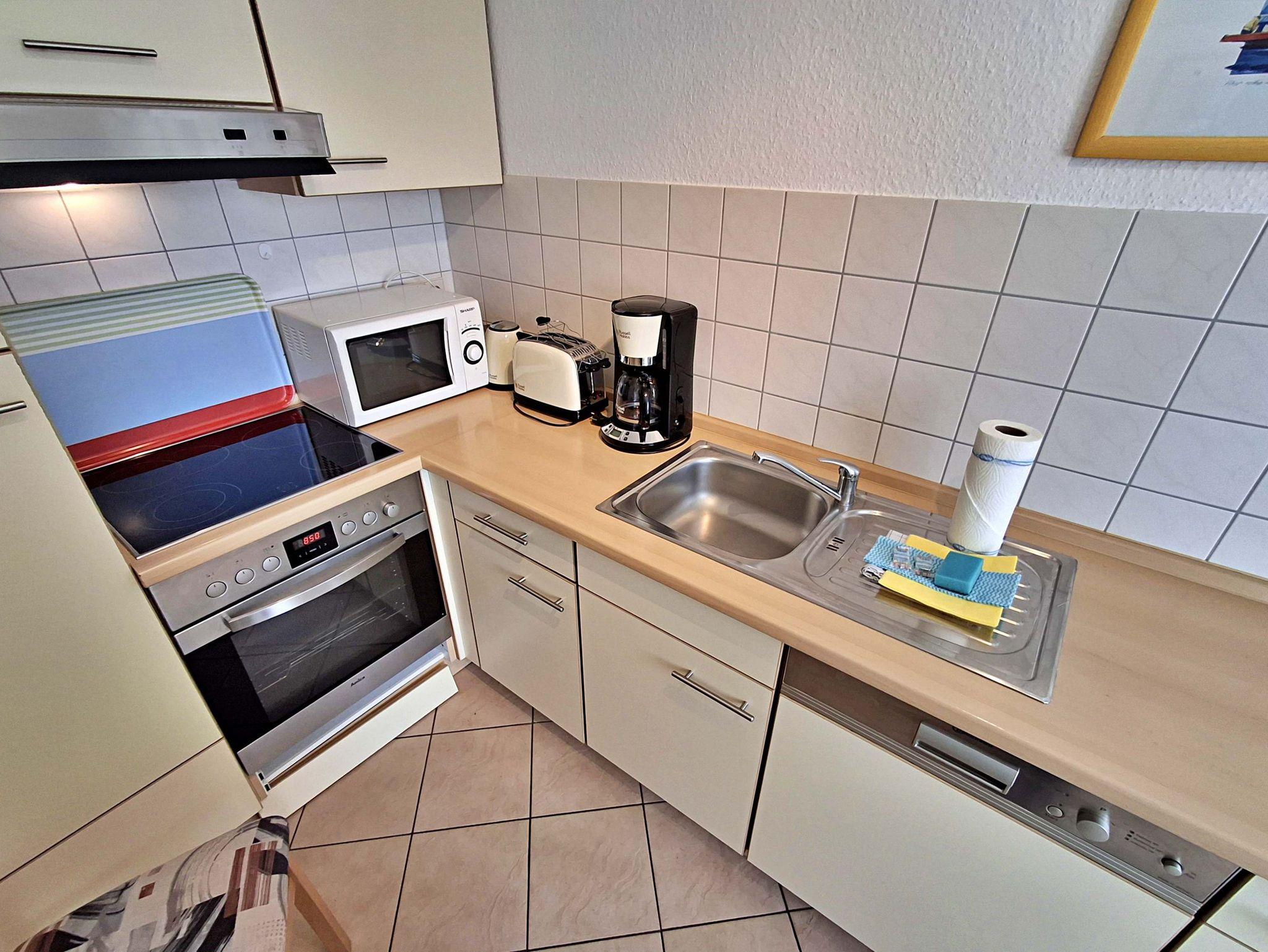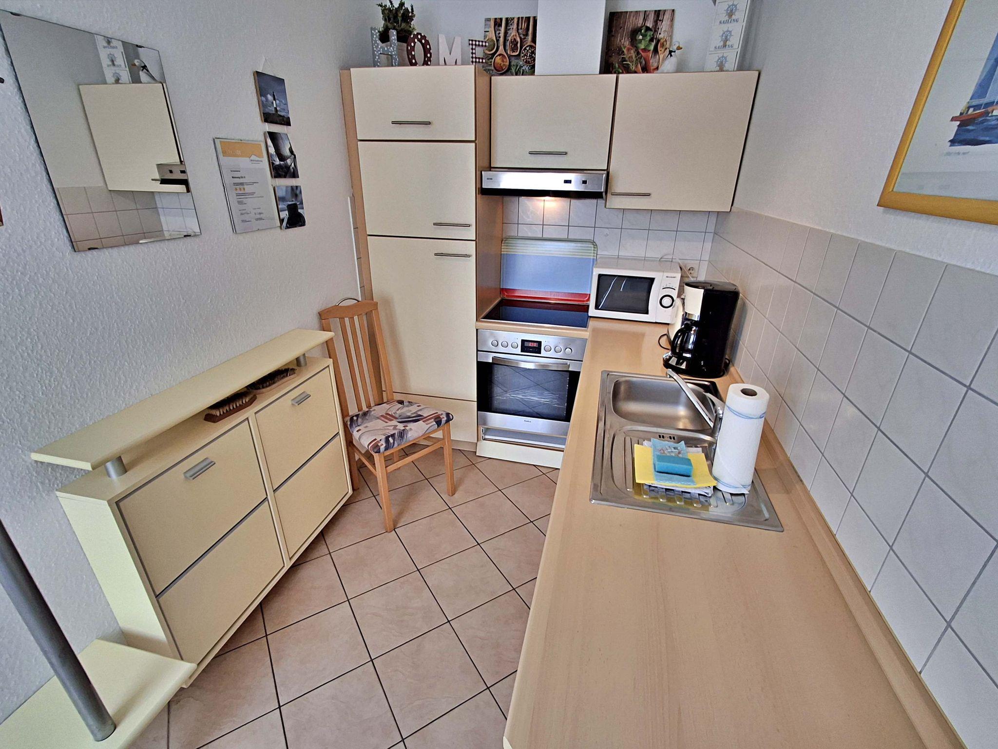 Auf 49 qm im Erdgeschoss bietet Ihnen diese charmante und freundliche Ferienwohnung eine helle und gemütliche Atmosphäre, die zum Entspannen einlädt. Das geräumige Wohnzimmer ist der perfekte Ort, um sich zu entspannen. Hier finden Sie eine bequeme Couch, Flachbild-TV, Radio und CD-Player sowie eine einladende Essecke. In der separaten Küche können Sie Ihre Kochkünste entfalten. Sie ist mit einem Elektro-Herd, Backofen, Spülmaschine, Mikrowelle, Kühlschrank, Kaffeemaschine, Wasserkocher, Toaster und vielen weiteren Annehmlichkeiten ausgestattet. Das Schlafzimmer verfügt über ein komfortables Doppelbett und einen TV, sodass Sie sich nach einem erlebnisreichen Tag zurückziehen können. Direkt nebenan steht Ihnen ein separates Zimmer mit einem Kleiderschrank zur Verfügung, ideal für Ihre Kleidung und Ihr Gepäck. Das Badezimmer ist mit einer Badewanne ausgestattet, die auch eine Duschfunktion bietet, sowie einem WC.