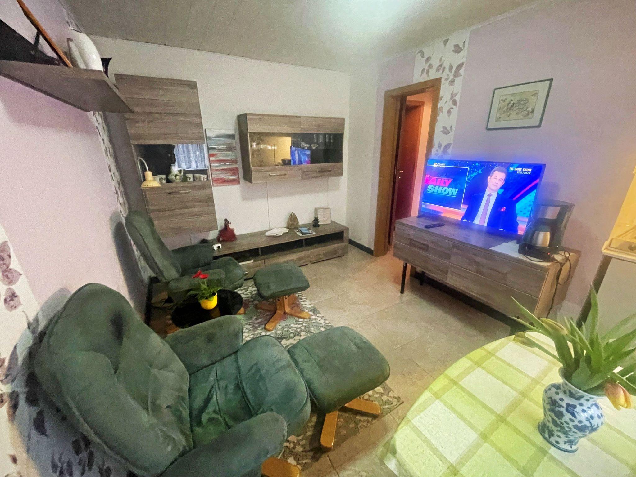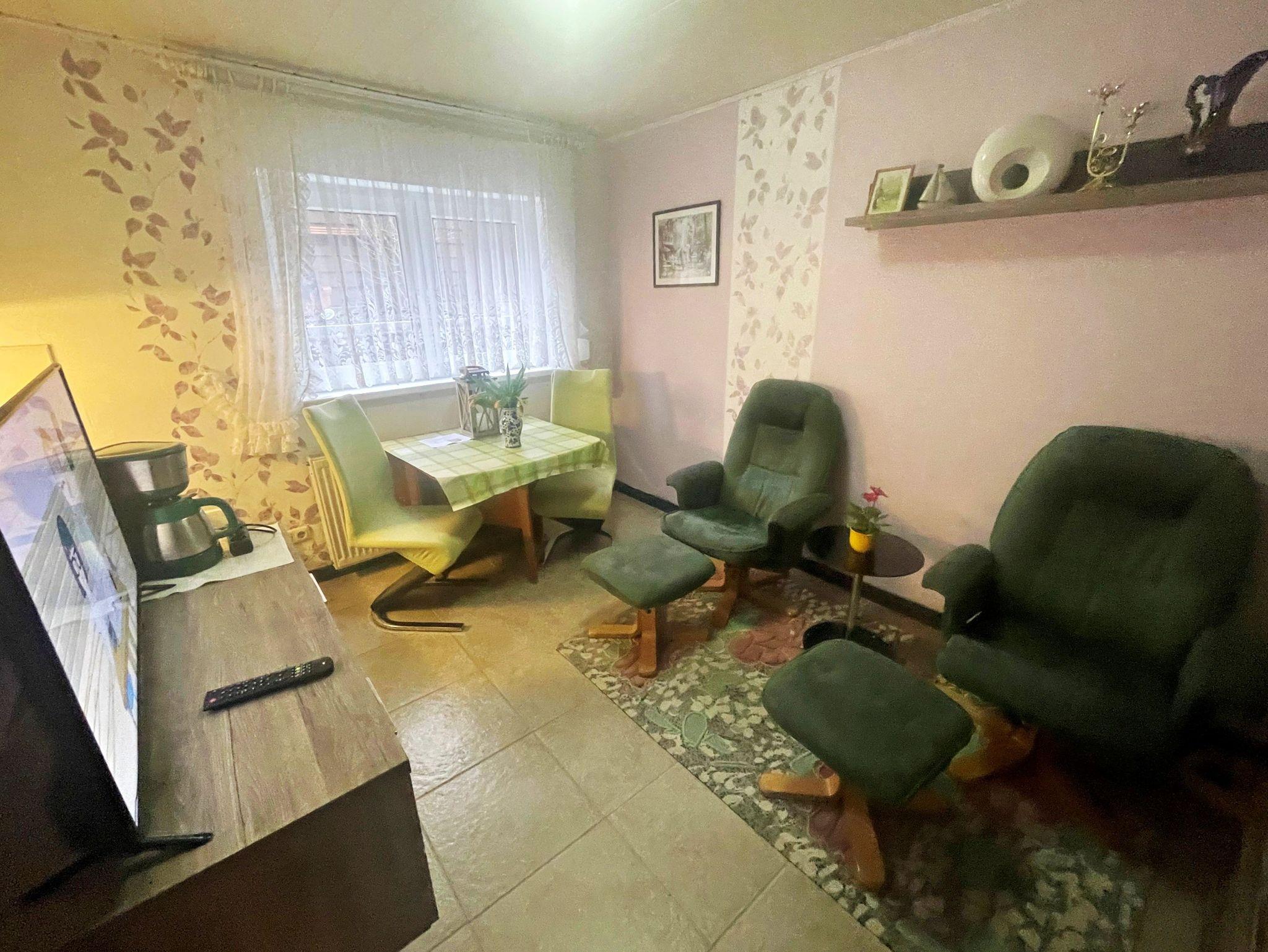Die kleine gemütlich eingerichtete Ferienwohnung im Souterrain des Wohnhaus des Vermieters verfügt über einen separaten Eingang. Die Ferienwohnung teilt sich auf in kleines Wohnzimmer mit zwei Sesseln, Wohnwand, TV. Das Schlafzimmer verfügt über ein Doppelbett und einen Kleiderschrank. Die kleine Küche ist im Wohnzimmer integriert und verfügt über einen 2-Platten-Herd, Kühlschrank und Spüle. Das Badezimmer ist ausgestattet mit einer Dusche und WC. Die Erstausstattung Bettwäsche und Handtücher, Endreinigung sowie der Parkplatz sind im Preis inklusive.