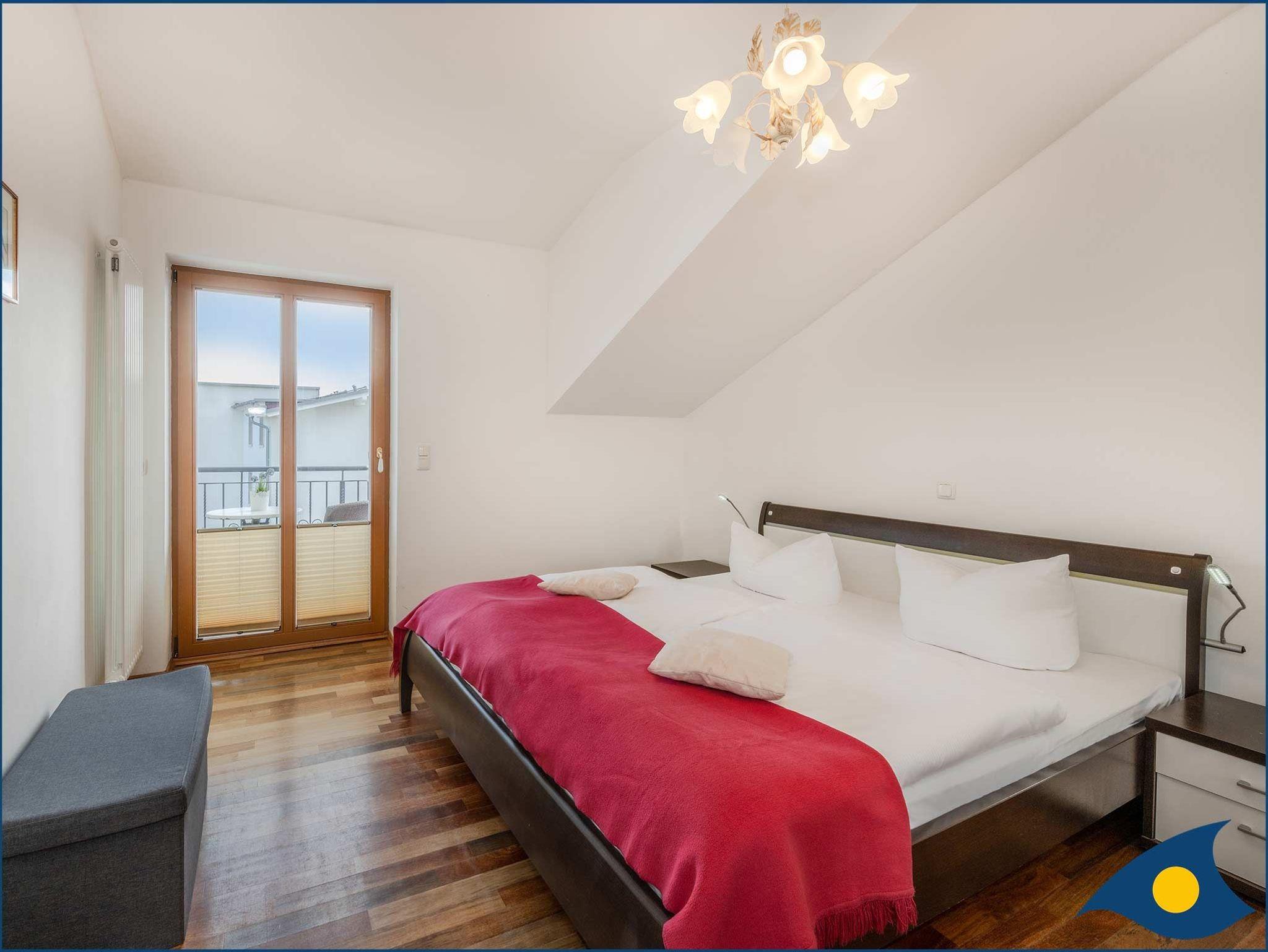 Erholsame Nächte können Sie im separaten Schlafzimmer mit Doppelbett und Südbalkon genießen.