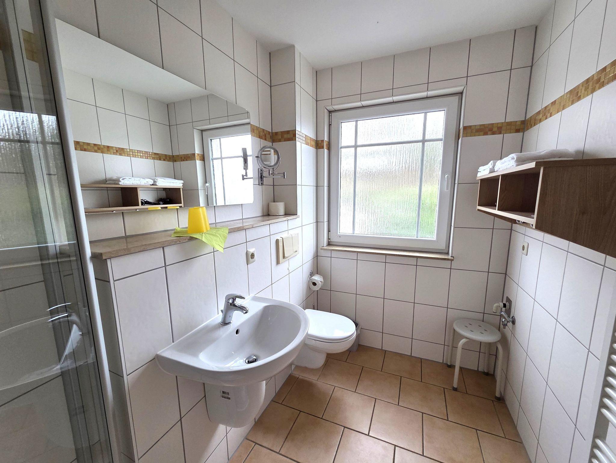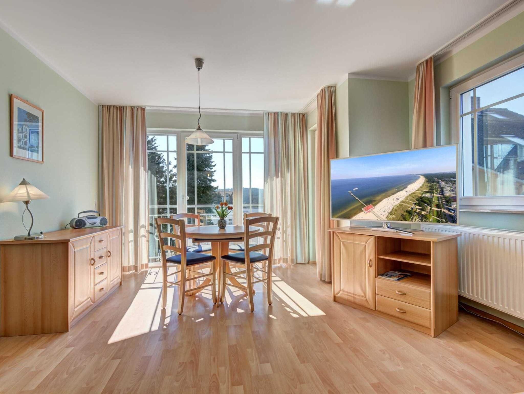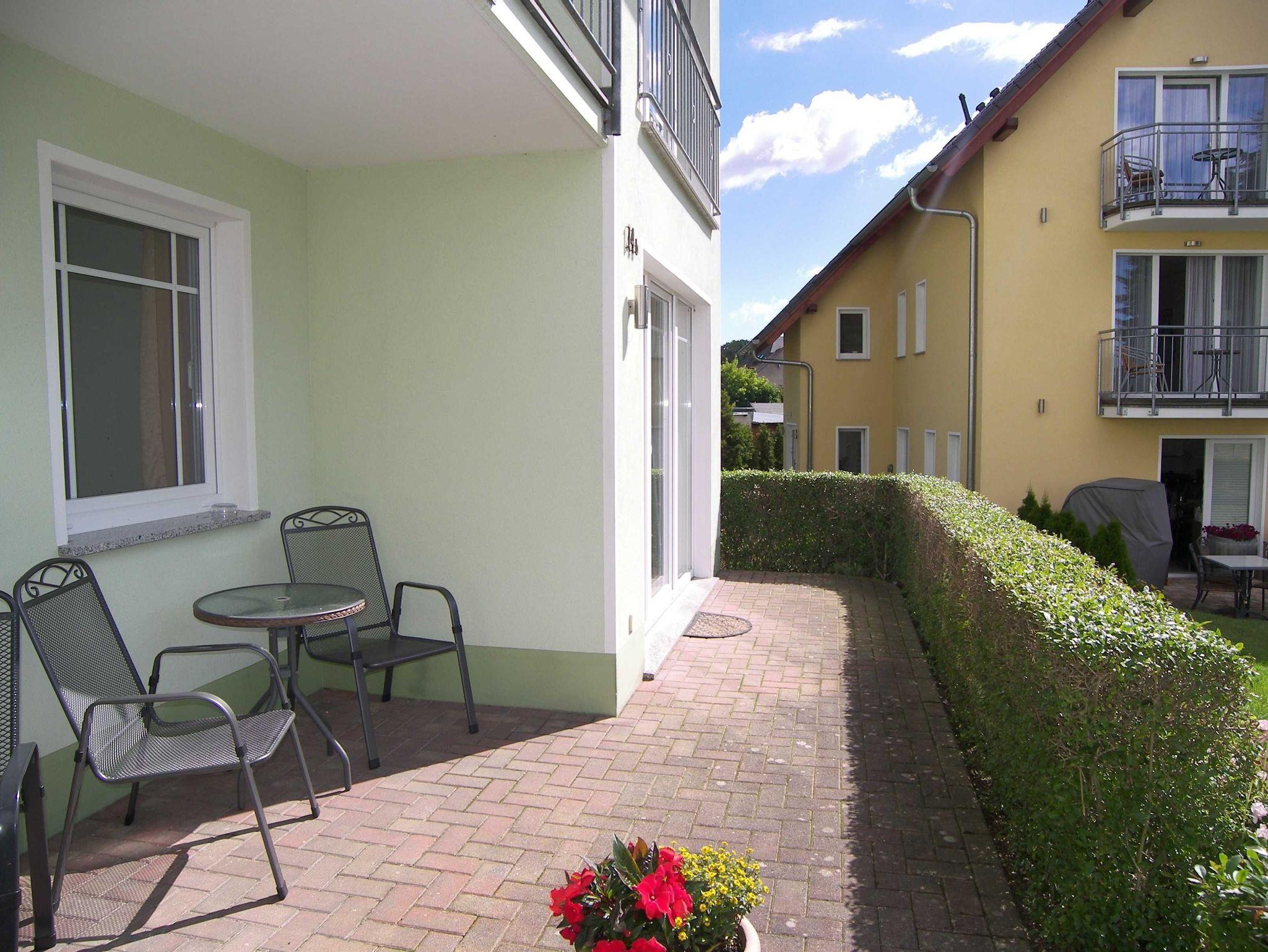 Moderne 2-Raum NICHTRAUCHER-Ferienwohnung ist ca. 52 qm und befindet sich im Erdgeschoss eines Appartementhauses. Die Wohnung verfügt über einen Schlafraum mit Doppelbett, Kleiderschrank und 2 Stühlen, einen kombinierten Wohn-u. Schlafraum mit einer Schlafcouch (1,60 x 2,00 m), Flachbild-TV, Radio mit CD-Player, Couchtisch & ein Sessel, Esstisch + 4 Stühle, sowie einer Terrasse zur Südseite (morgens bis nachmittags Sonne). Die separate Küche ist ausgestattet mit einem Geschirrspüler, 4-Platten-Ceranherd, Backofen, Kühl-/Gefrierkombination, Kaffeemaschine, Toaster, Wasserkocher, Mikrowelle und Geschirr. Das Badezimmer verfügt über DU/WC sowie eine Fußbodenheizung und einen beleuchteten Kosmetikspiegel. Die gesamte Wohnung ist mit Fliesen und Laminat ausgestattet. Die Erstausstattung Bettwäsche und Handtücher ist inklusive. Auf Anfrage kann eine weitere Person auf dem Schlafsofa für 15 Euro pro Übernachtung zugebucht werden.