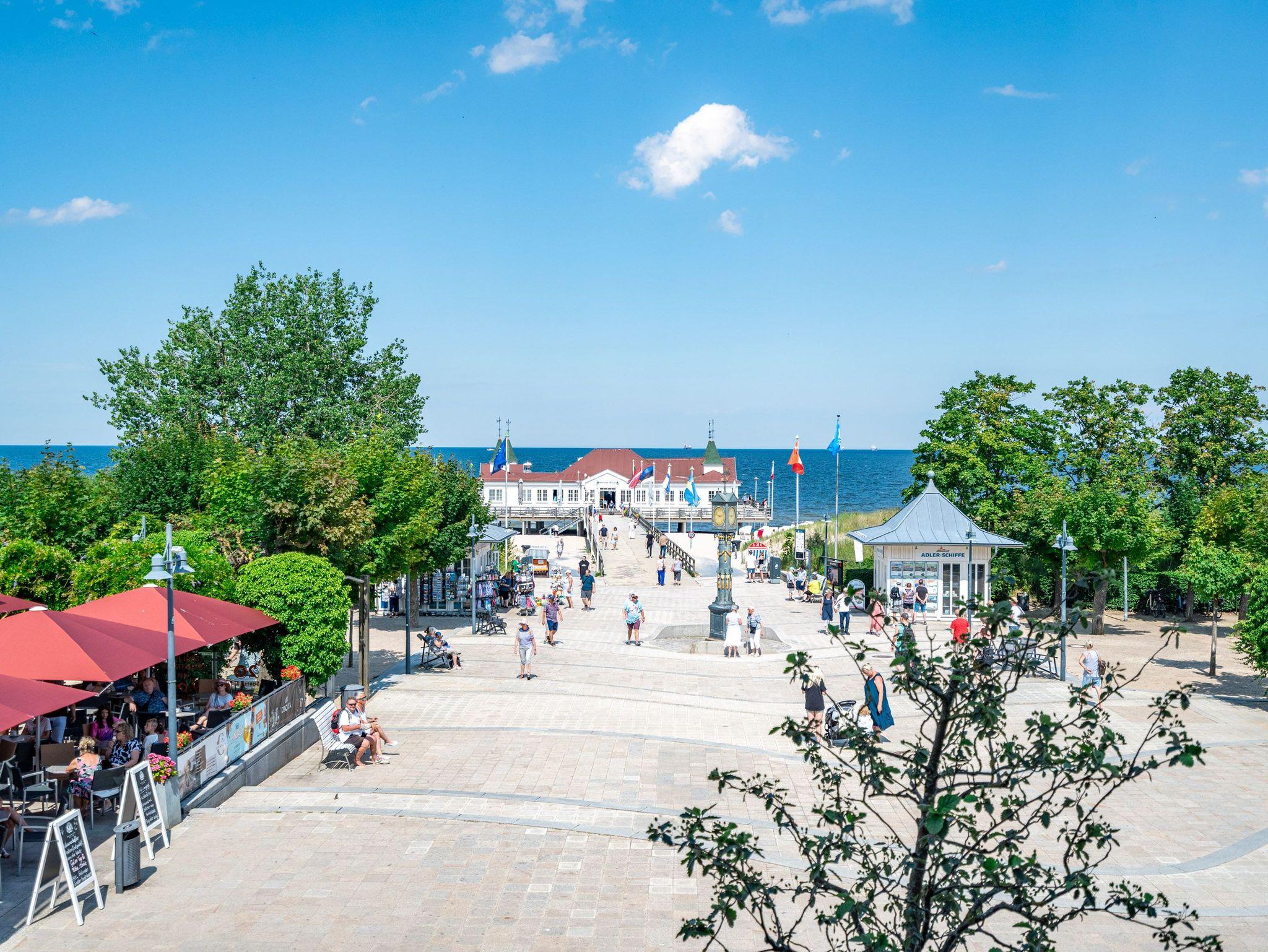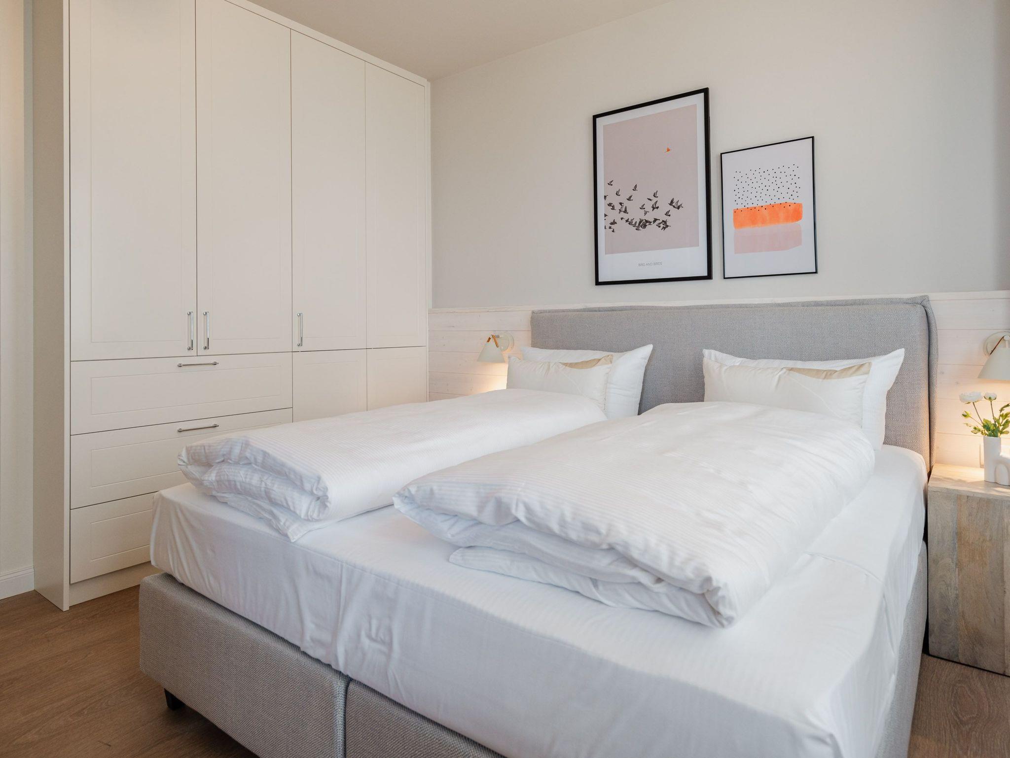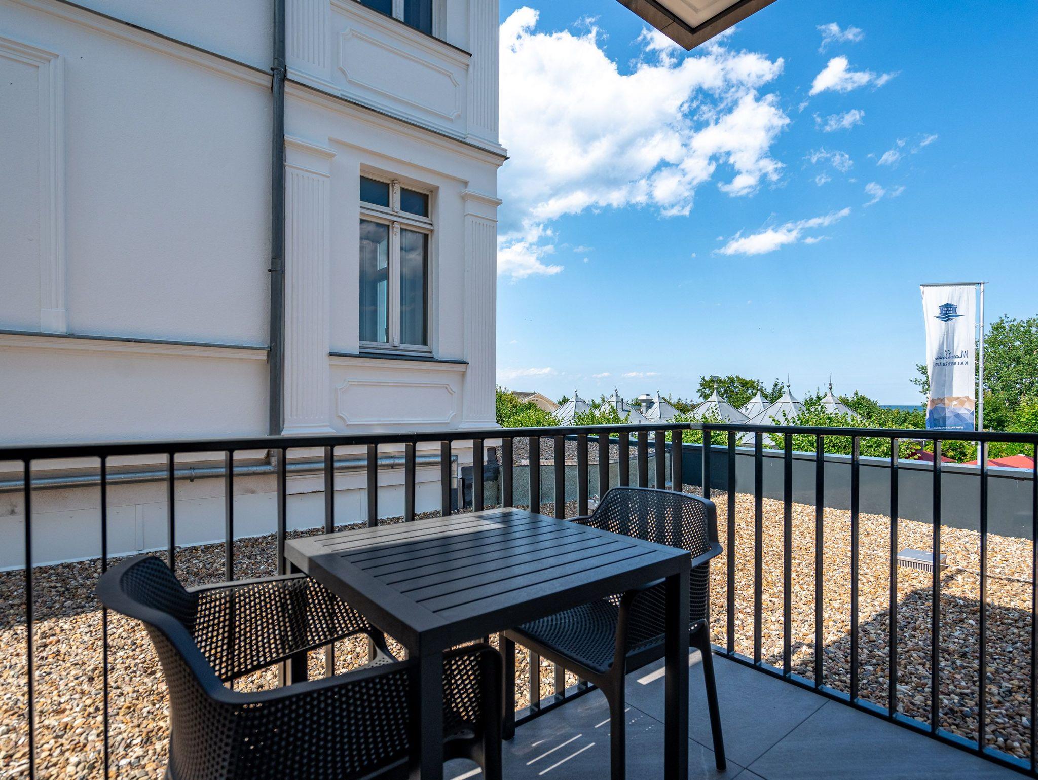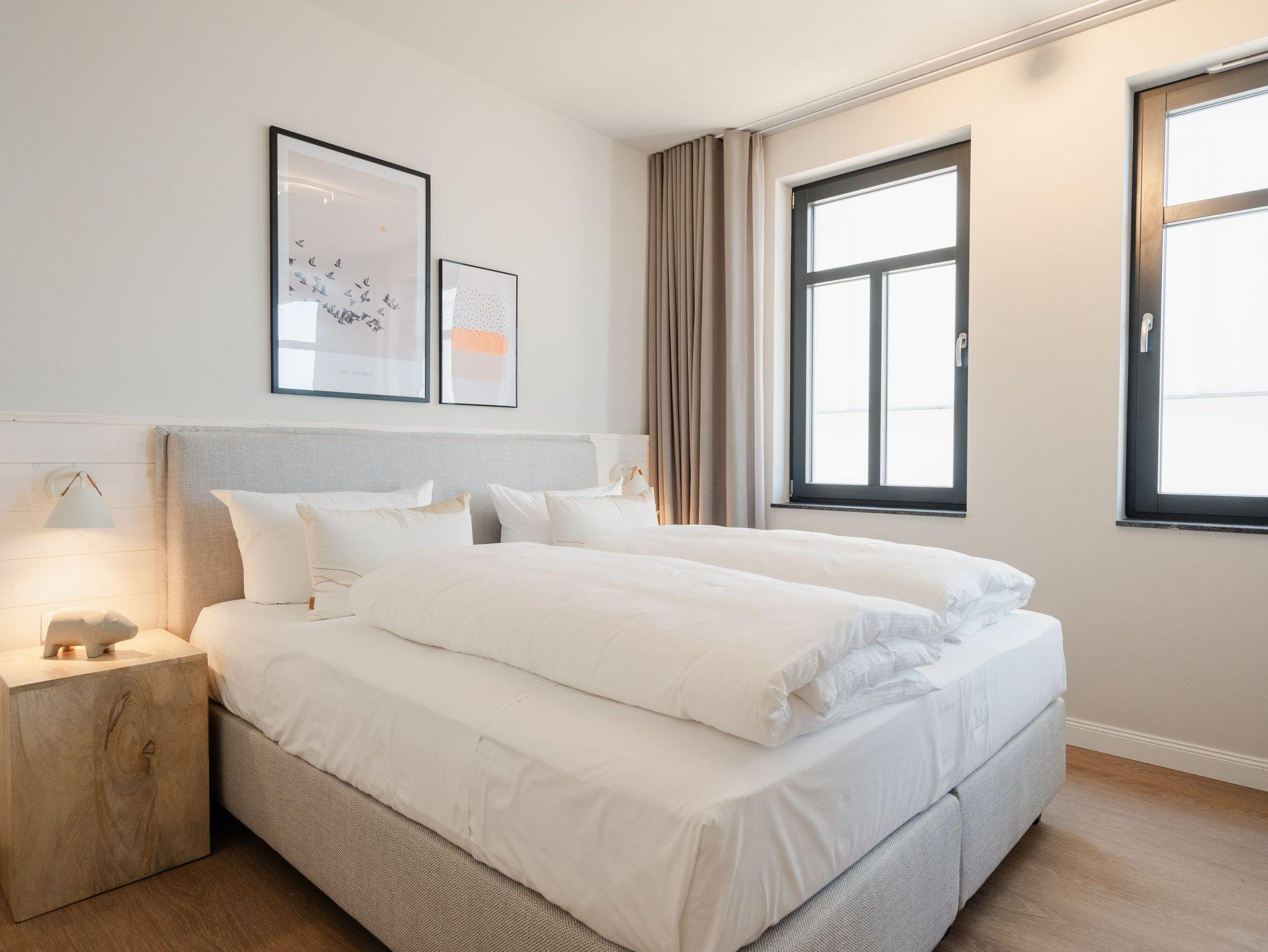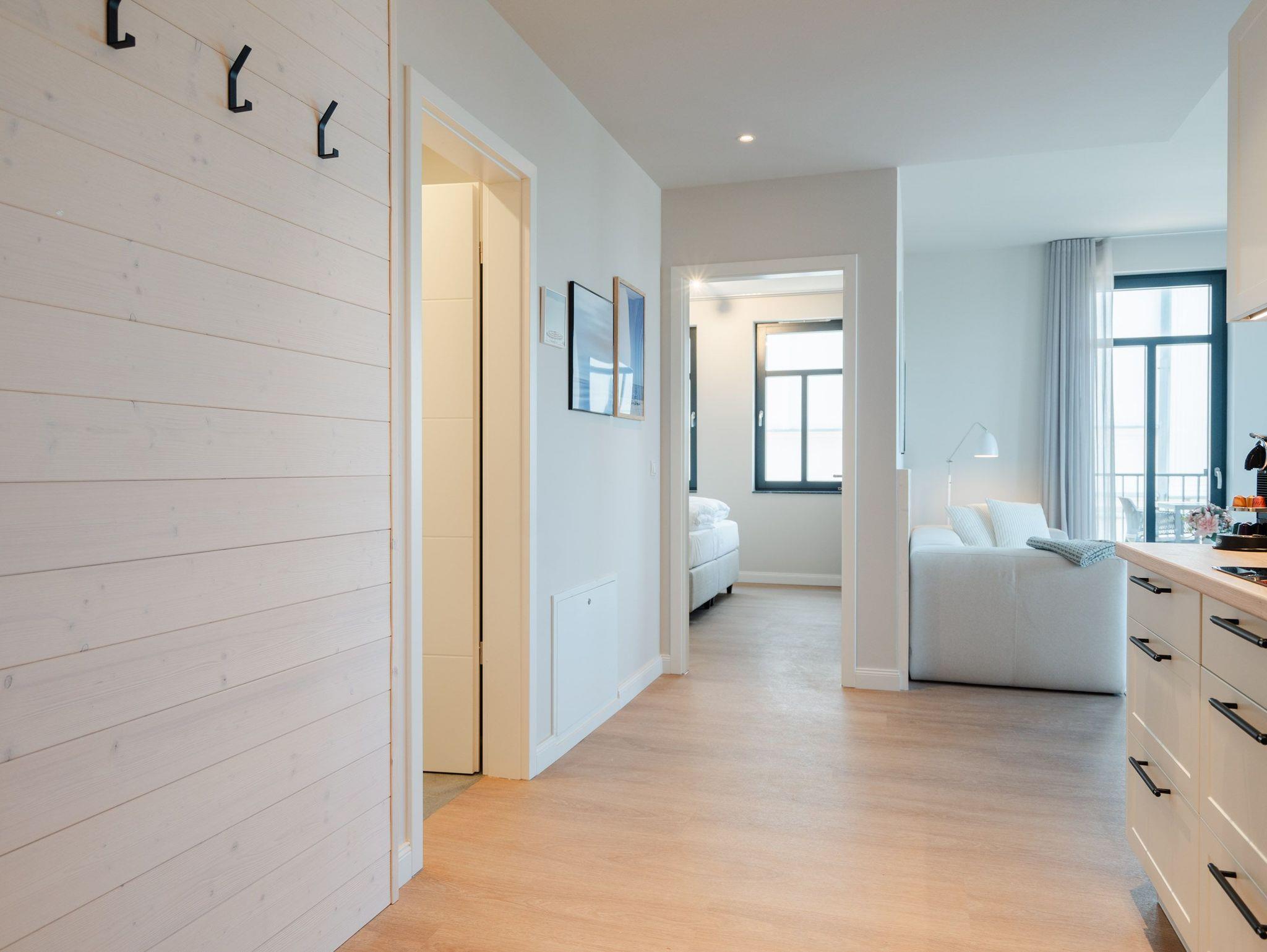 Modern, offen, lichtdurchflutet ? dieses 57 Quadratmeter große 2-Raum-Appartement im 1. Obergeschoss macht aus Ihrem Urlaub eine exklusive Ostsee-Auszeit. Das stylishe Domizil mit Blick auf die Ahlbecker Promenade ist für 2 Personen eine ideale Unterkunft zum Meeresluft schnuppern und neue Energie tanken. Und immer im Blick die blaue Weite der Ostsee. Schicken Sie Ihre Gedanken auf Reisen bis an den Horizont und kommen Sie runter in diesem gemütlichen Domizil, in dem alles stimmig und behaglich ist. Zwei Balkone (mit Ausrichtung Nord und Nord-West) geben eine Weitsicht über die Ostsee, dass Sie aus dem Schwärmen gar nicht wieder rauskommen. Allein dieser Anblick legt sich beruhigend auf jedes stressgeplagte Gemüt. Der großzügige Wohn- und Essbereich der Unterkunft ist zu Seeseite hin ausgerichtet. Sie haben also das Meer sowohl vom gemütlichen Sofa aus als auch vom Esstisch aus immer im Blick. Ein 43-Zoll-Flachbildfernseher sorgt für das Home-Entertainment. Die offene Küchenzeile ist mit hochwertigen Siemens-Elektrogeräten ausgestattet. Der Genuss mit allen Sinnen steht in diesem Appartement im Vordergrund. Da fügen sich die hellen Sandfarben und das helle Holz der Einrichtung wunderbar ins Gesamtbild ein. Etwas, was man sich vor allem im Urlaub sehnlichst wünscht, ist ein erholsamer Schlaf. In dem bequemen Boxspringdoppelbett (1,80 m x 2,00 m) im Schlafzimmer wird dieser Traum Realität. Hier finden Sie auch einen großen Kleiderschrank und einem zusätzlichen 43-Zoll-Flachbildfernseher. Das innenliegende Bad ist mit einer Dusche, einem WC, einem Waschtisch und einer Infrarotsauna ausgestattet, die Ihnen nach einem Tag voller Aktivitäten am Strand oder in der Umgebung wohlige Entspannung bietet. Den zum Appartement gehörenden PKW-Stellplatz in der Tiefgarage können Sie bequem über den Fahrstuhl erreichen. Kommen Sie also einfach nur an und lassen alles los, was Energie raubt. Wir freuen uns darauf, Sie bald bei uns begrüßen zu dürfen!
