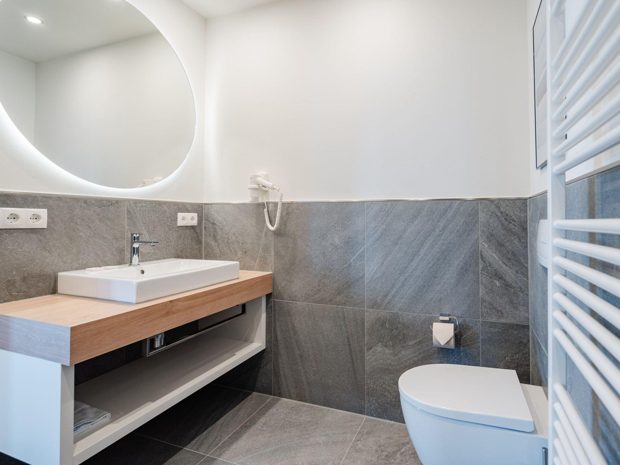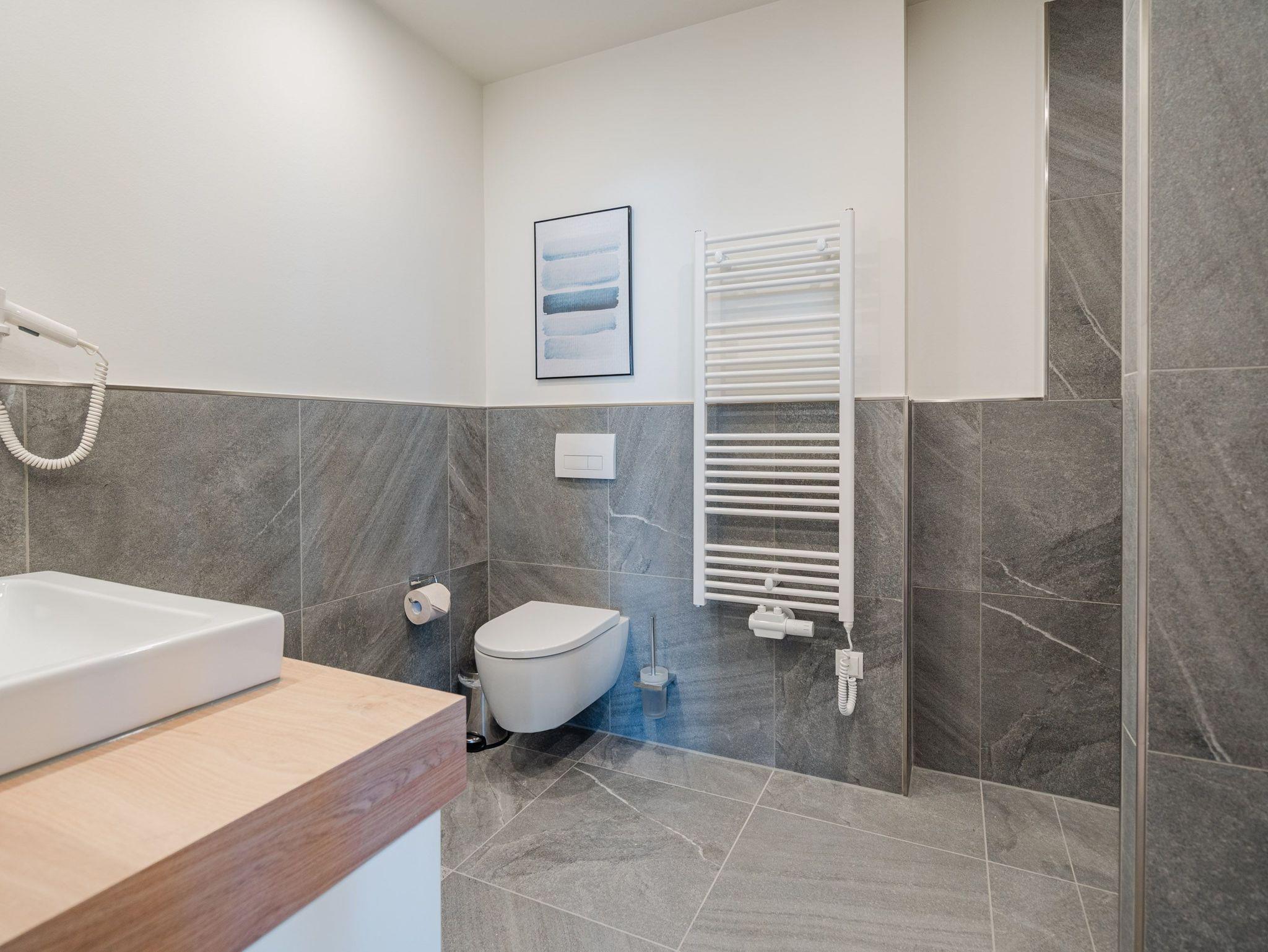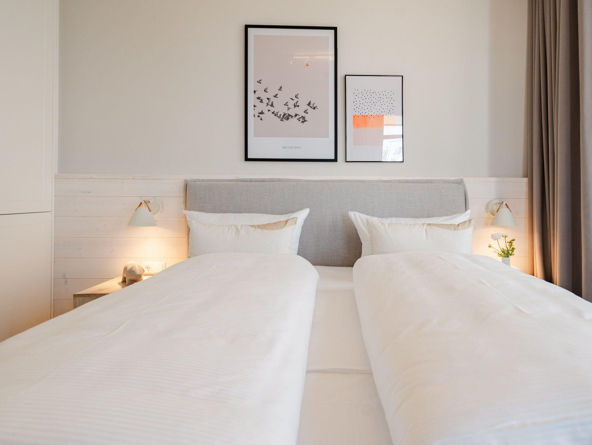 Die 2024 fertig gestellte Strandterrasse liegt direkt an der belebten Strandpromenade und bietet einen einzigartigen Ausblick auf die Grand Dame der historischen Seebrücken sowie die historische Konzertmuschel, einem beliebten Treffpunkt für Kunst und Kultur. Dahinter liegt die Ostsee ? ein Panorama, das zu den schönsten in den Kaiserbädern gehört. Es ist wie das Abtauchen in eine andere Zeit. In eine Zeit, in der man mit Stock, Sonnenschirm und Hut fürs „Sehen und gesehen werden“ über die Promenade schlenderte; aber auch in eine Zeit, in der ? damals wie heute ? Zeit einmal für eine kurze Weile keine Rolle spielt. Weil man angekommen ist im Loslassen, Entspannen und Genießen. Es ist dieser besondere Geruch nach Meeresluft und Freiheit, der in Erinnerung bleibt. Dazu die Bilder, die man mitnimmt. Von langen Strandspaziergängen, vom Lachen in fröhlich schäumenden Ostseewellen, von der Zeit in einem wunderschönen Urlaubsdomizil. Denn genau das ist die Strandterrasse mit ihren 56 modernen und exklusiven Ferienappartements direkt gegenüber der Ahlbecker Seebrücke. Die Ein-, Zwei- oder Dreizimmerwohnungen ? zwischen 40 und 70 Quadratmeter groß ? sind von einer Innenarchitektin gemeinsam mit unserem Erfahrungsschatz an Gästewünschen mit viel Liebe zum Detail und ganz individuell konzipiert worden. Entspannung und Wohlfühlen stehen an erster Stelle. Alles ist aufeinander abgestimmt und sorgt für eine gemütliche Atmosphäre. Wählen Sie zwischen einem Domizil in einem hellen, sandfarbenen Designkonzept oder einem Appartement mit anthrazitfarbenen Farbakzenten. Alle Appartements verfügen gleichermaßen über eine stilvolle und komfortable Einrichtung, die passgenau angefertigt worden ist, sowie über moderne Küchen und Bäder. Jedem Schlafzimmer ist ein eigenes Bad mit Dusche zugeordnet (außer App. B4.5). Die Appartements besitzen fast alle einen Balkon ? viele schauen sogar zur Ostsee hinaus. Die meisten Feriendomizile haben einen Elektrokamin und Infrarotsaunen. Im Erdgeschoss befindet sich ein separater Gemeinschaftsraum für Fahrräder. Außerdem besteht die Möglichkeit, im Gemeinschaftswaschraum 2 Waschmaschinen [&] Trockner zu nutzen. Ergänzt wird das Angebot durch eine Gemeinschaftssauna, die täglich von 11:00 bis 22:00 Uhr nutzbar ist. In der Tiefgarage (Einfahrtshöhe 2,03 Meter) steht für jede Wohnung 1 Pkw-Stellplatz zur Verfügung. Ist alles zur Zufriedenheit untergebracht? Dann kann der Urlaub ja beginnen. Und beim Blick vom Balkon über die Ostsee treffen sich zum Sonnenaufgang das Heute und das Damals. Gelassenheit legt sich beim Gang hinunter an den Strand auf die Seele. Jetzt darf die Zeit stehenbleiben.