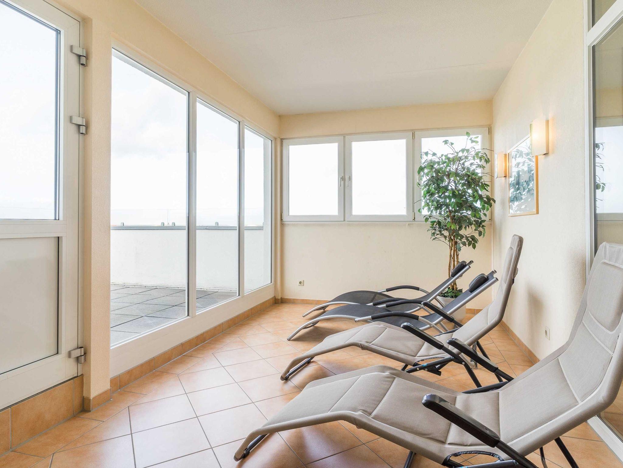 Ein besonderes Extra ist der Saunabereich mit Dachterrasse und Ruheraum im Obergeschoss des Hauses. Hier entspannen Sie beim Saunieren mit herrlichem Blick auf die Ostsee.