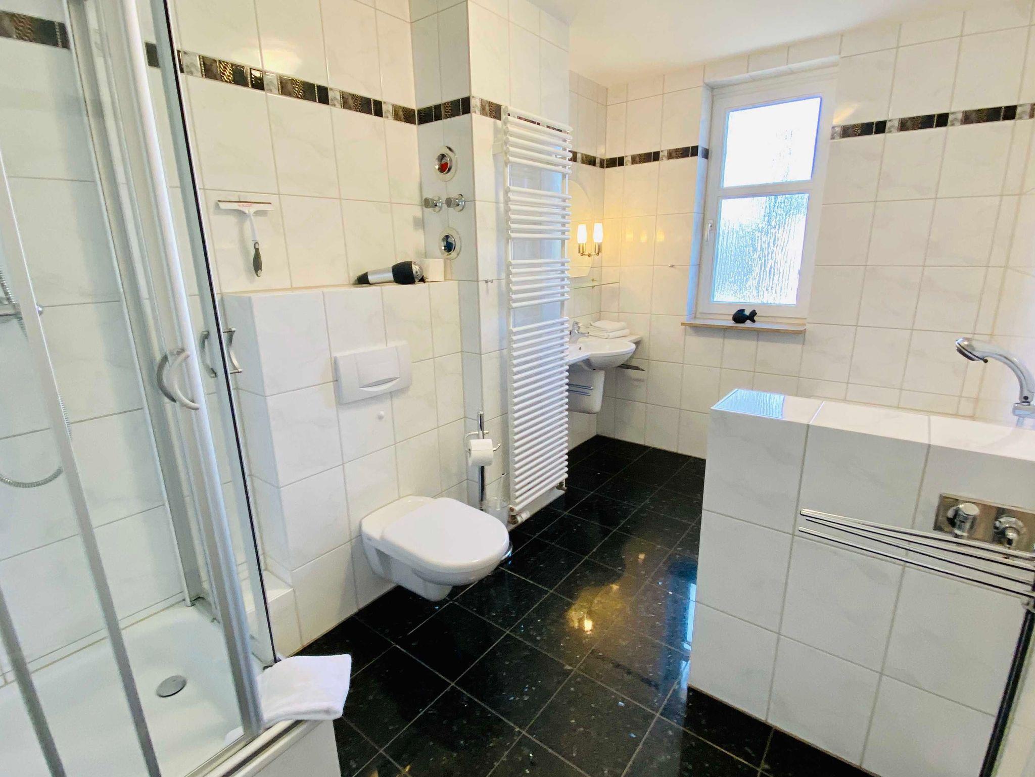 Die schöne 3 Raum-Ferienwohnung Lido mit ca. 82m² und Seeblick liegt im 1. Obergeschoss.Das schöne Wohnzimmer liegt Richtung Meerseite.In der Ferienwohnung Lido gibt es ein Schlafzimmer mit Boxspringbett und Balkonzugang (Süd) und ein Schlafzimmer mit 2 Einzelbetten. Es gibt eine separate Komplettküche mit Esstisch. Zur Wohnung gehört ein Badezimmer mit Dusche, Badewanne und eine eigene Waschmaschine. Ebenfalls verfügt sie über ein separates Gäste-WC. Zur Ferienwohnung gehört einen Stellplatz am Haus und Gäste können das W-Lan kostenfrei nutzen.