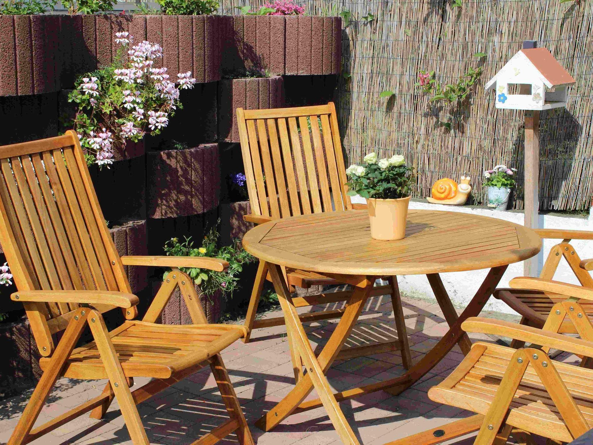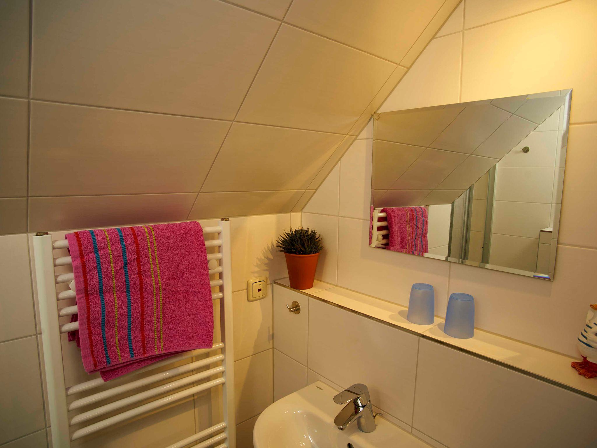 Die Ferienwohnung befindet sich im ersten Obergeschoss des Hauses und ist über eine Treppe zu erreichen. Sie teilt sich auf in ein Wohnzimmer mit Schlafcouch und Flachbildfernseher, ein Schlafzimmer mit Doppelbett und einem Badezimmer mit Dusche. Eine möblierte Terrasse steht auf dem Grundstück zur Verfügung.