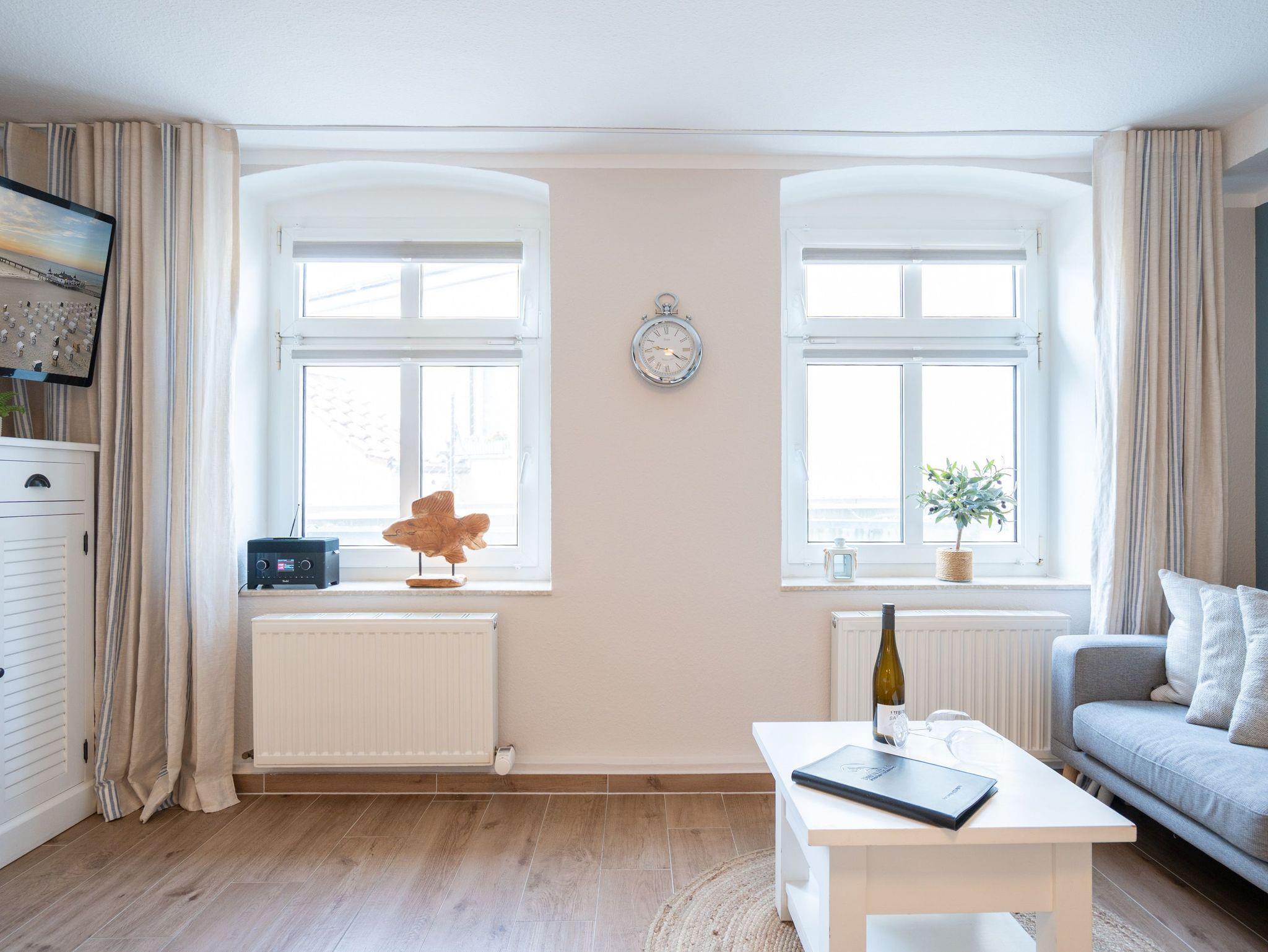 Ein kleines und gemütliches Urlaubsdomizil wartet im Untergeschoss der Villa Albertine in Ahlbeck nur darauf, Ihnen eine schöne Urlaubsauszeit zu bescheren. Das Ein-Zimmer-Appartement bietet auf 30 Quadratmetern alles, was Sie für ein paar entspannte Tage an der Ostsee benötigen ? egal ob zu zweit oder allein oder auch mit ihrem geliebten Haustier. Das große Doppelbett im kombinierten Wohn-Schlafzimmer schenkt wunderbare Urlaubsträume. Ein bequemes Sofa und ein Flat-TV sorgen für Gemütlichkeit und Unterhaltung an weniger sonnigen Urlaubstagen. Die zum Wohnraum hin offene Küche ist mit einem Zwei-Platten-Herd, einer Mikrowelle, Kühlschrank und Geschirr ausgestattet. Zum Essen gibt es in der Küche einen Holztisch zum gemütlichen Zusammensitzen. Das Badezimmer verfügt über eine Dusche, ein Waschbecken und ein WC. Damit Sie sich in Ihrem Urlaub rundum wohlfühlen, haben wir für Sie die Betten bei Anreise bereits bezogen und Handtücher liegen bereit. Zu dieser Wohnung gibt es keinen Pkw-Stellplatz.