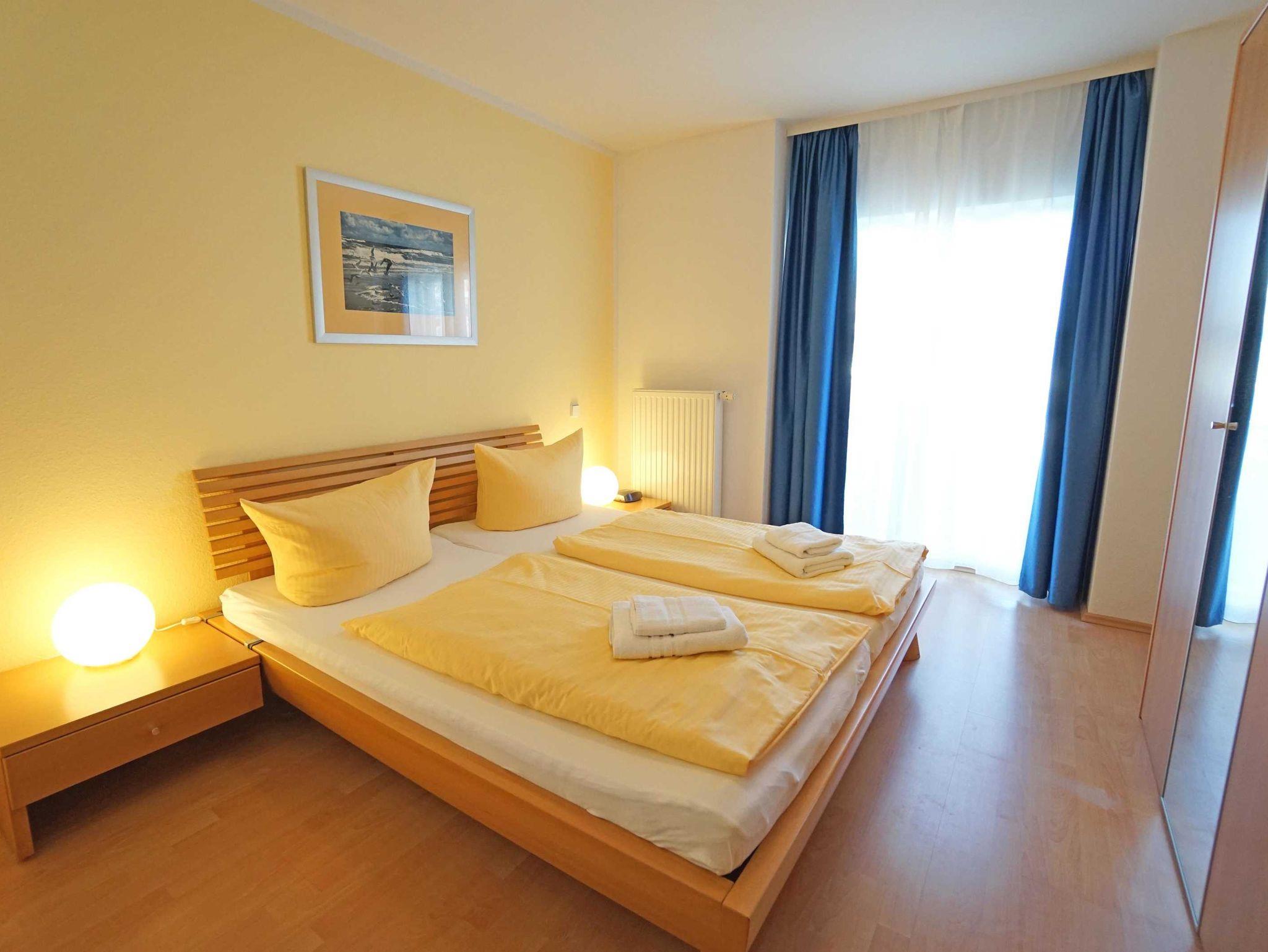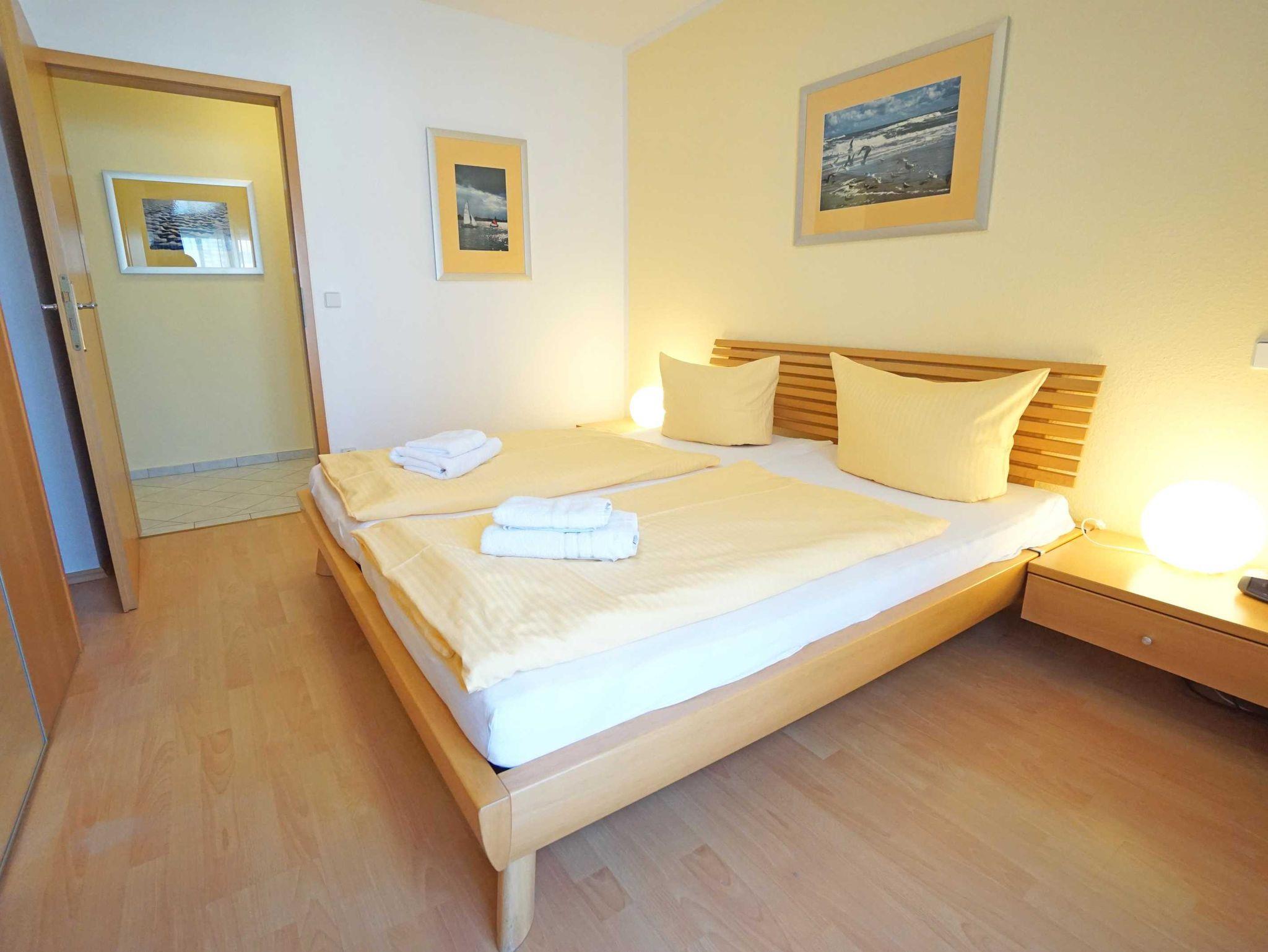Die helle und freundliche 2-Zimmer-Ferienwohnung verfügt über ein komfortabel eingerichtetes Wohnzimmer (Flachbildfernseher, DVD-Player, etc.) mit einer komplett ausgestatteten Küchenzeile (Geschirrspüler, Mikrowelle, etc.). Desweiteren befindet sich im Wohnzimmer eine gemütliche Schlafcouch und im Schlafzimmer ein großes Doppelbett (180x200 cm). Ein Duschbad ist vorhanden.