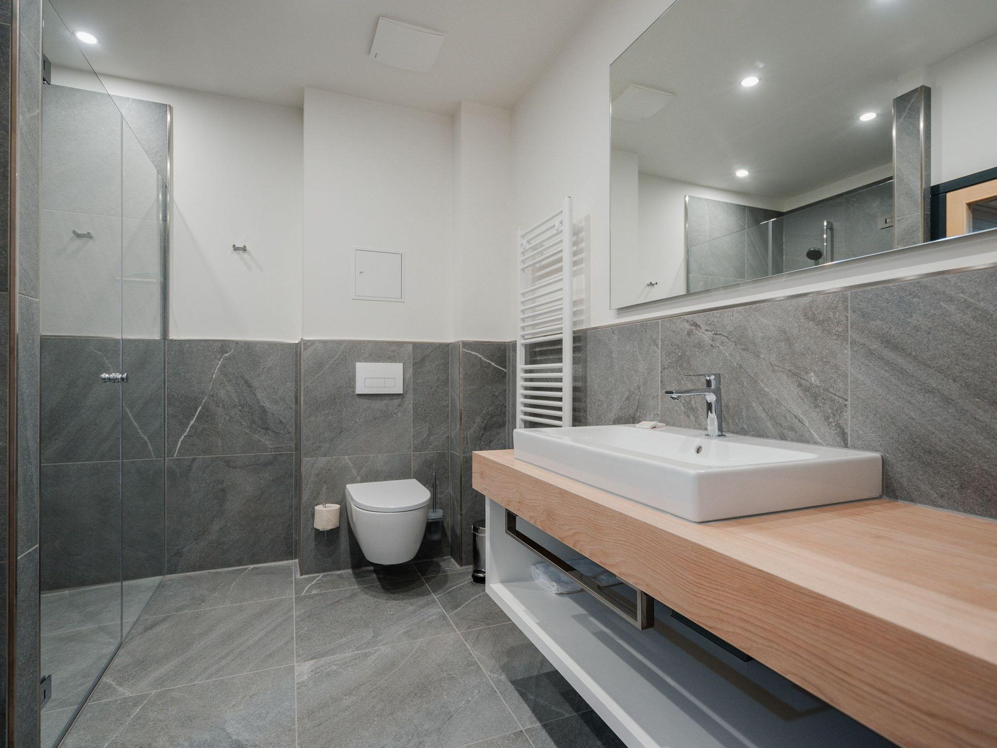 Die 2024 fertig gestellte Strandterrasse liegt direkt an der belebten Strandpromenade und bietet einen einzigartigen Ausblick auf die Grand Dame der historischen Seebrücken sowie die historische Konzertmuschel, einem beliebten Treffpunkt für Kunst und Kultur. Dahinter liegt die Ostsee ? ein Panorama, das zu den schönsten in den Kaiserbädern gehört. Es ist wie das Abtauchen in eine andere Zeit. In eine Zeit, in der man mit Stock, Sonnenschirm und Hut fürs „Sehen und gesehen werden“ über die Promenade schlenderte; aber auch in eine Zeit, in der ? damals wie heute ? Zeit einmal für eine kurze Weile keine Rolle spielt. Weil man angekommen ist im Loslassen, Entspannen und Genießen. Es ist dieser besondere Geruch nach Meeresluft und Freiheit, der in Erinnerung bleibt. Dazu die Bilder, die man mitnimmt. Von langen Strandspaziergängen, vom Lachen in fröhlich schäumenden Ostseewellen, von der Zeit in einem wunderschönen Urlaubsdomizil. Denn genau das ist die Strandterrasse mit ihren 56 modernen und exklusiven Ferienappartements direkt gegenüber der Ahlbecker Seebrücke. Die Ein-, Zwei- oder Dreizimmerwohnungen ? zwischen 40 und 70 Quadratmeter groß ? sind von einer Innenarchitektin gemeinsam mit unserem Erfahrungsschatz an Gästewünschen mit viel Liebe zum Detail und ganz individuell konzipiert worden. Entspannung und Wohlfühlen stehen an erster Stelle. Alles ist aufeinander abgestimmt und sorgt für eine gemütliche Atmosphäre. Wählen Sie zwischen einem Domizil in einem hellen, sandfarbenen Designkonzept oder einem Appartement mit anthrazitfarbenen Farbakzenten. Alle Appartements verfügen gleichermaßen über eine stilvolle und komfortable Einrichtung, die passgenau angefertigt worden ist, sowie über moderne Küchen und Bäder. Jedem Schlafzimmer ist ein eigenes Bad mit Dusche zugeordnet (außer App. B4.5). Die Appartements besitzen fast alle einen Balkon ? viele schauen sogar zur Ostsee hinaus. Die meisten Feriendomizile haben einen Elektrokamin und Infrarotsaunen. Im Erdgeschoss befindet sich ein separater Gemeinschaftsraum für Fahrräder. Außerdem besteht die Möglichkeit, im Gemeinschaftswaschraum 2 Waschmaschinen [&] Trockner zu nutzen. Ergänzt wird das Angebot durch eine Gemeinschaftssauna, die täglich von 11:00 bis 22:00 Uhr nutzbar ist. In der Tiefgarage (Einfahrtshöhe 2,03 Meter) steht für jede Wohnung 1 Pkw-Stellplatz zur Verfügung. Ist alles zur Zufriedenheit untergebracht? Dann kann der Urlaub ja beginnen. Und beim Blick vom Balkon über die Ostsee treffen sich zum Sonnenaufgang das Heute und das Damals. Gelassenheit legt sich beim Gang hinunter an den Strand auf die Seele. Jetzt darf die Zeit stehenbleiben.