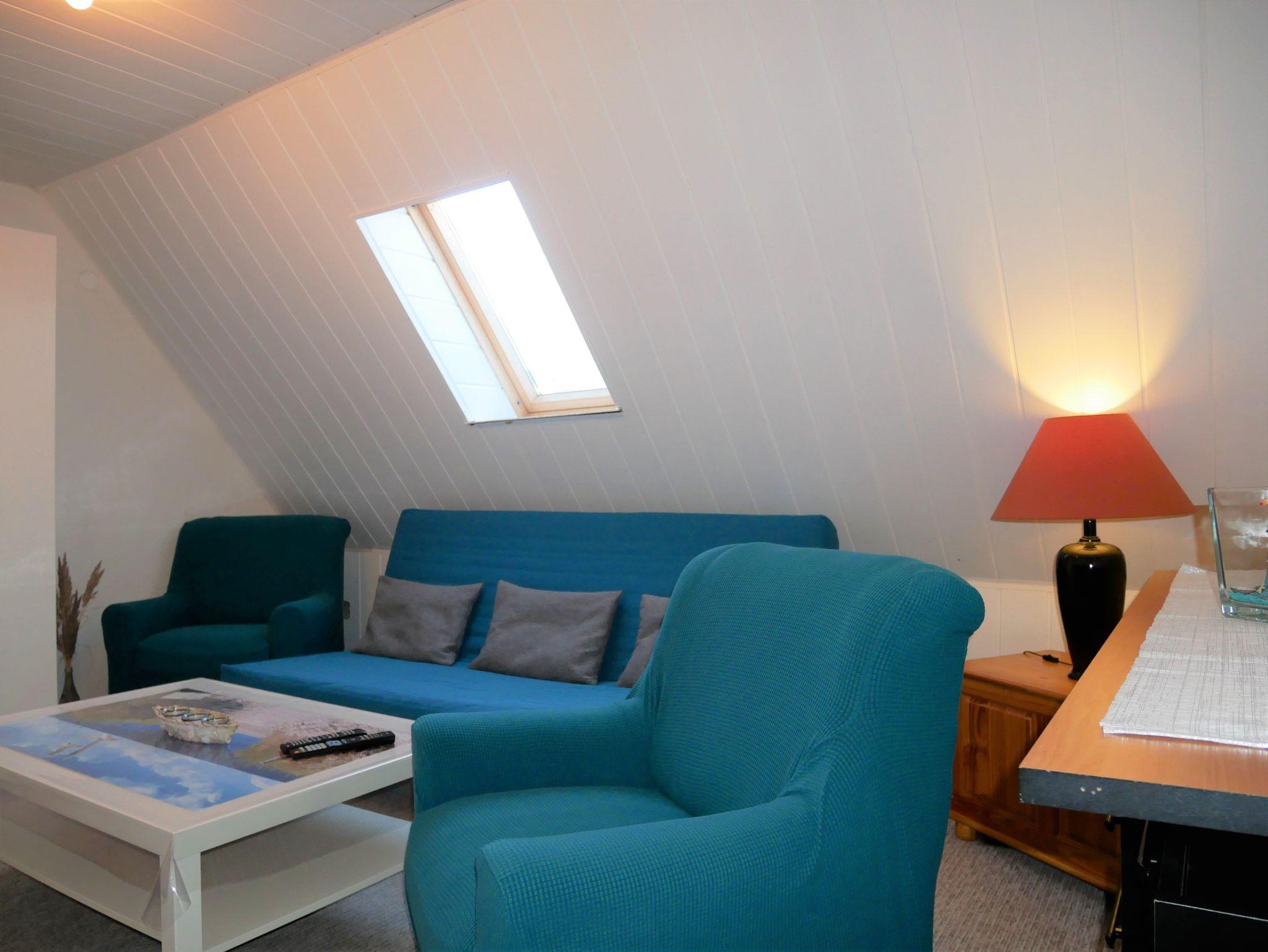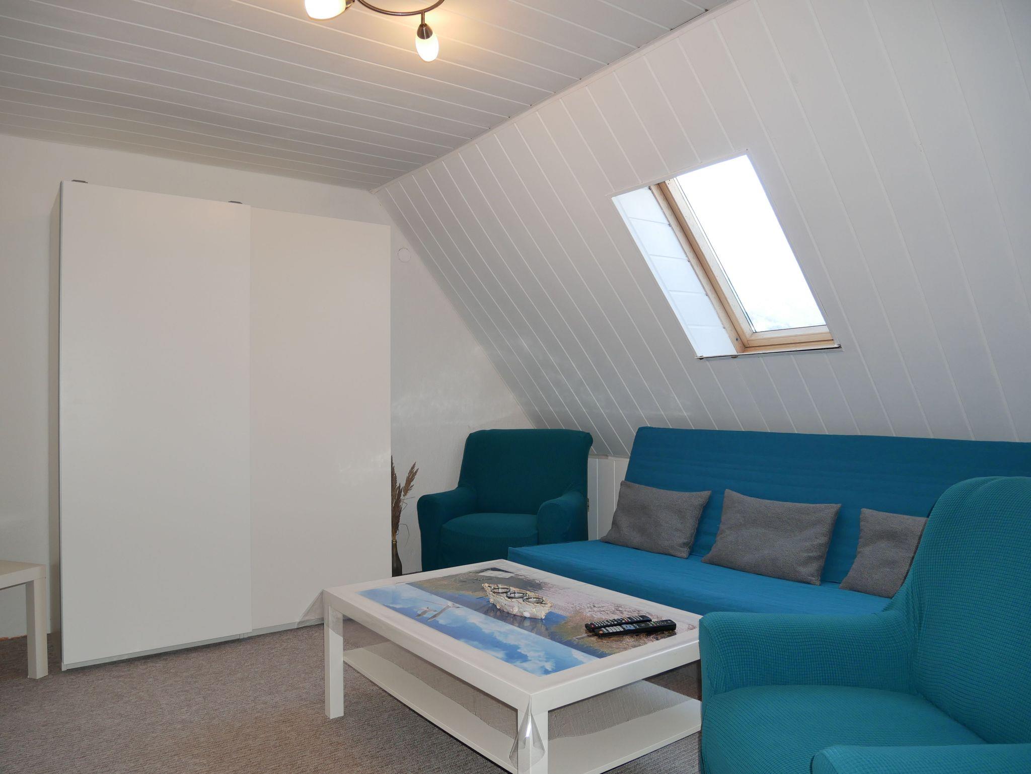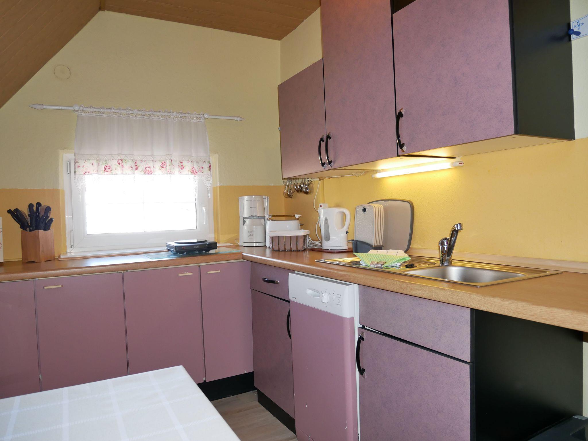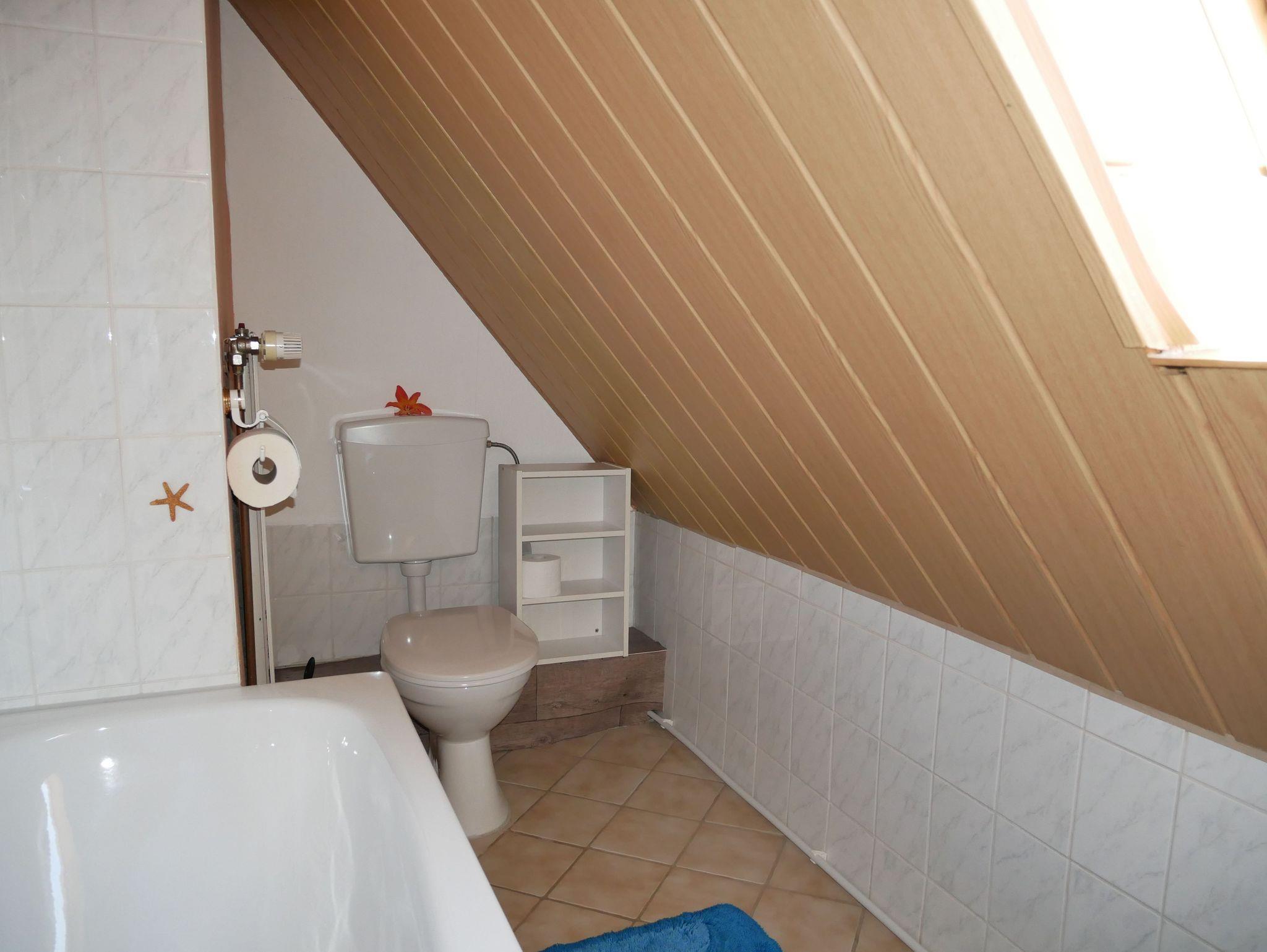 Die gemütliche 2-Zimmer-Ferienwohnung befindet sich im Dachgeschoss im Haus der Vermieter und ist ca. 55qm groß und für 2-3 Personen gut geeignet. Die Ferienwohnung verfügt über ein Wohnzimmer mit Flachbild-TV und Sofa (Schlafsofa) eine Küche mit Geschirrspüler, Mikrowelle, Doppelkochplatte, Kühlschrank mit Gefrierfach, Wasserkocher, Kaffeemaschine, Toaster und Esstisch. Das separate Schlafzimmer ist mit einem Doppelbett und Kleiderschrank ausgestattet. Das Badezimmer hat durch Dachschrägen bedingt eine niedrige Deckenhöhe und bietet eine Badewanne, WC und Haartrockner. Die Erstausstattung Bettwäsche und Handtücher ist bereits inklusive und WLAN steht Ihnen während des Aufenthaltes ebenfalls kostenfrei zur Verfügung.