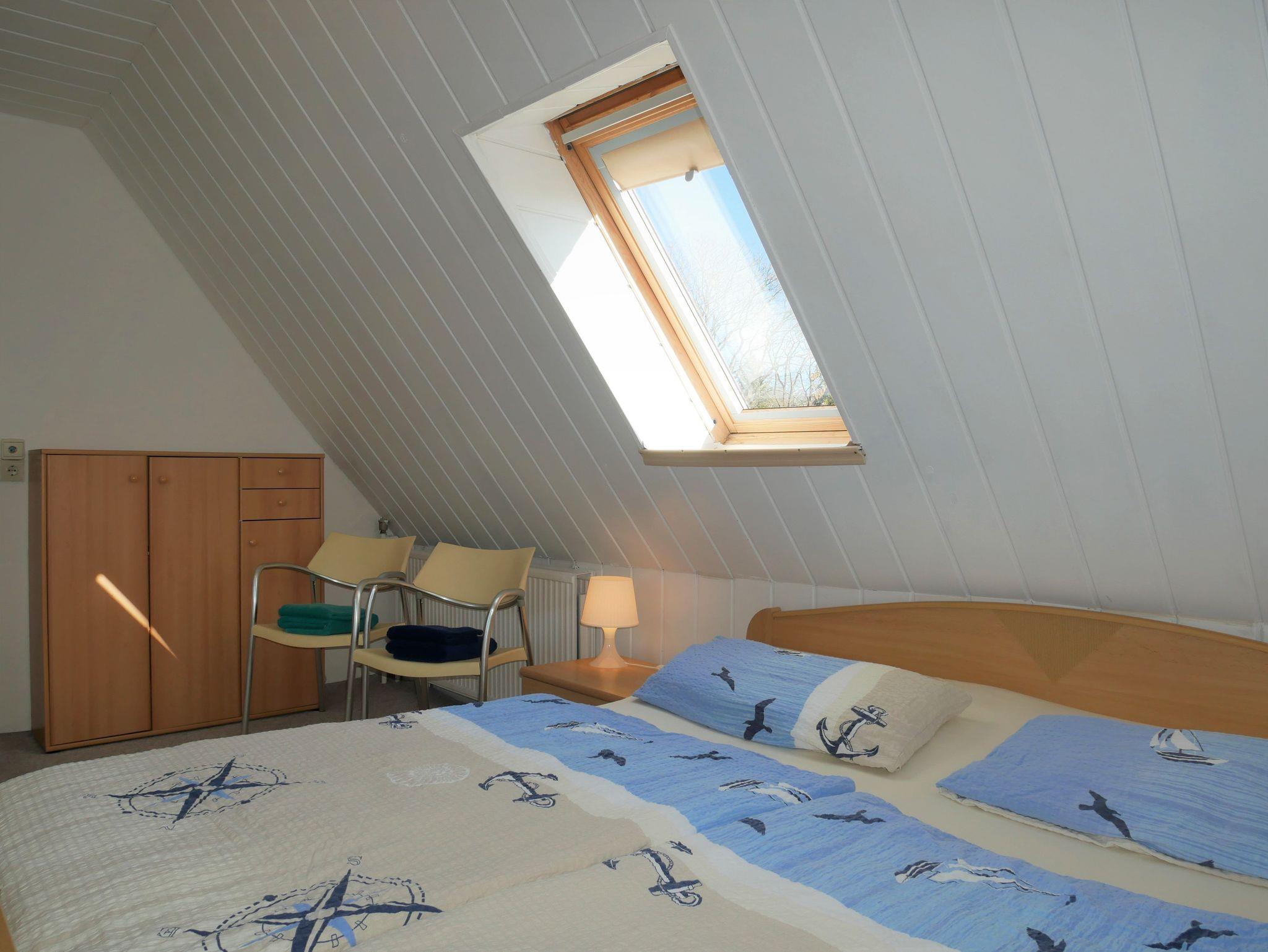 Die Ferienwohnung Max (ca. 55qm groß) befindet sich im Dachgeschoss. Sie erreichen diese durch den Haupteingang des Hauses der Vermieter. Alle Räume sind gut begehbar. Im Bad sind, je nach Personengröße, mit einigen Einschränkungen bedingt durch die Dachschrägen zu rechnen (siehe Fotos).
