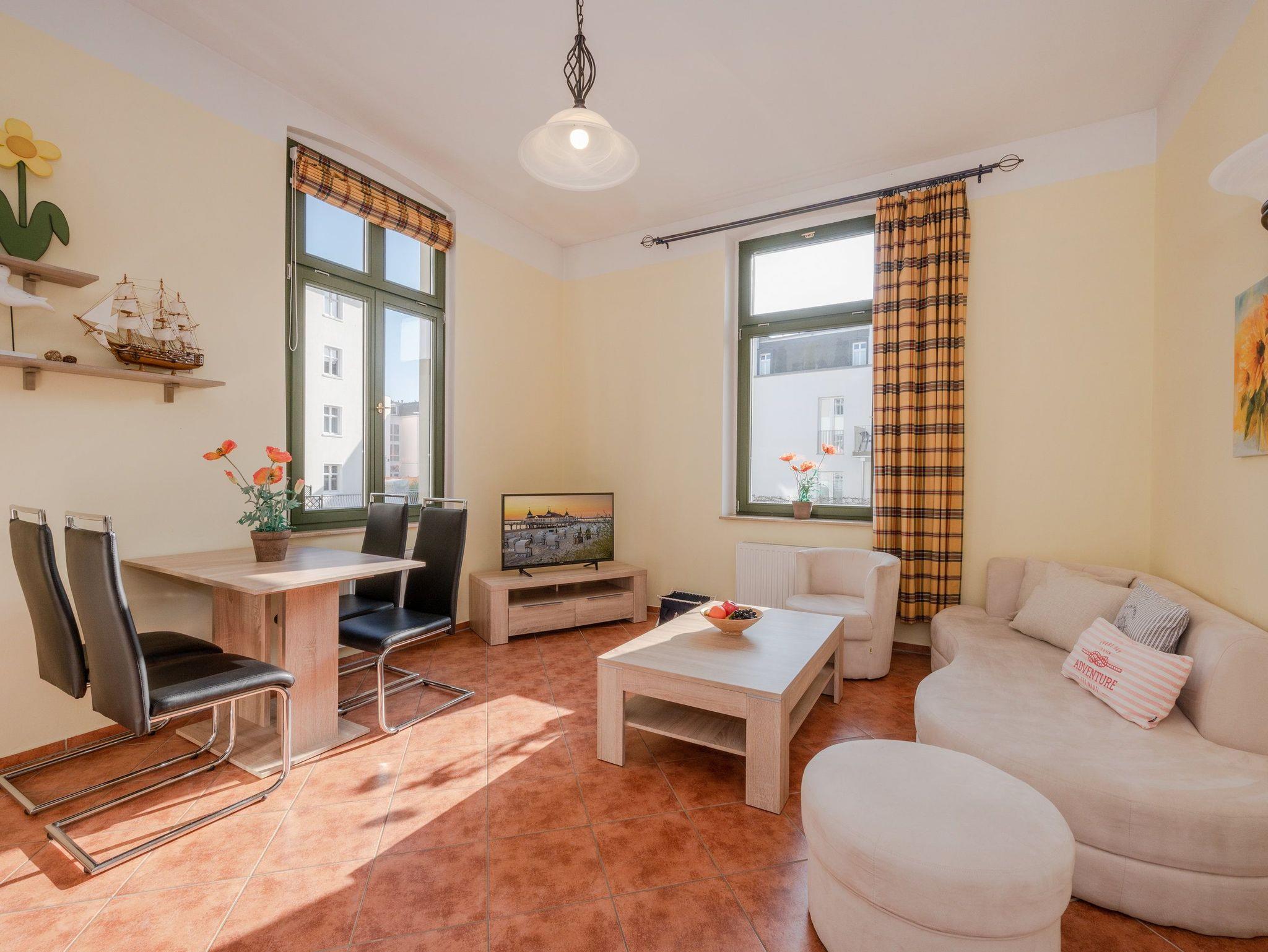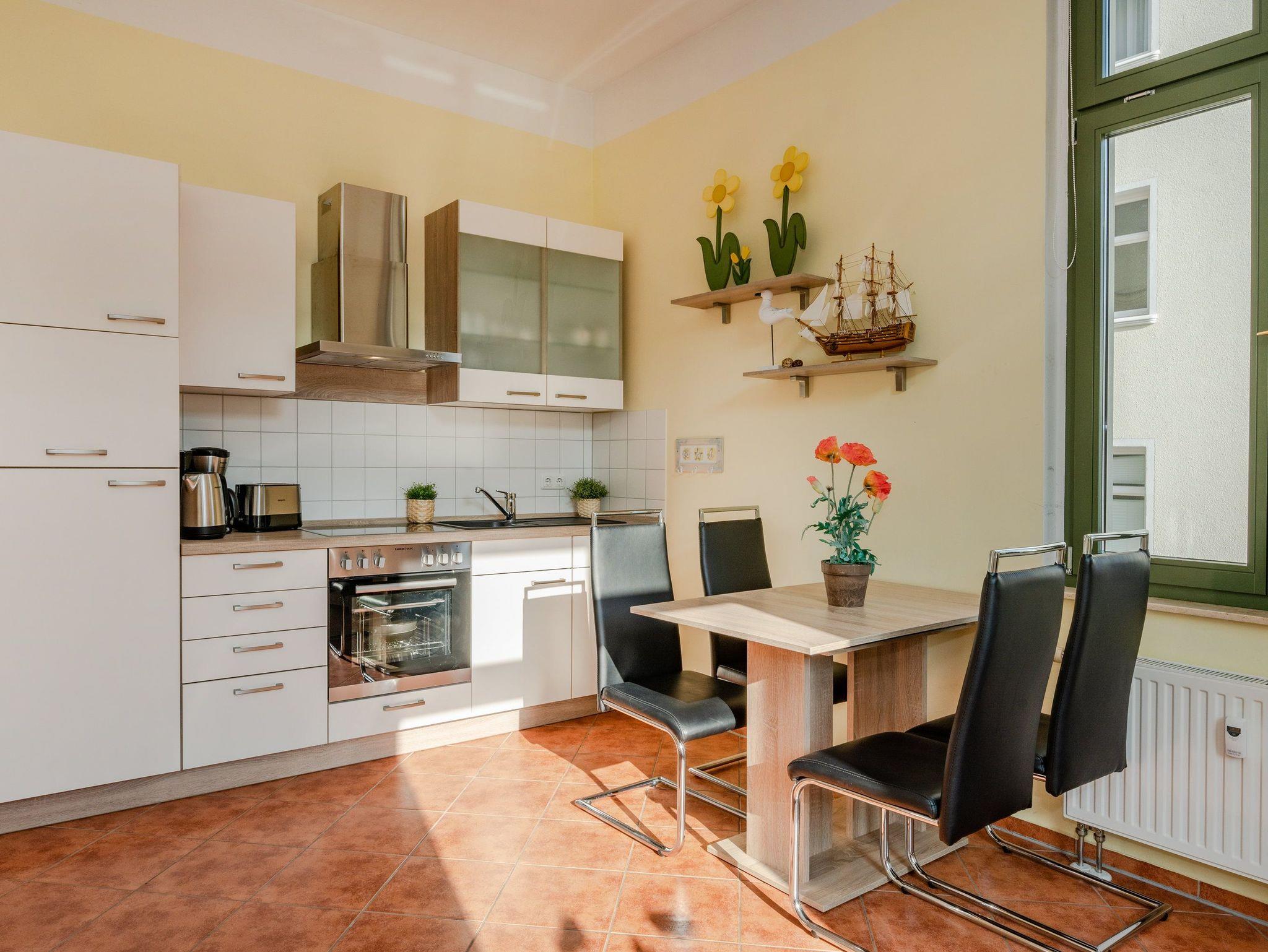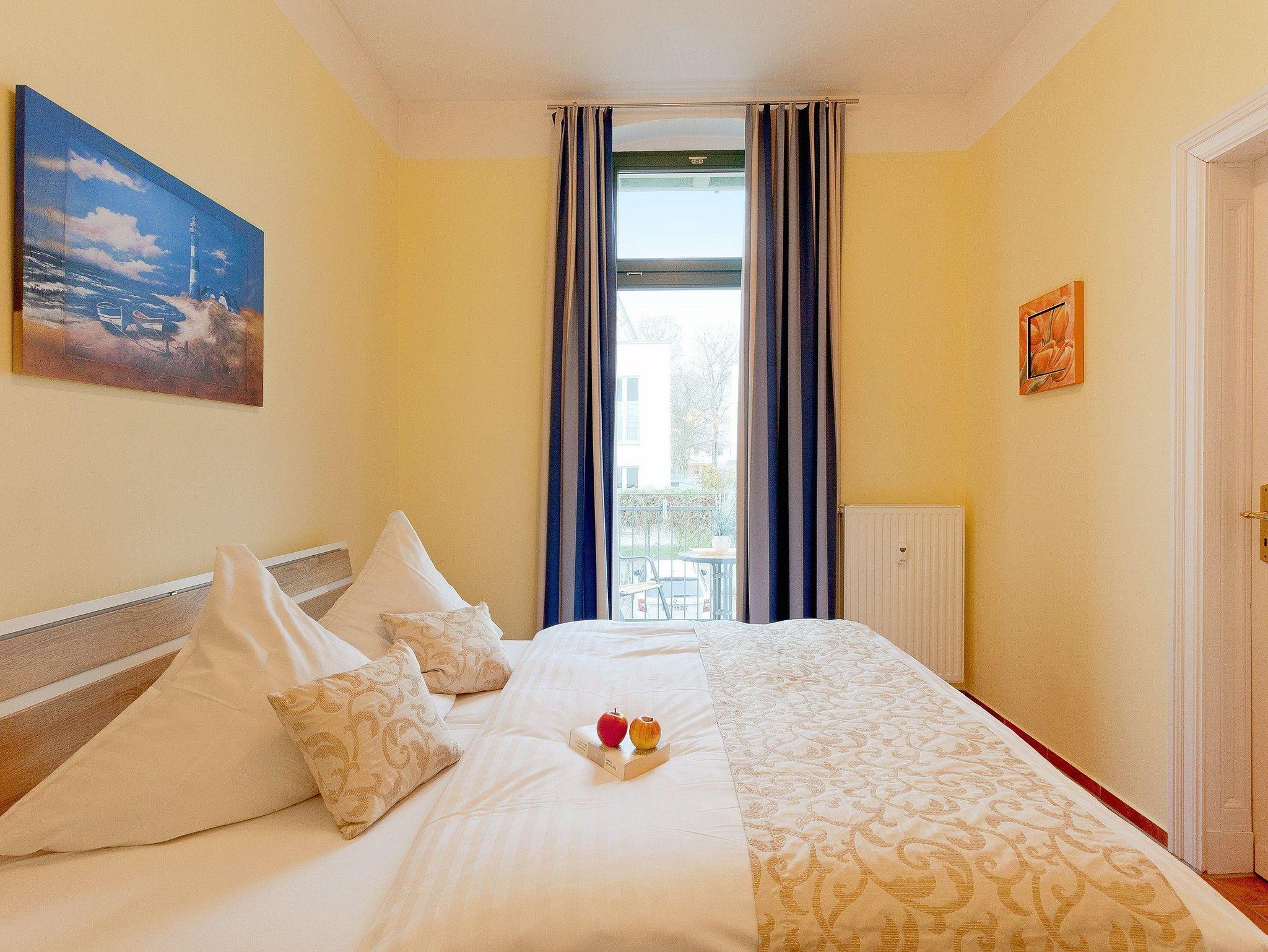 In dem hellen 2-Raum-Appartement Nr. 1.2 der Villa Goodewind können bis zu vier Personen erholsame Urlaubstage auf 40 Quadratmetern verbringen.